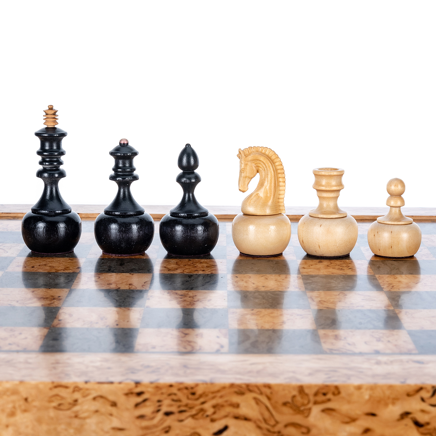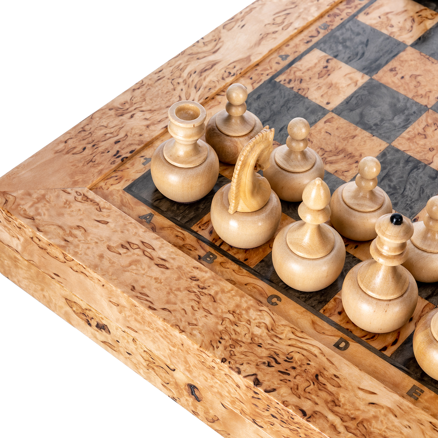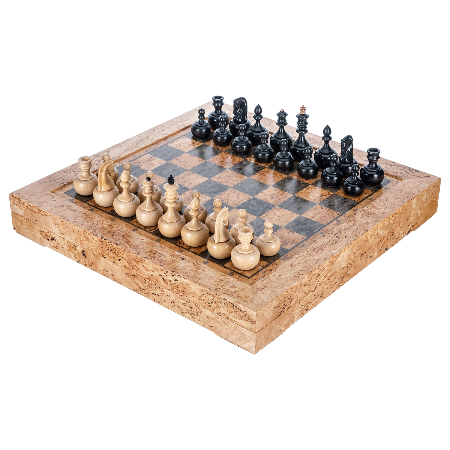 Шахматы из карельской березы с деревянными фигурами "Непобедимые" 45х45 см