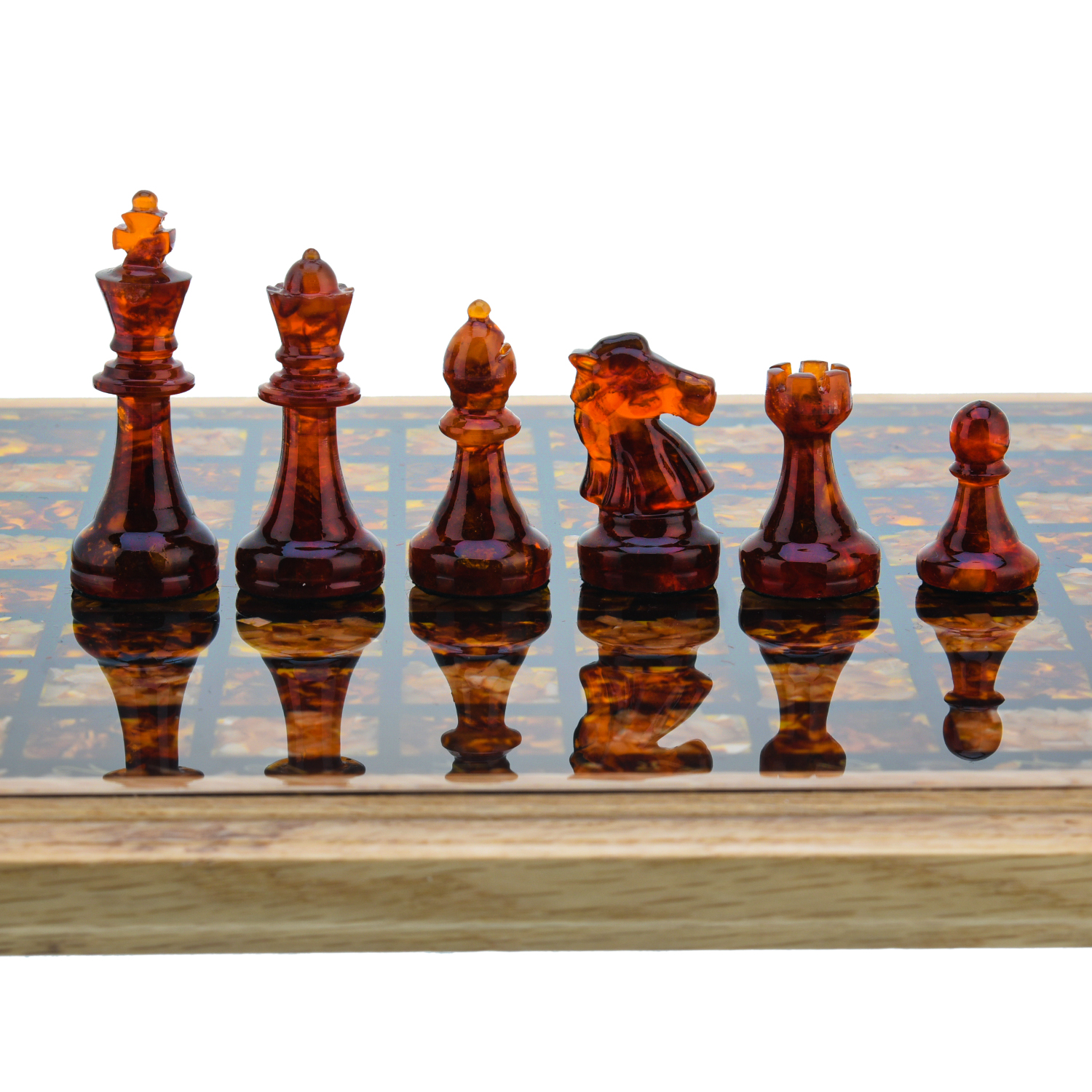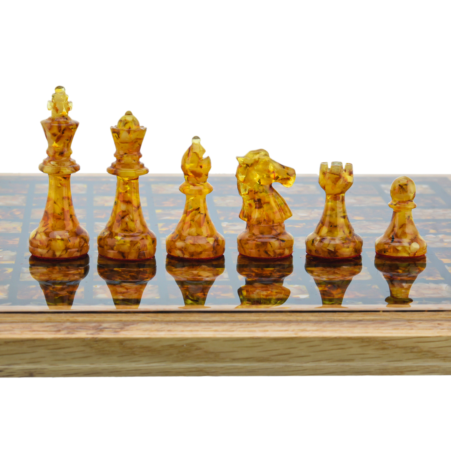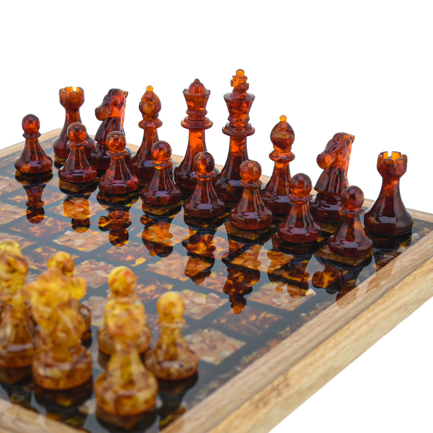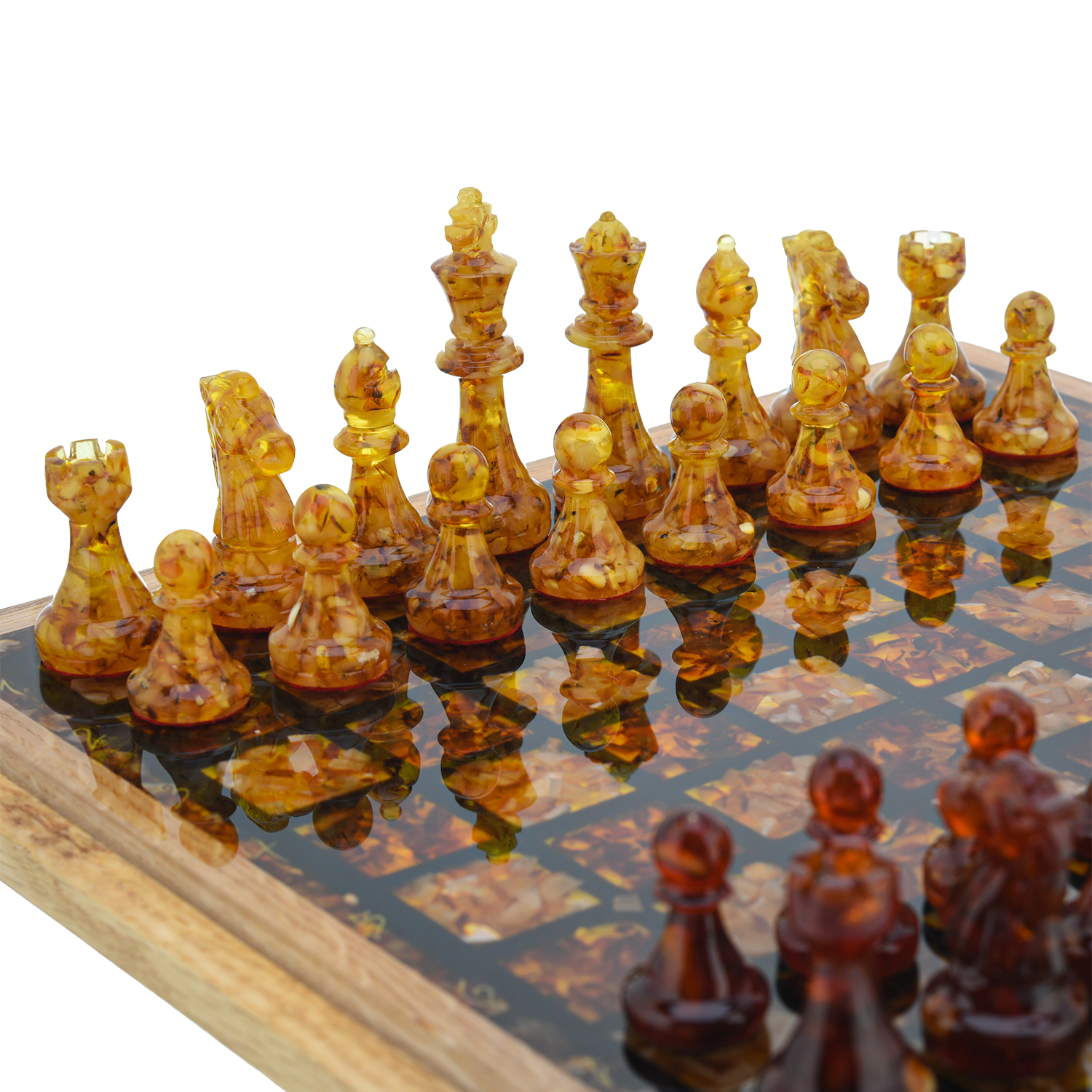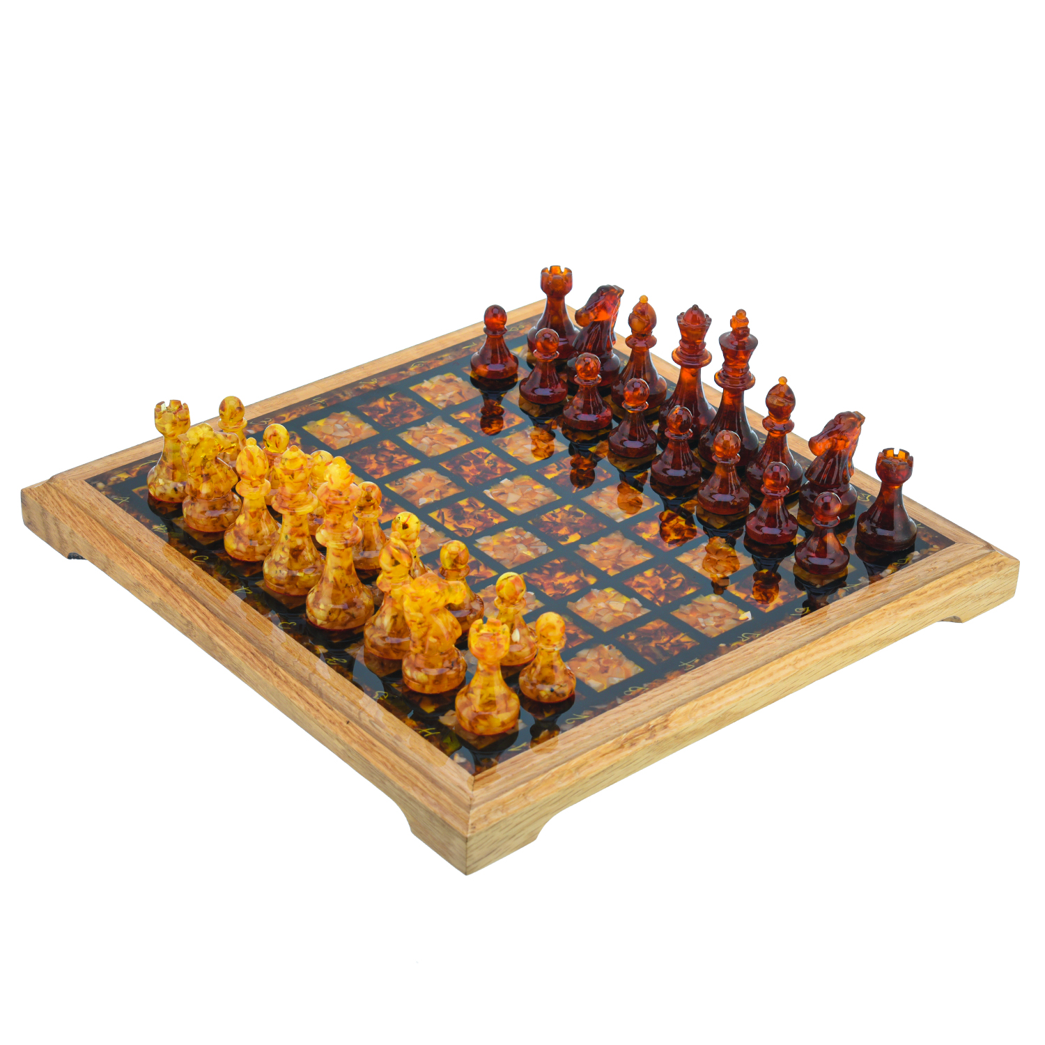 Шахматы с янтарными фигурами 28х28 см