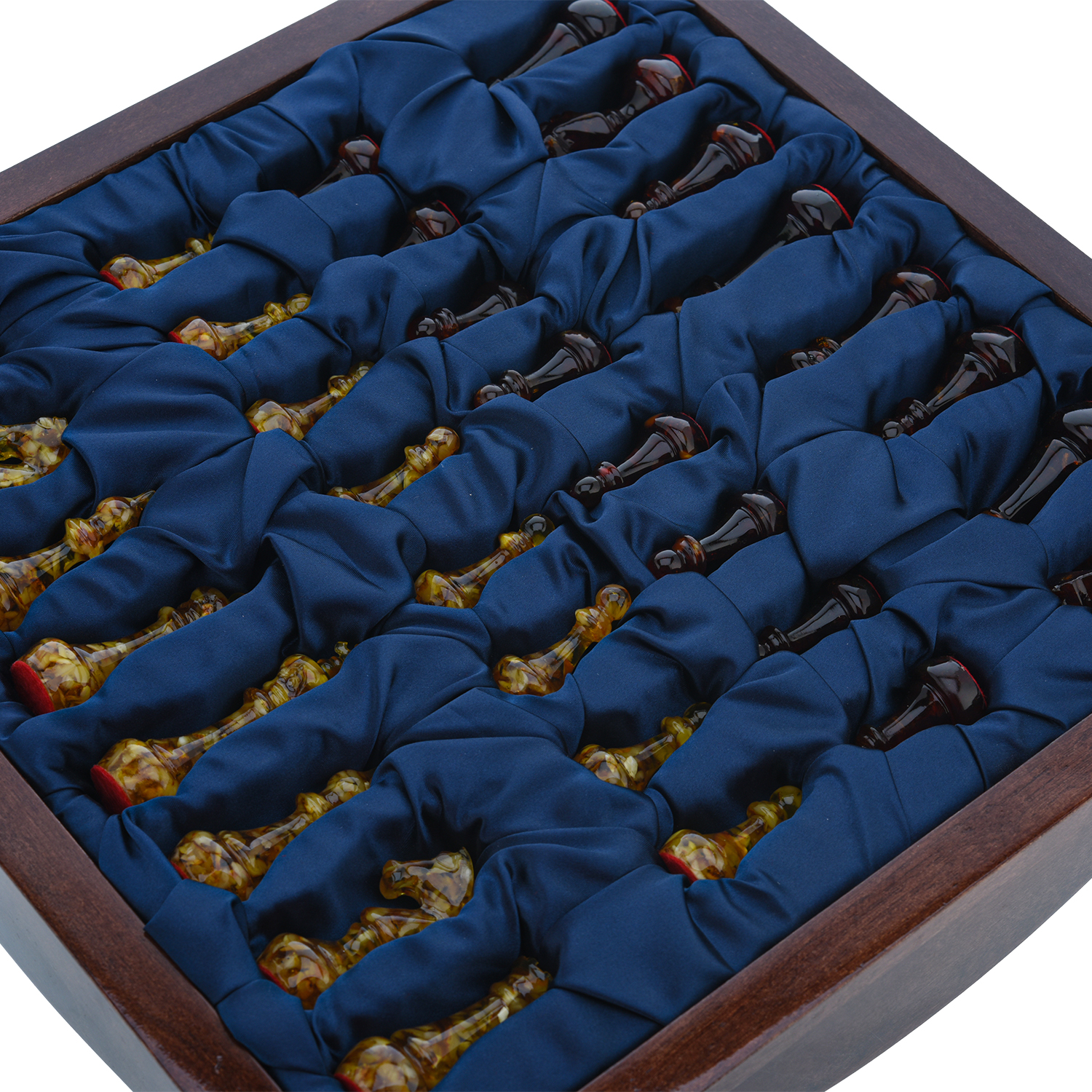 Наши эксклюзивные шахматы - это не просто потоковая продукция, а произведение искусства, в разработке которого мы учитываем не только внешнюю красоту, но и функциональность, а фигуры из драгоценного балтийского янтаря определенно добавляют дорогому шахматному набору элитарности, делая его неповторимым и элегантным.