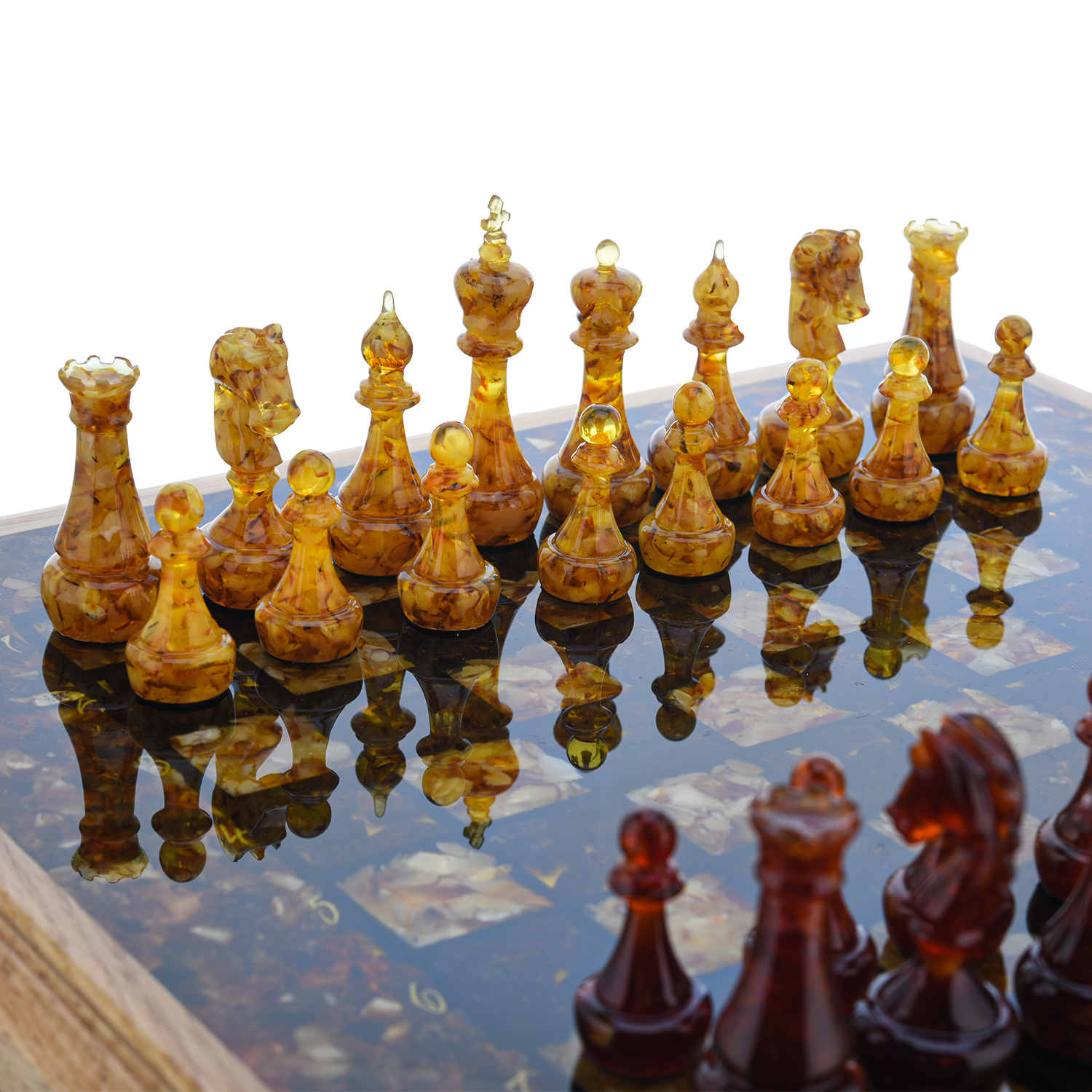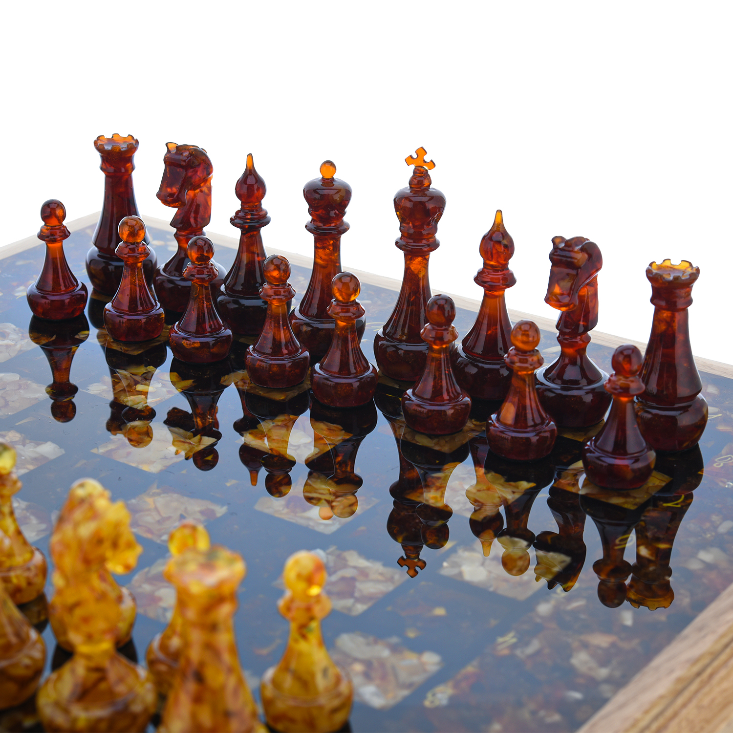 Наши эксклюзивные шахматы - это не просто потоковая продукция, а произведение искусства, в разработке которого мы учитываем не только внешнюю красоту, но и функциональность, а фигуры из драгоценного балтийского янтаря определенно добавляют дорогому шахматному набору элитарности, делая его неповторимым и элегантным.