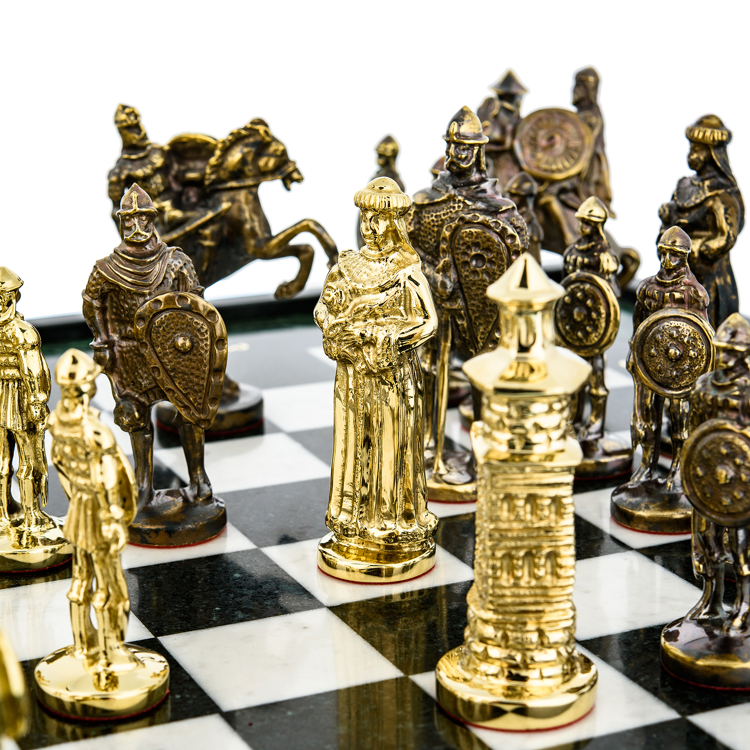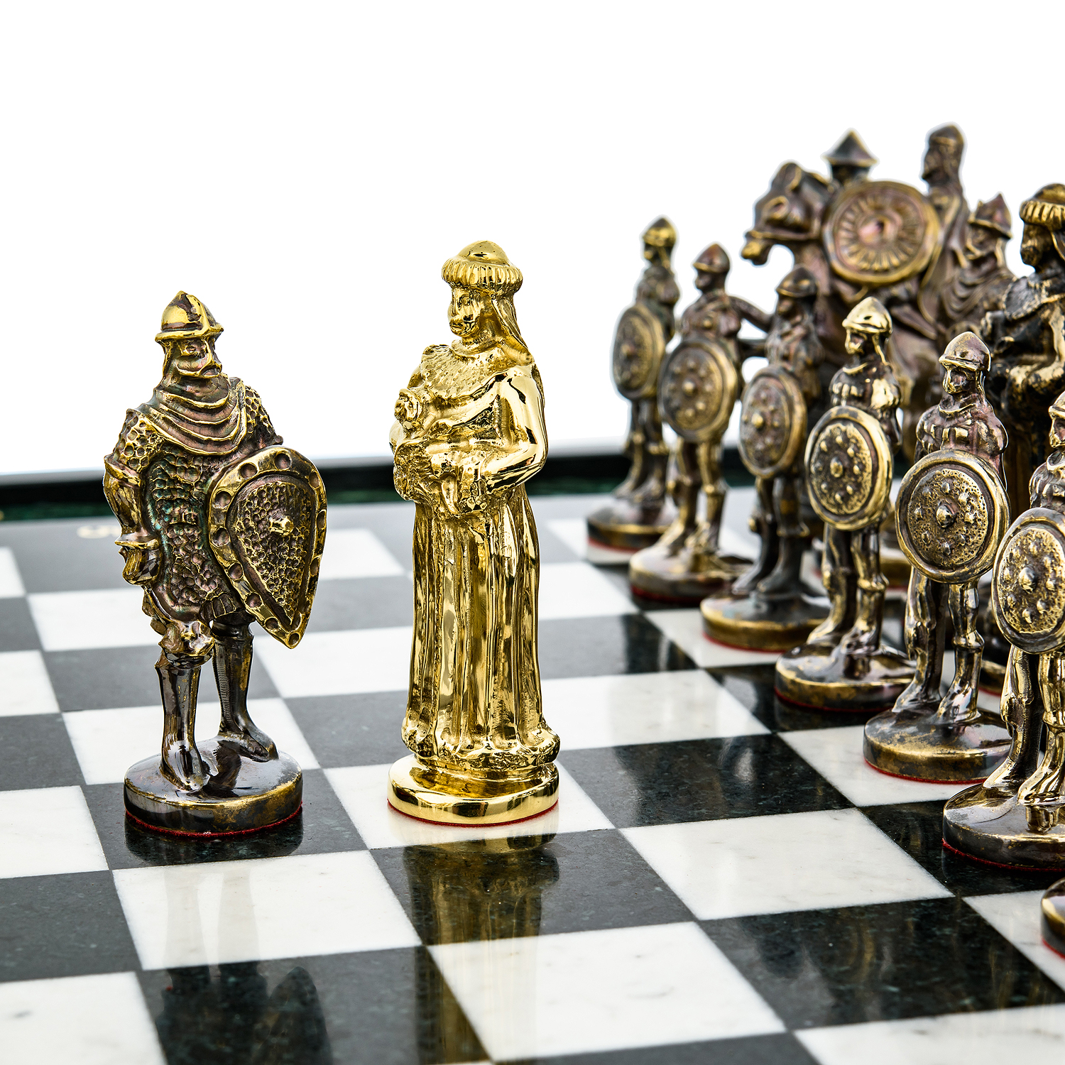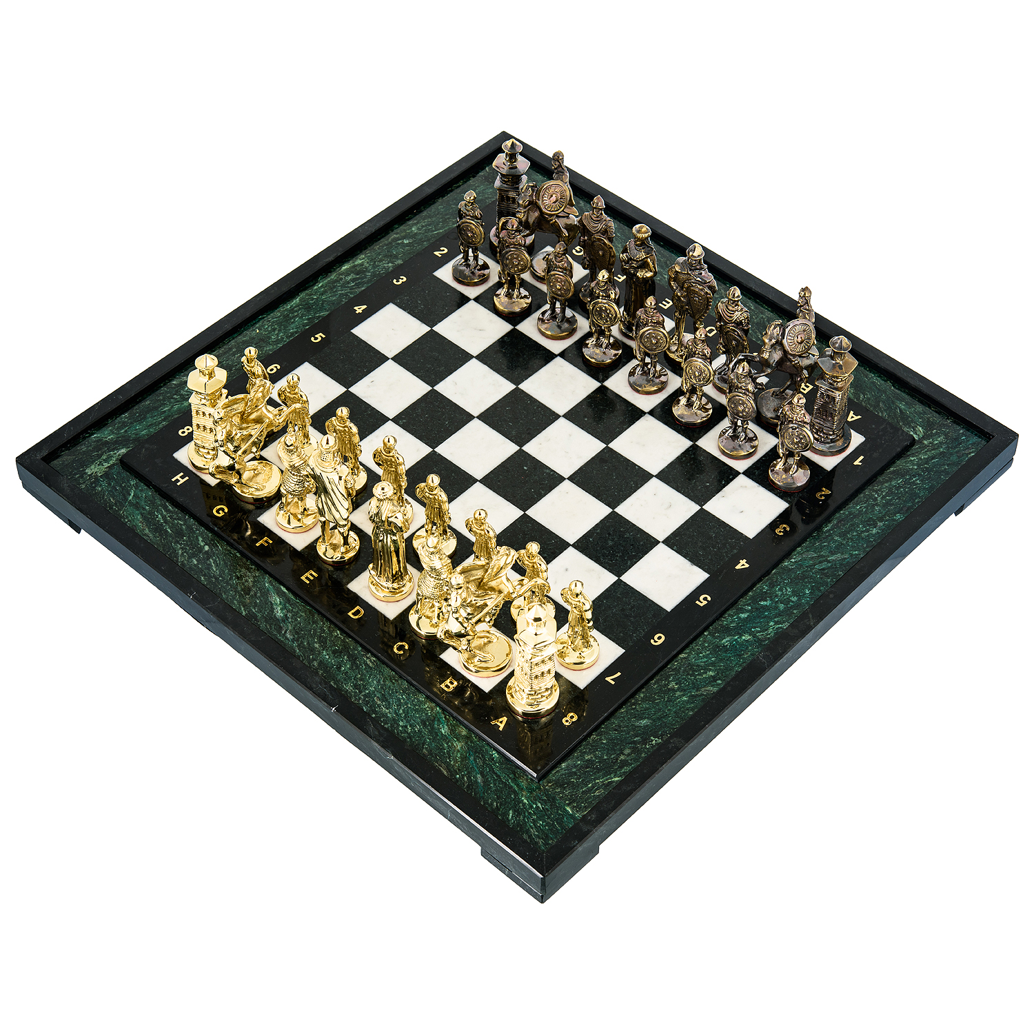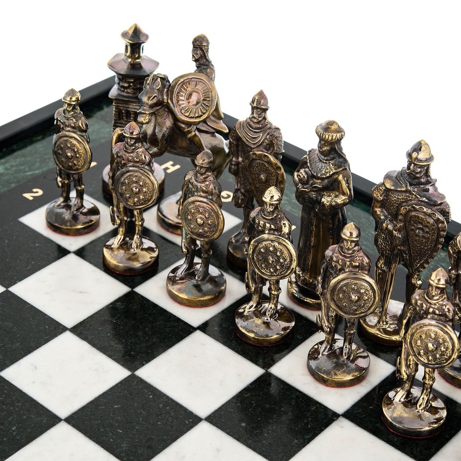 Шахматы из камня с бронзовыми фигурами "Русские богатыри" 47х47 см