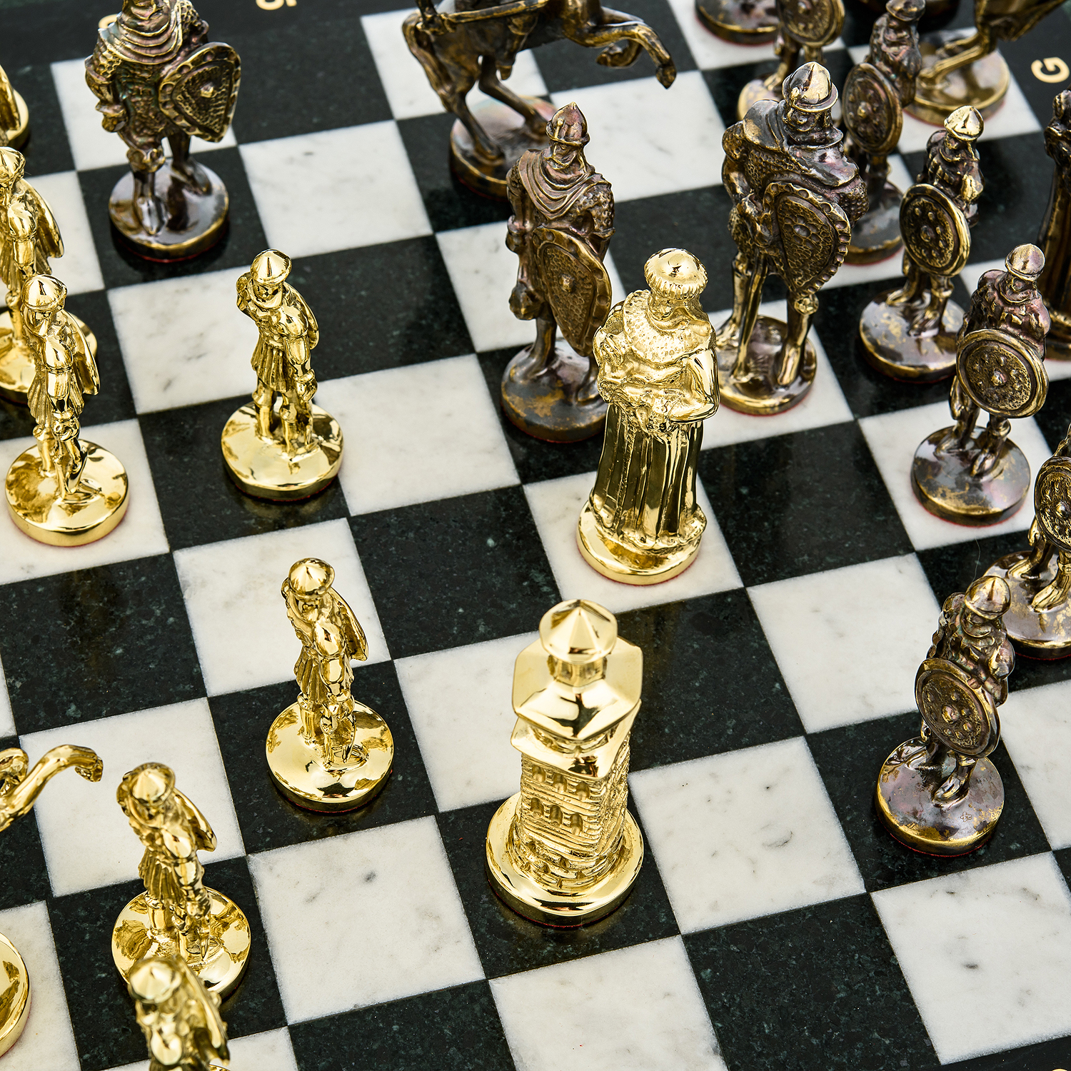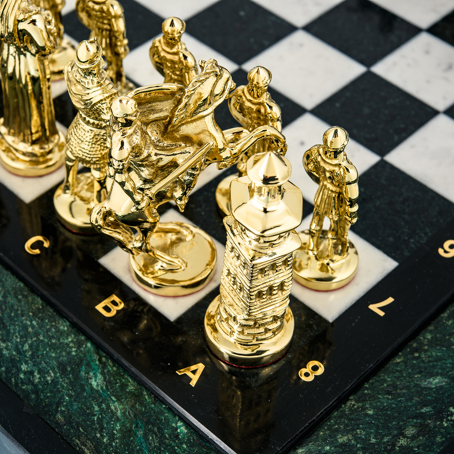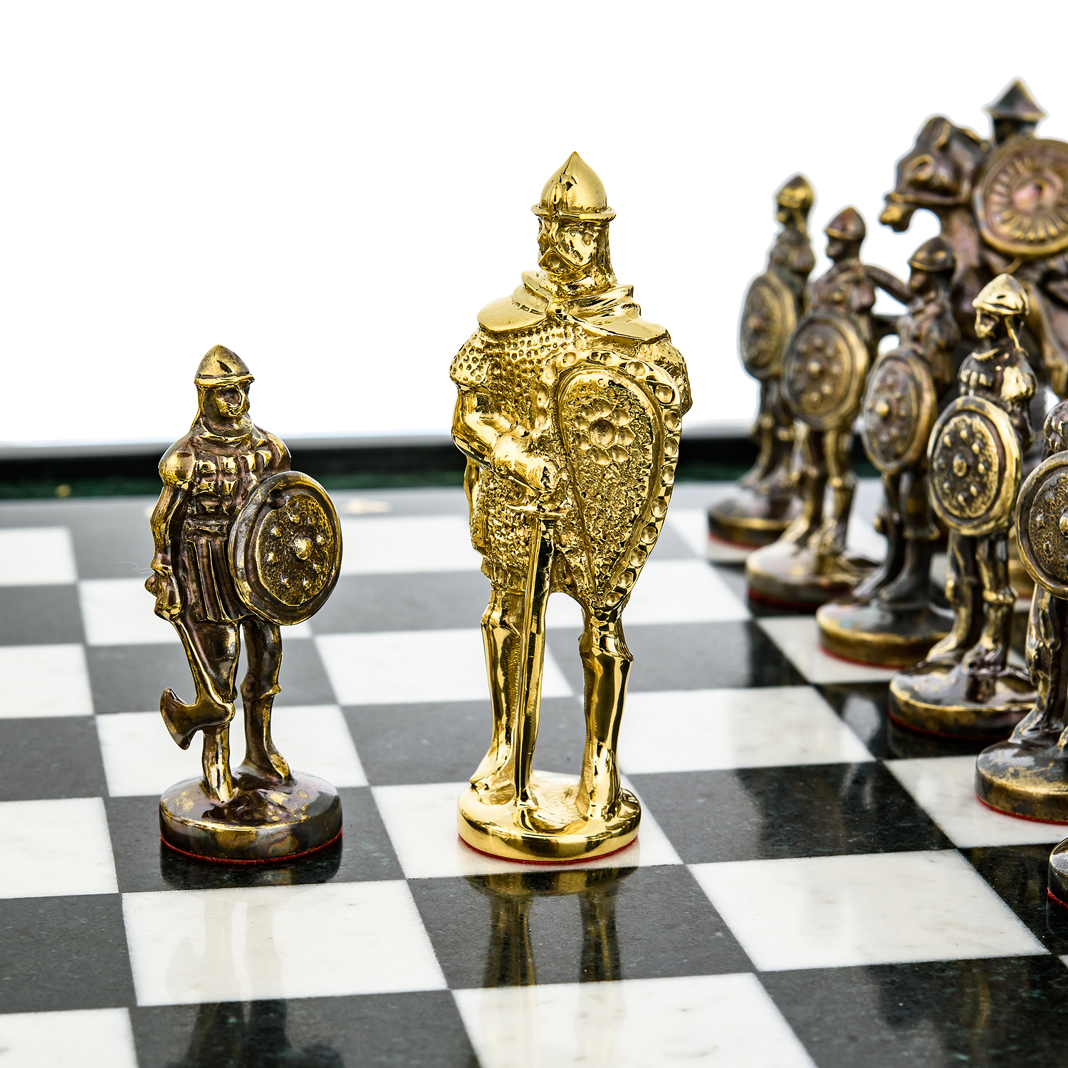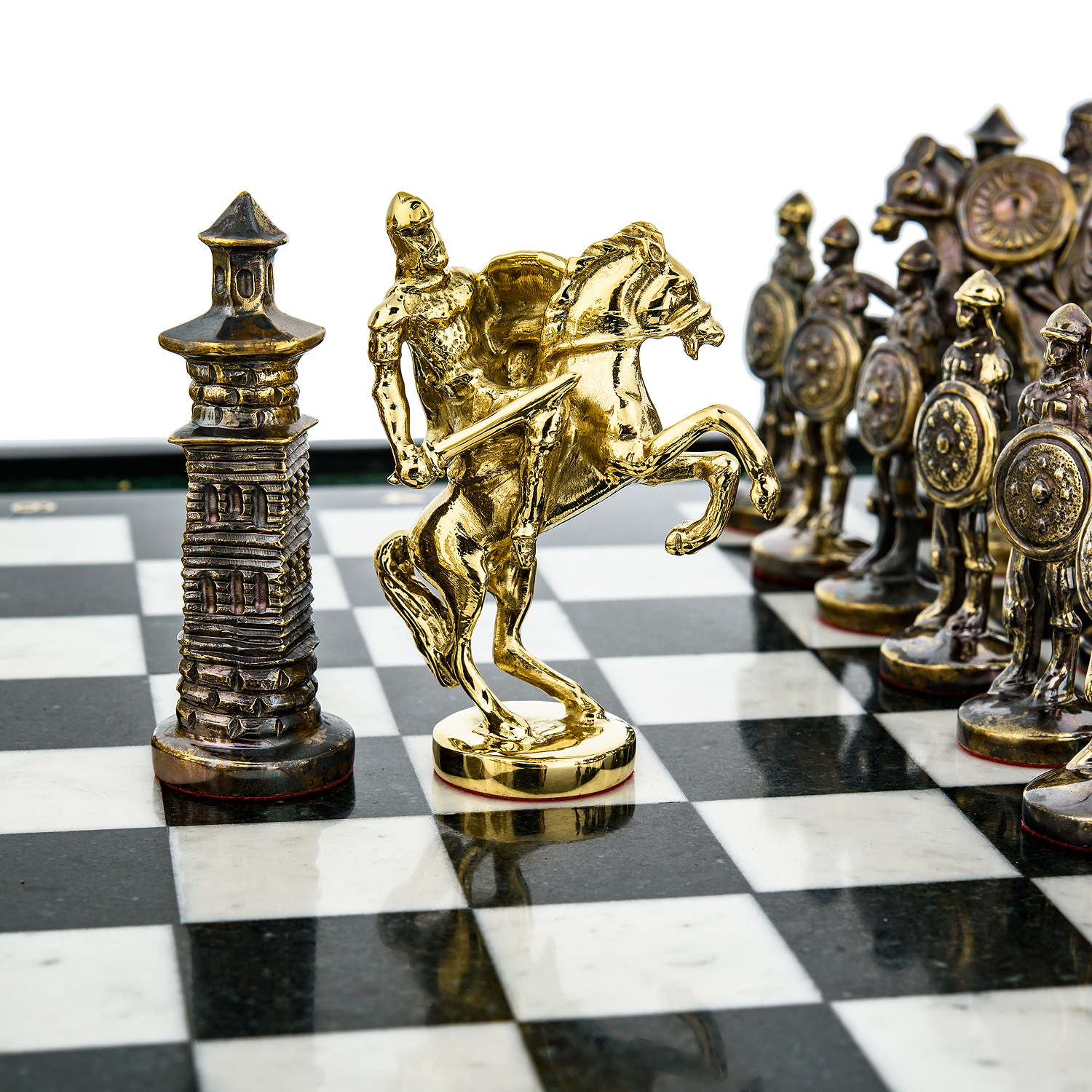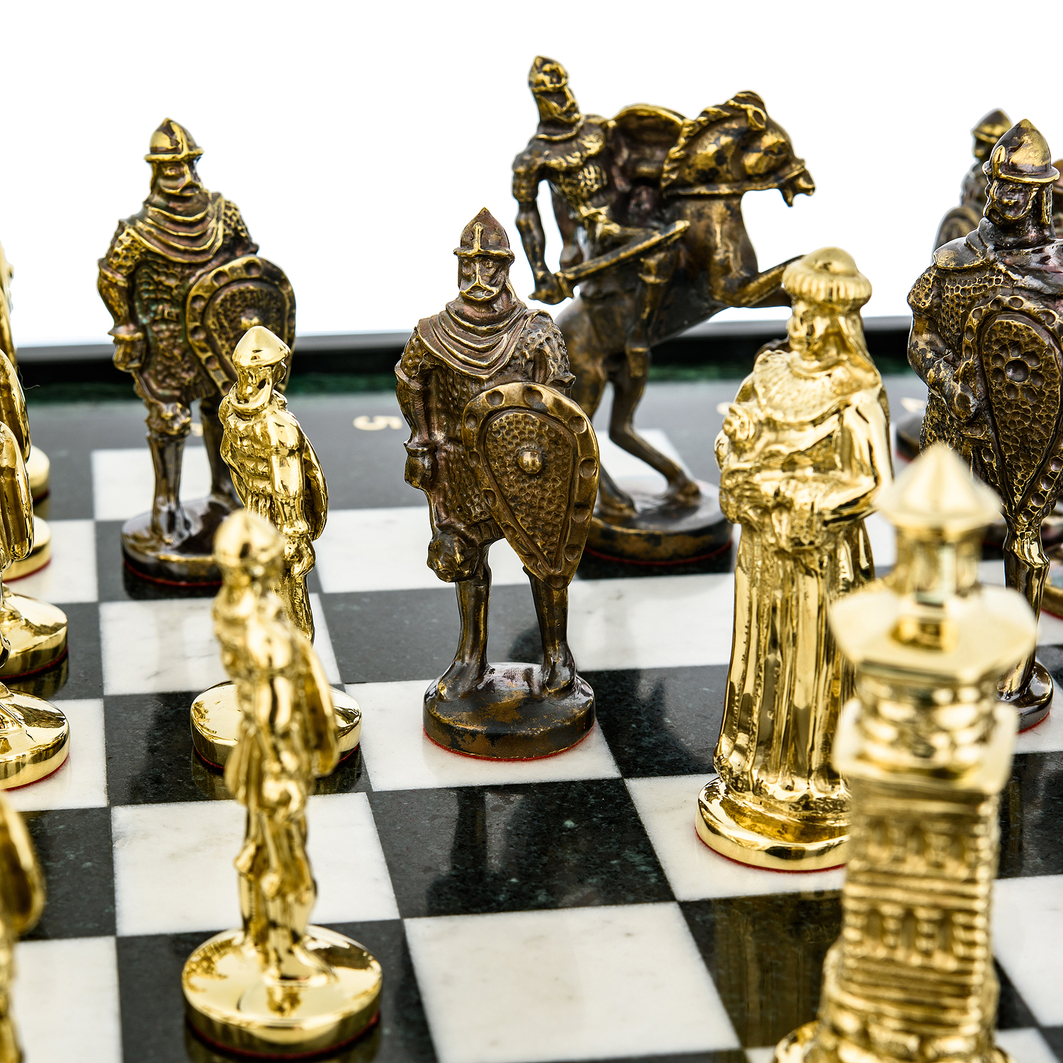 Шахматы из камня с бронзовыми фигурами "Русские богатыри" 47х47 см