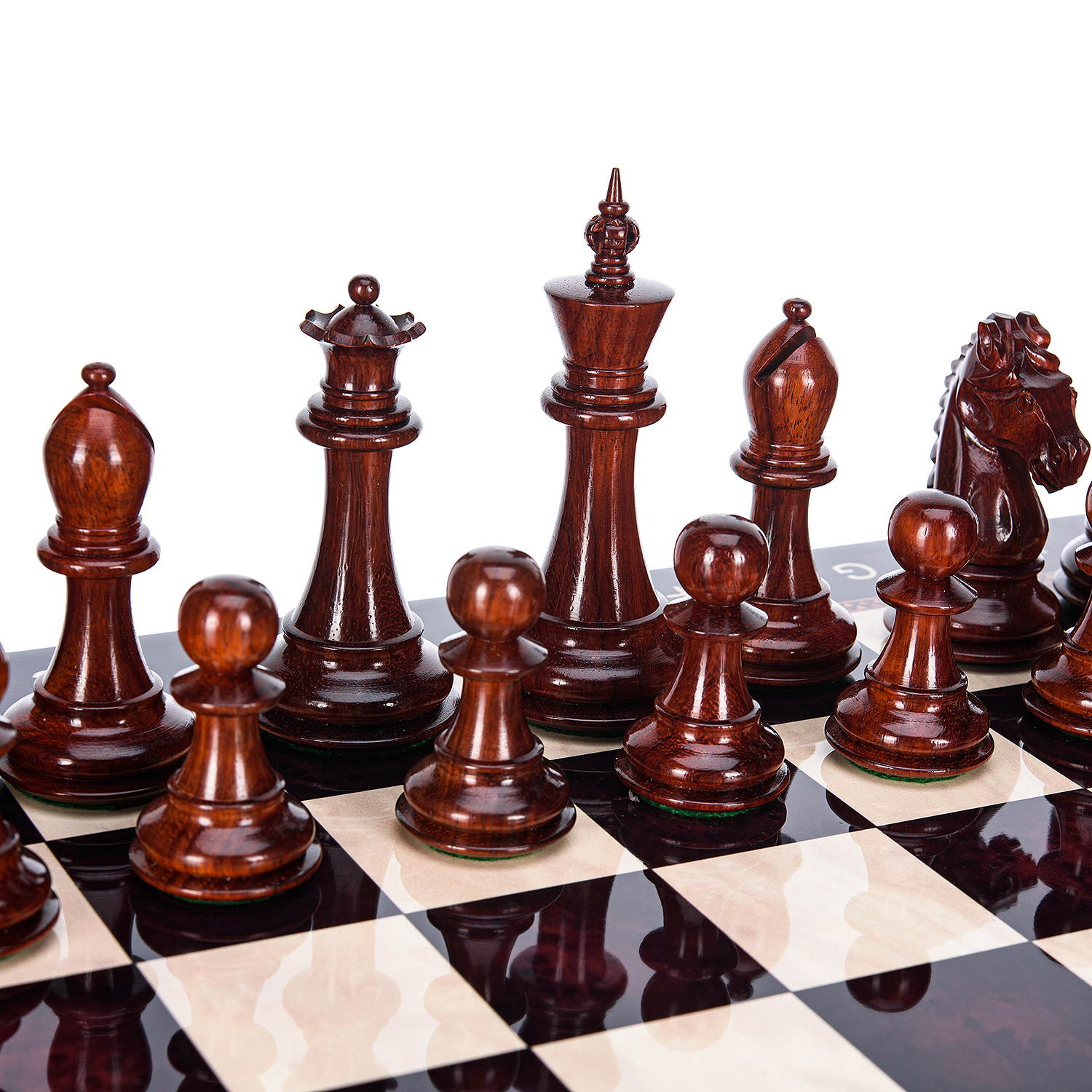 Подарочные шахматы премиум-класса с фигурами ручной работы "Стаунтон".Материалы фигур: красное дерево Падук, самшит.