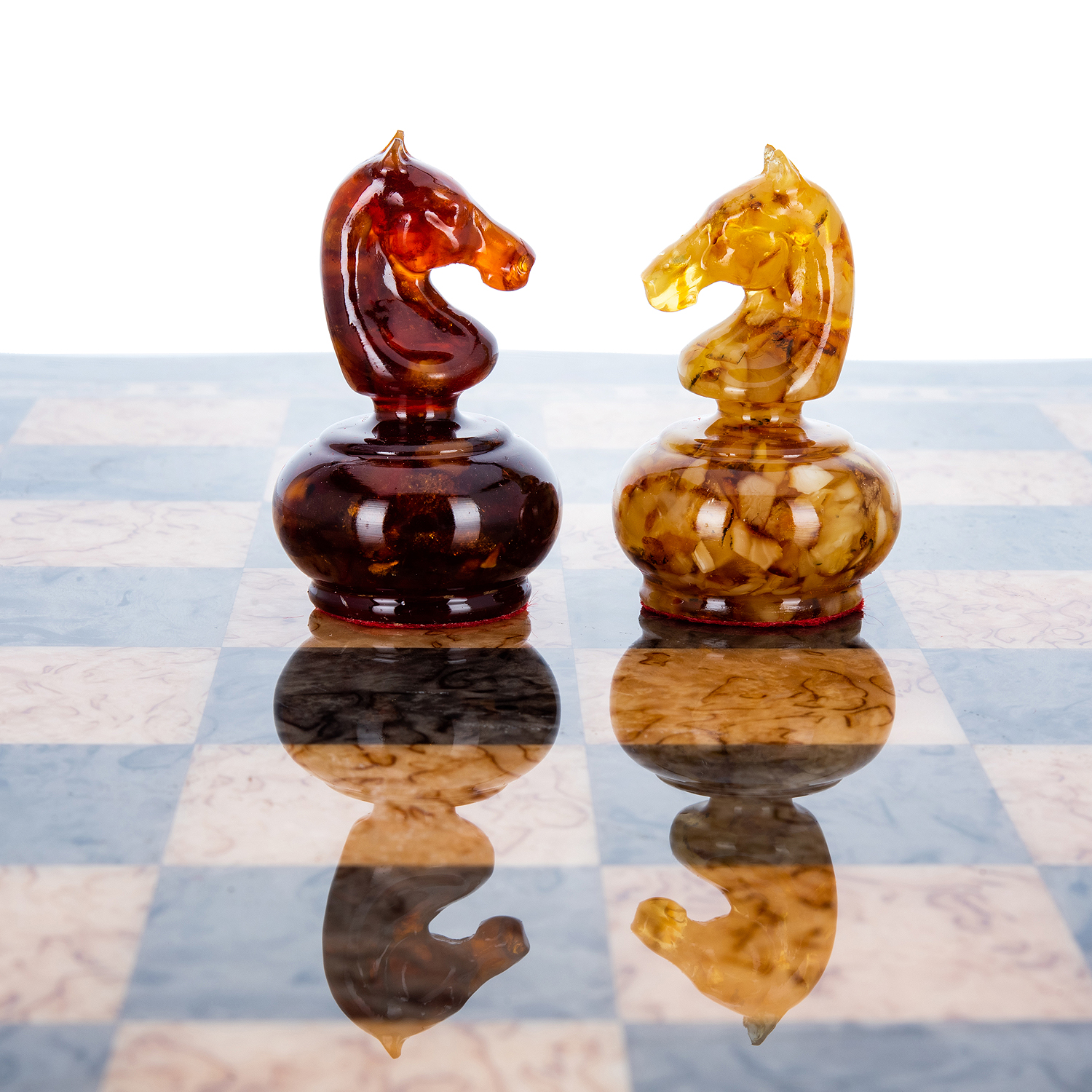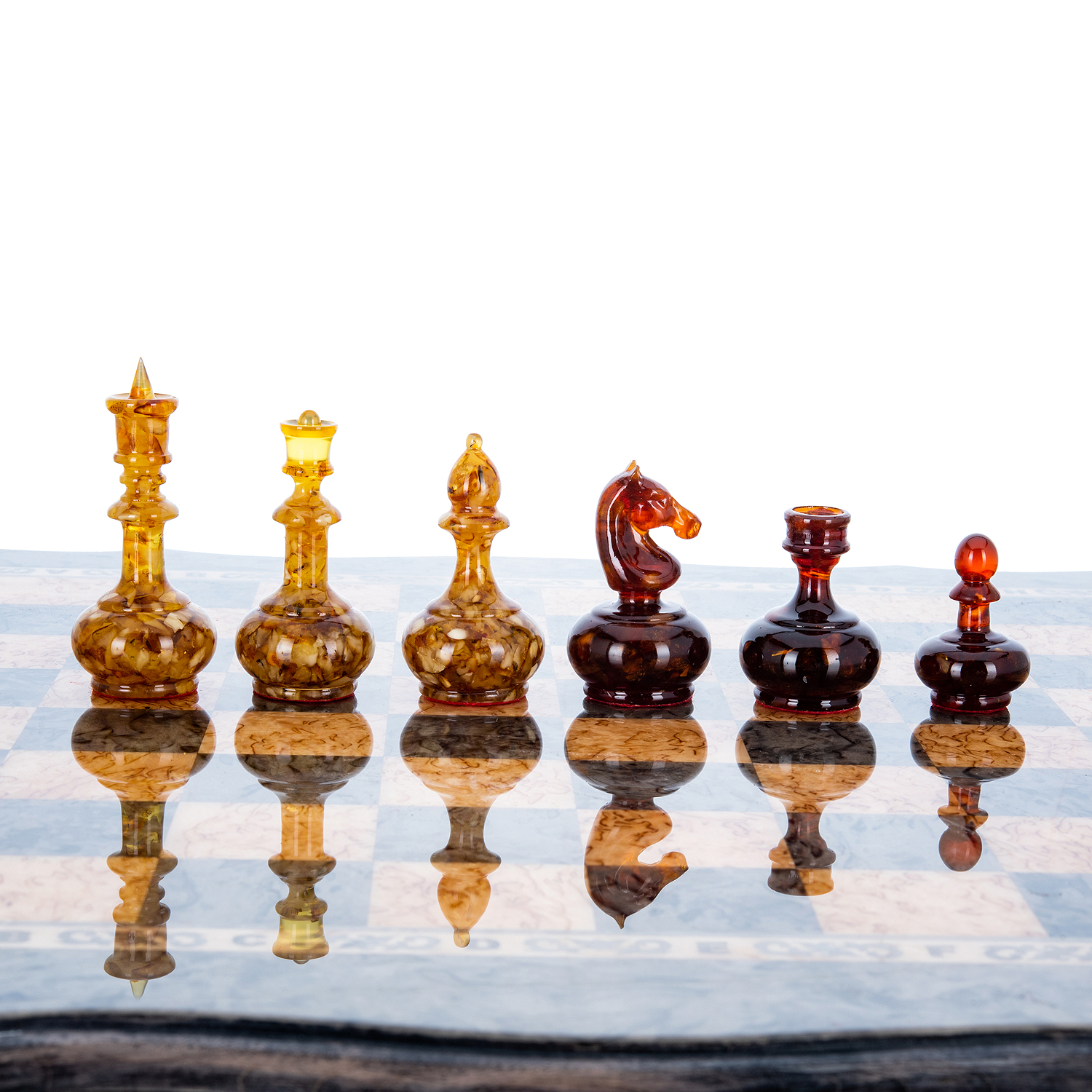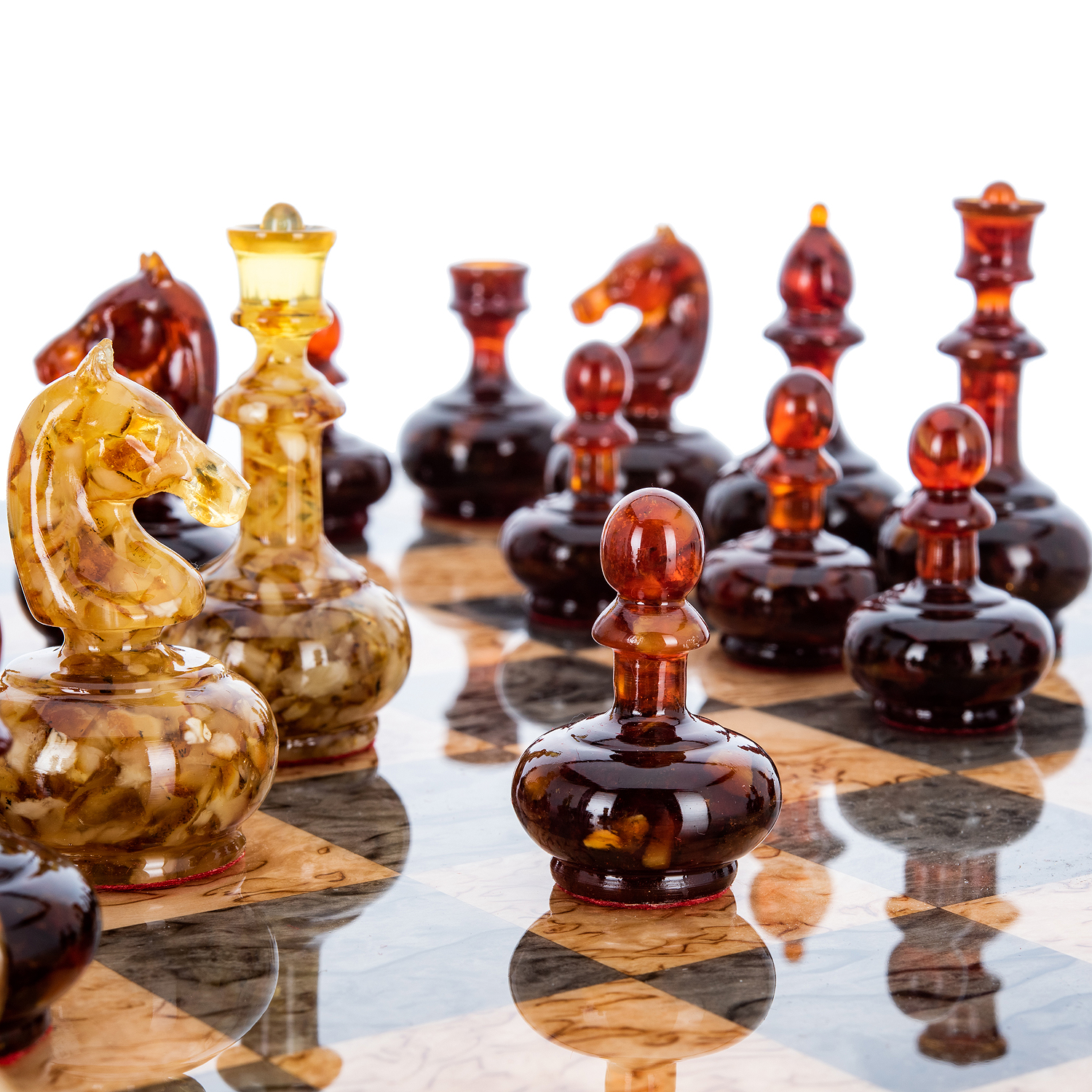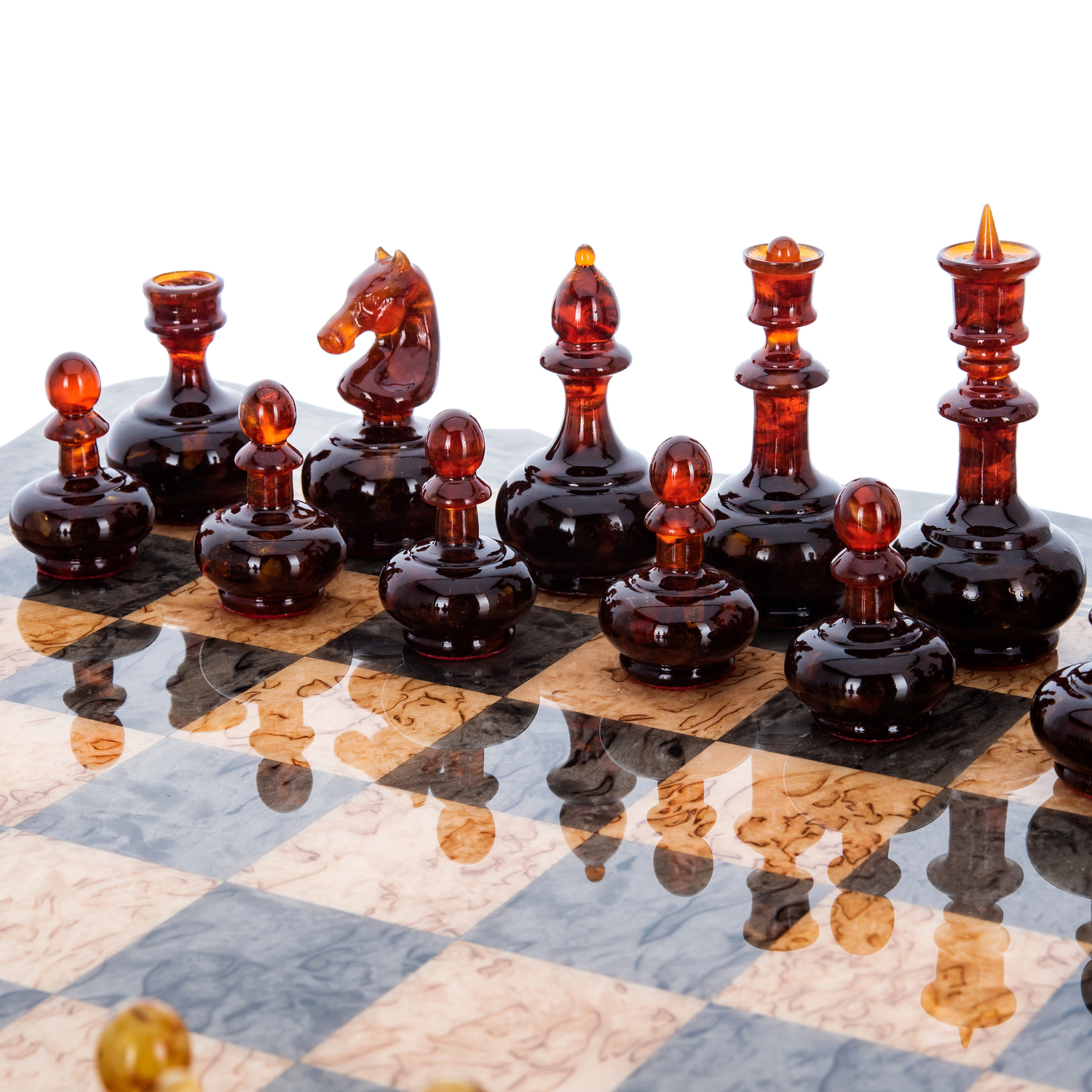 Шахматы из карельской березы с металлическими фигурами 45х45 см