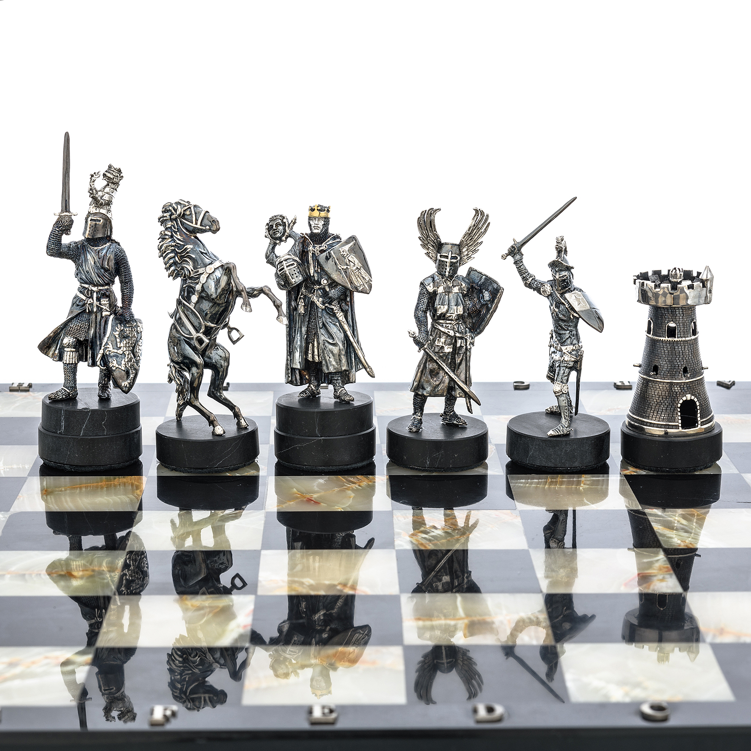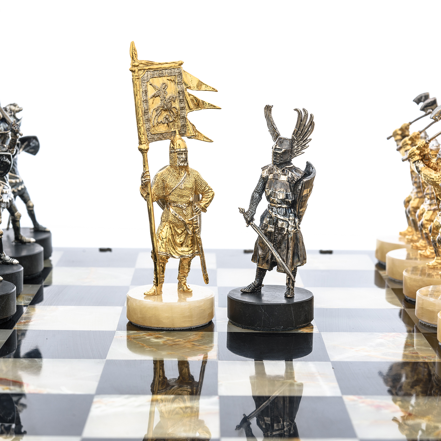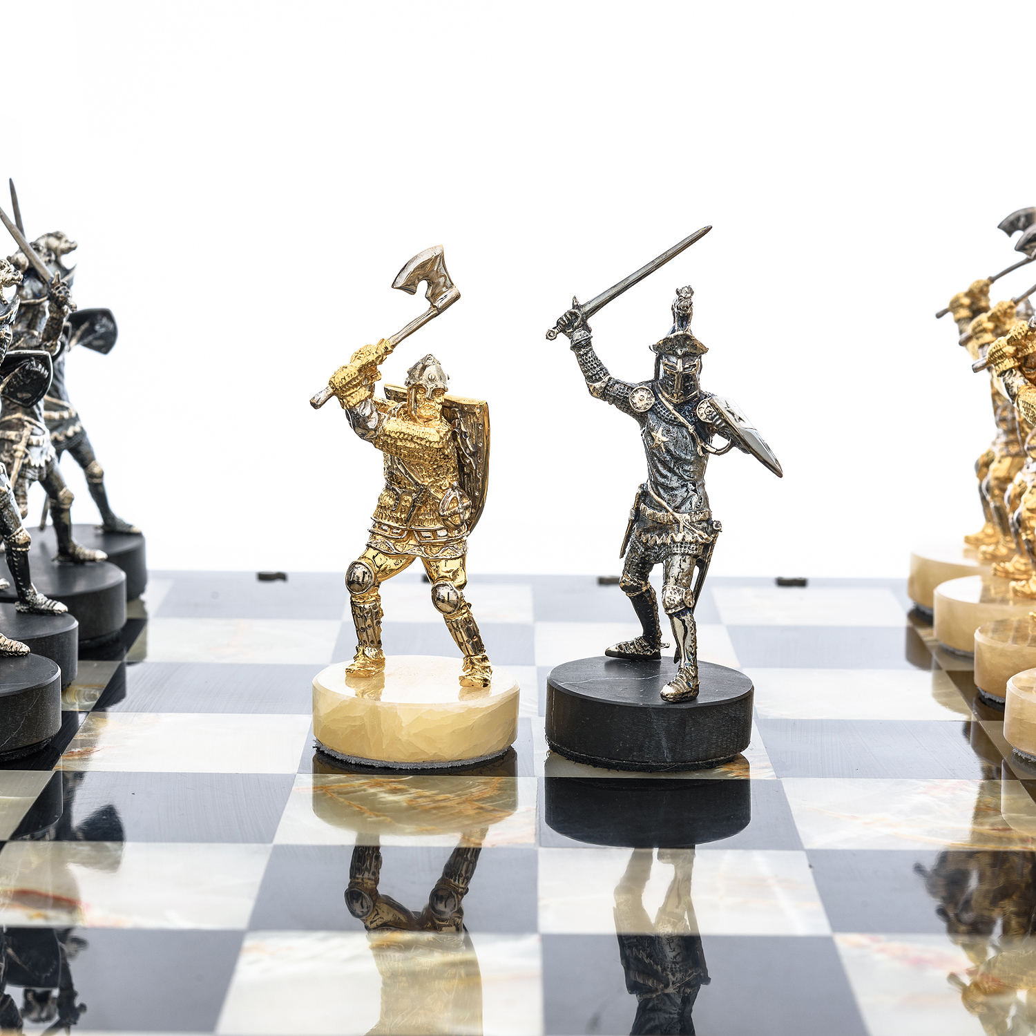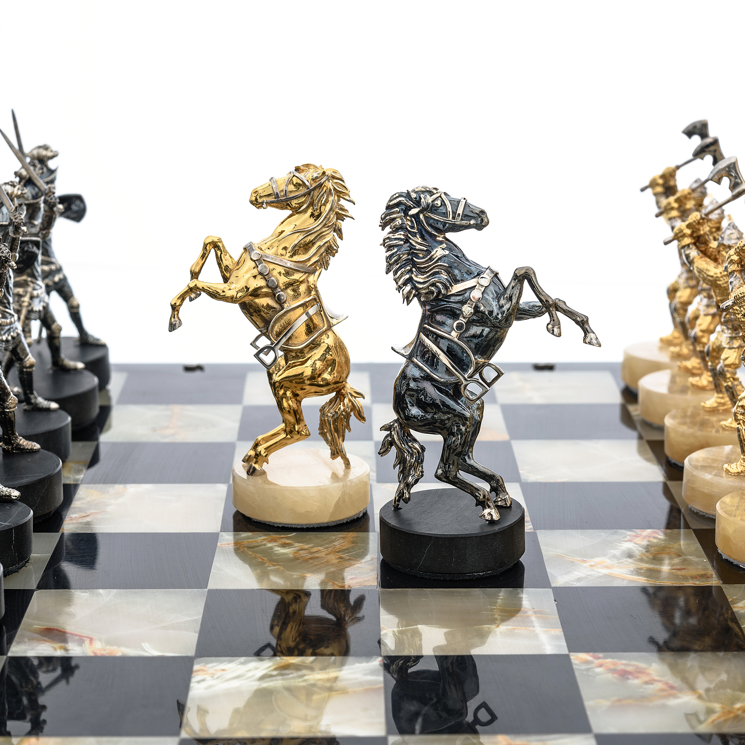 Шахматы с полем из камня и фигурами из серебра "Сражение" 35х35 см