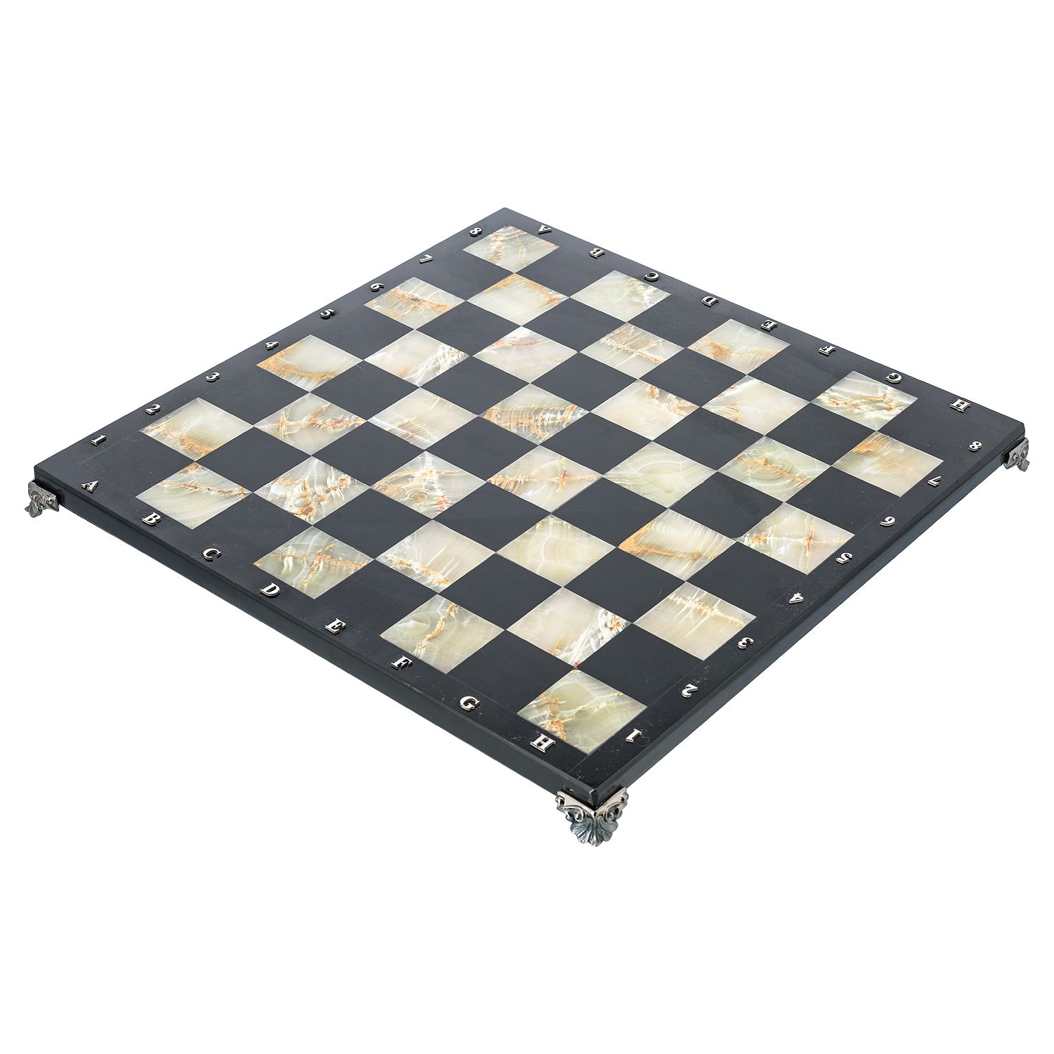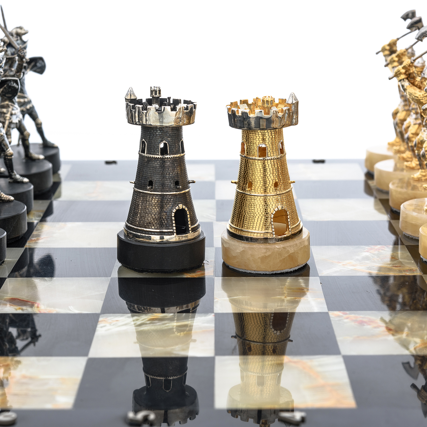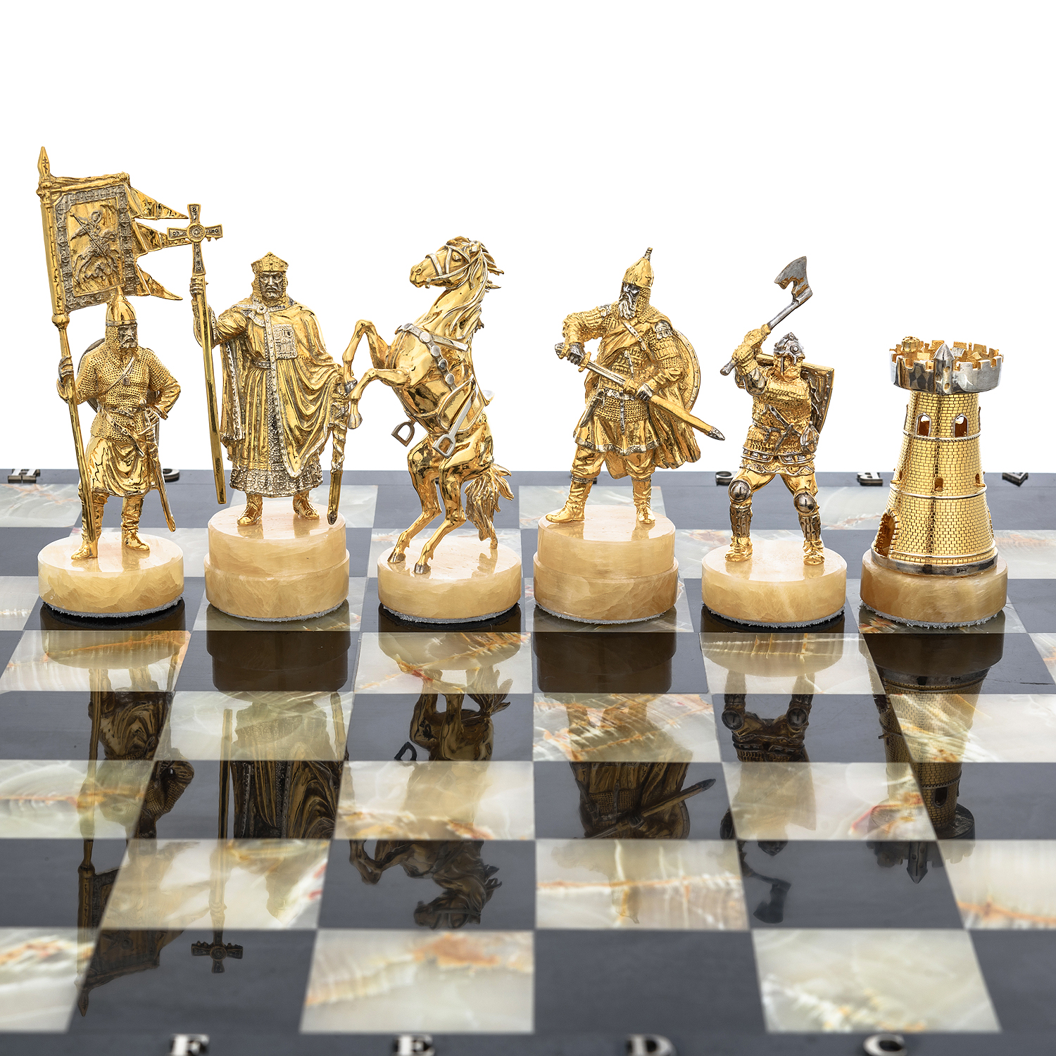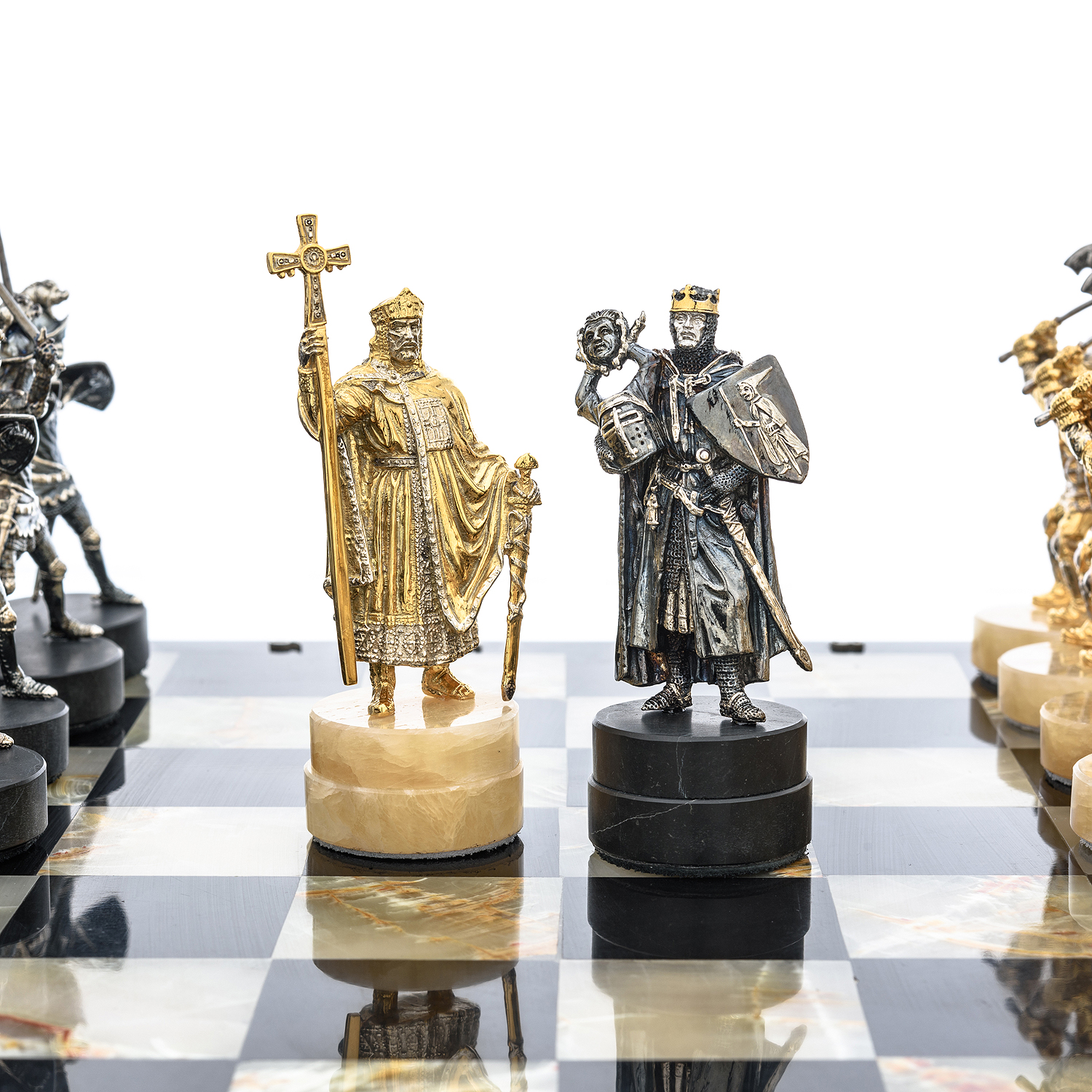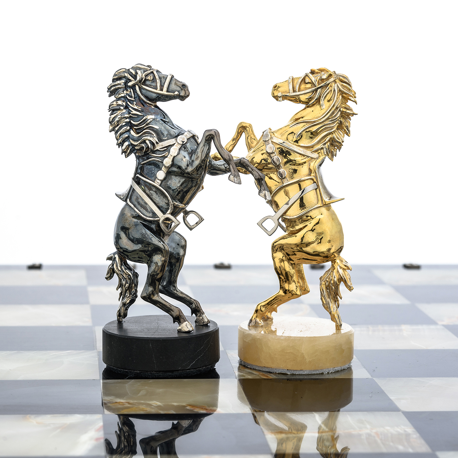 Шахматы с полем из камня и фигурами из серебра "Сражение" 35х35 см