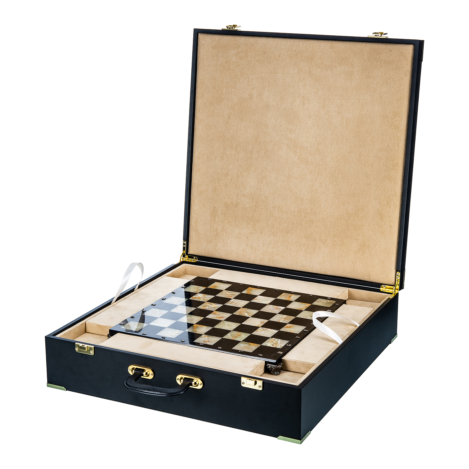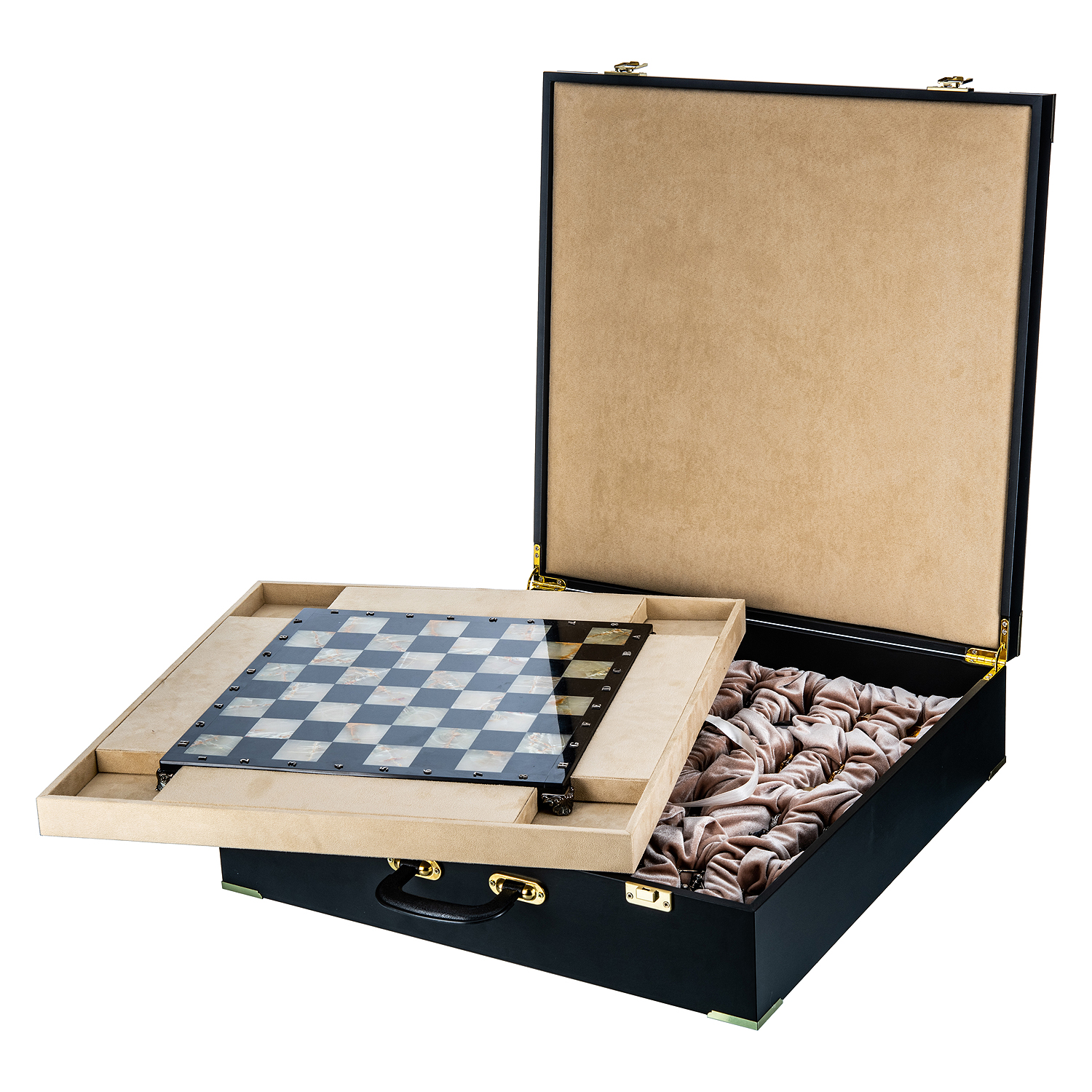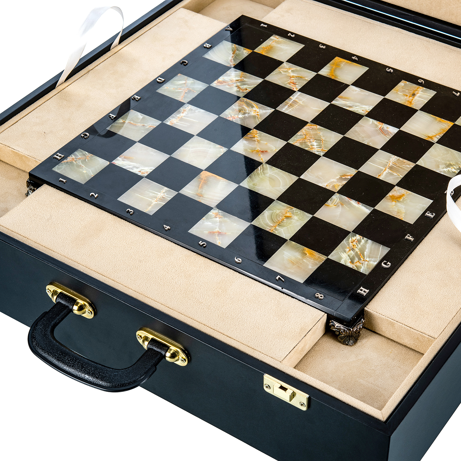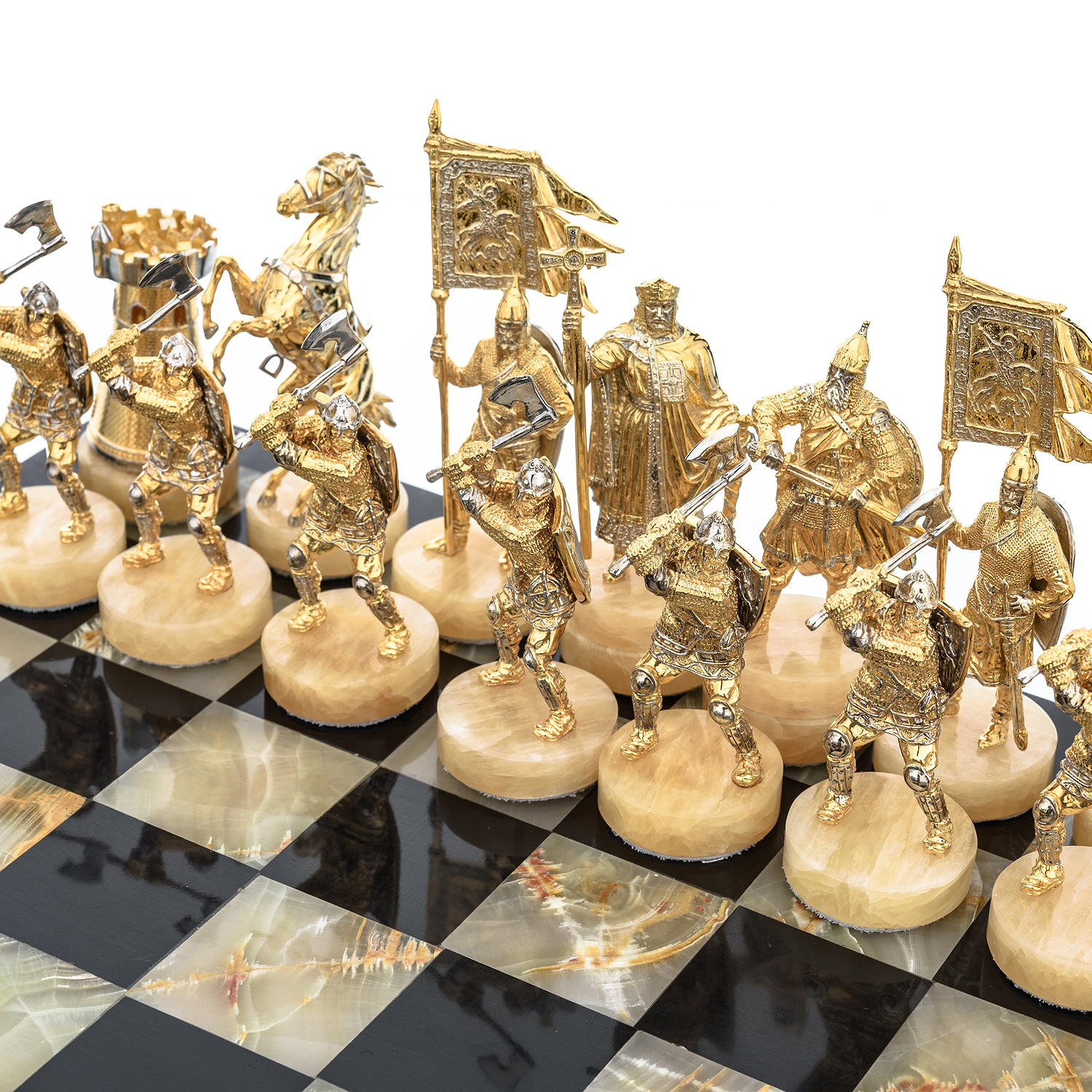 Шахматы с полем из камня и фигурами из серебра "Сражение" 35х35 см