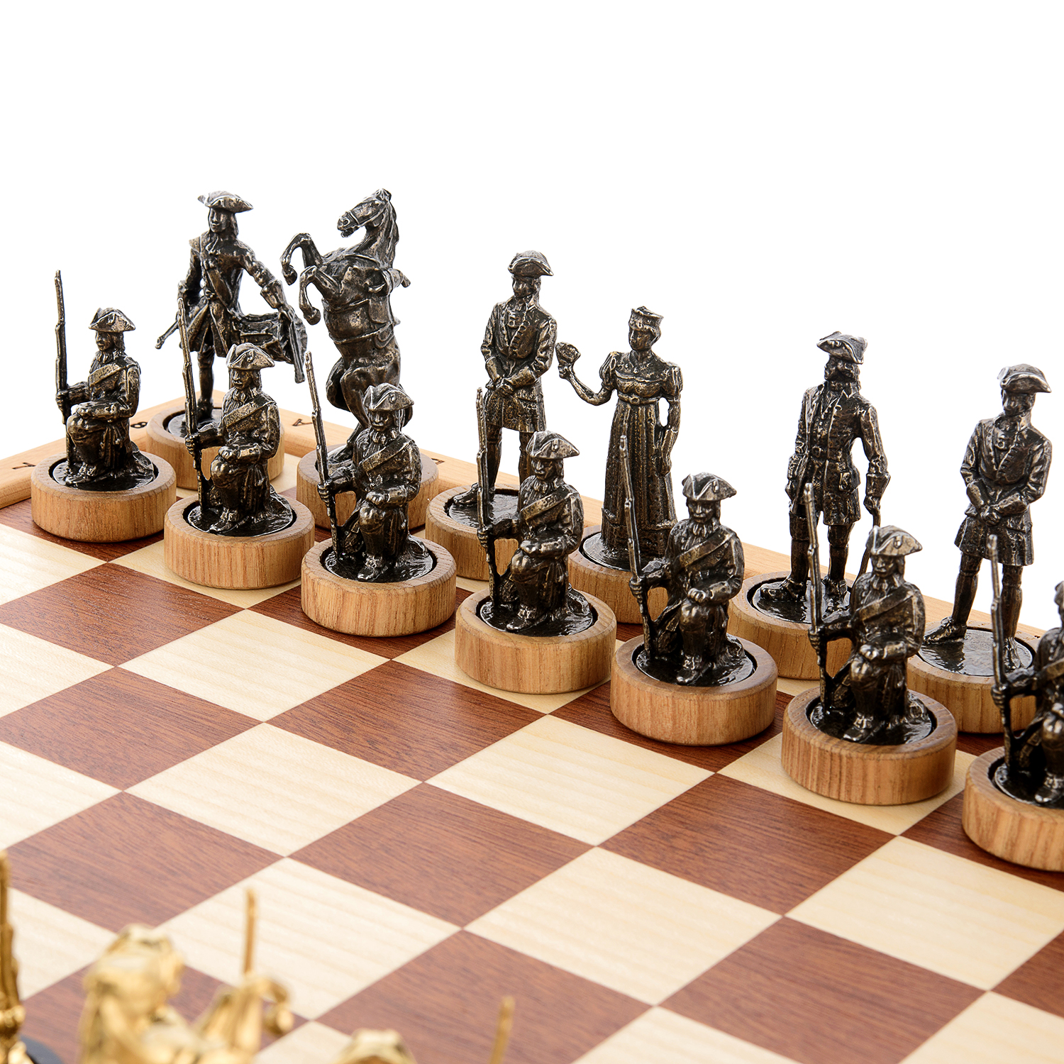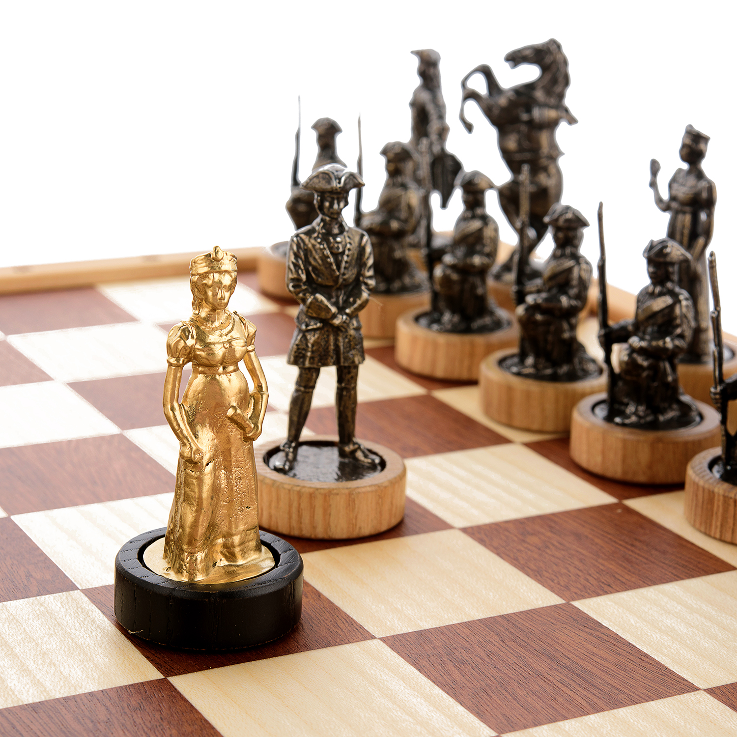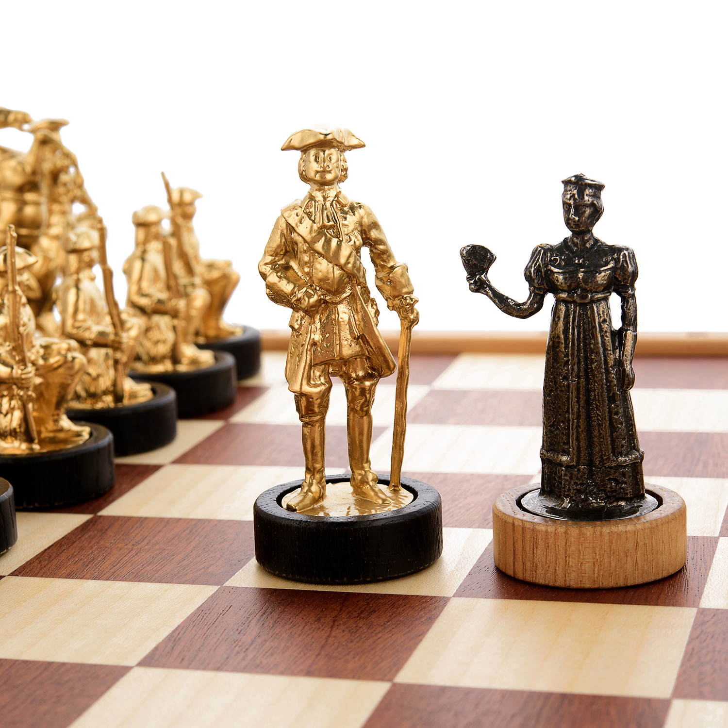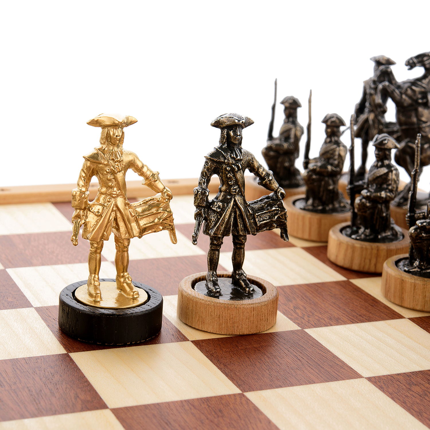 Деревянные шахматы с фигурами из цинкового сплава "Полтавская битва".