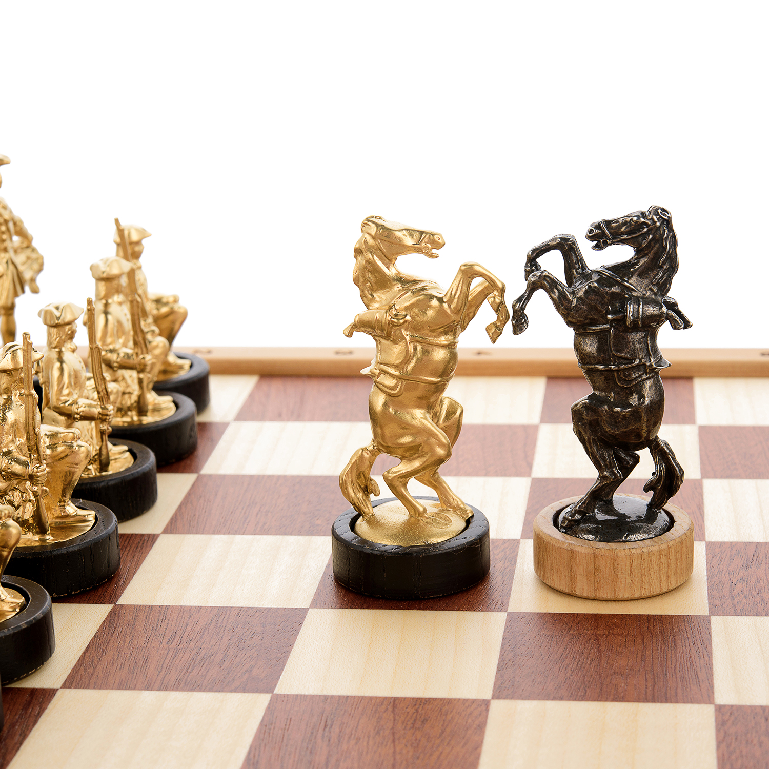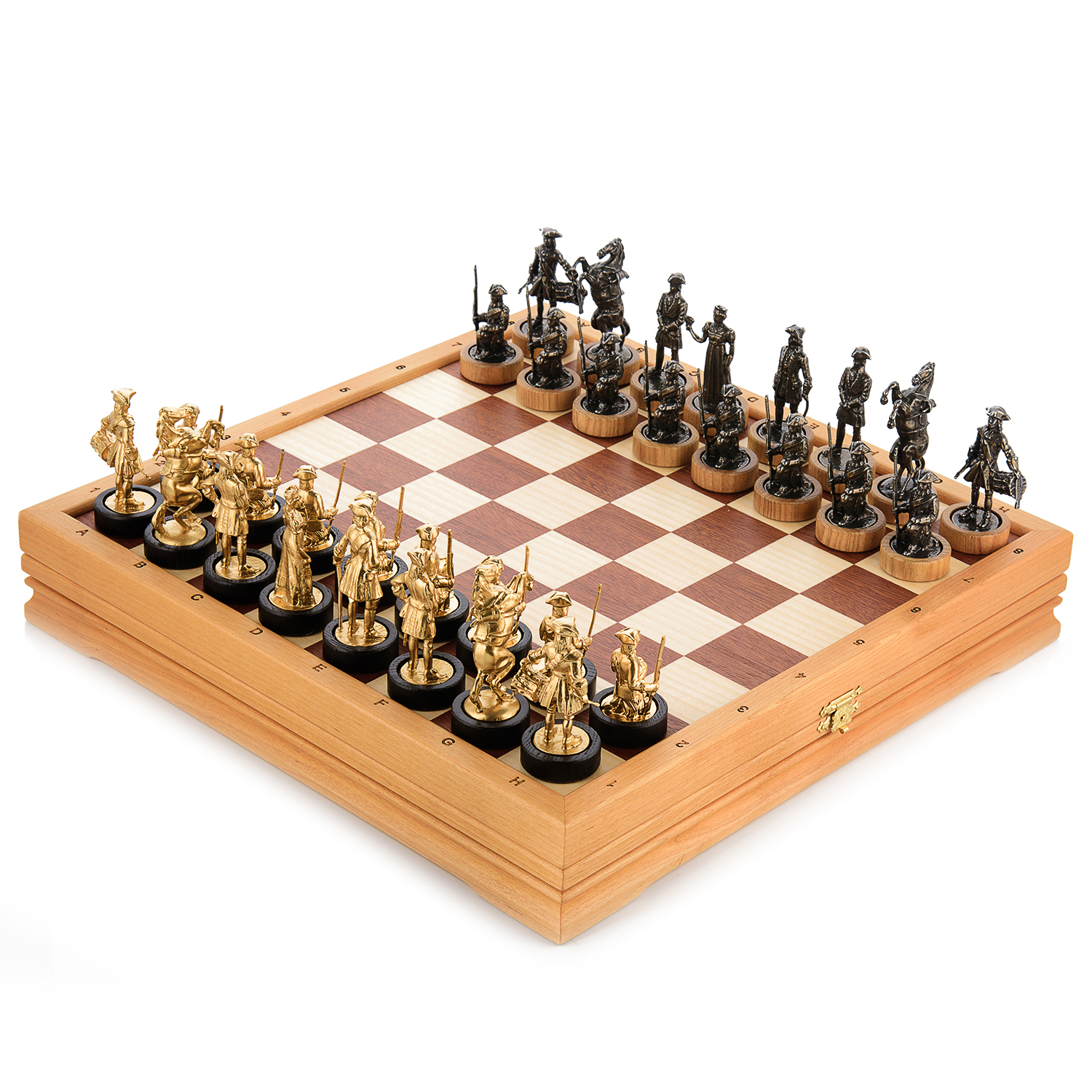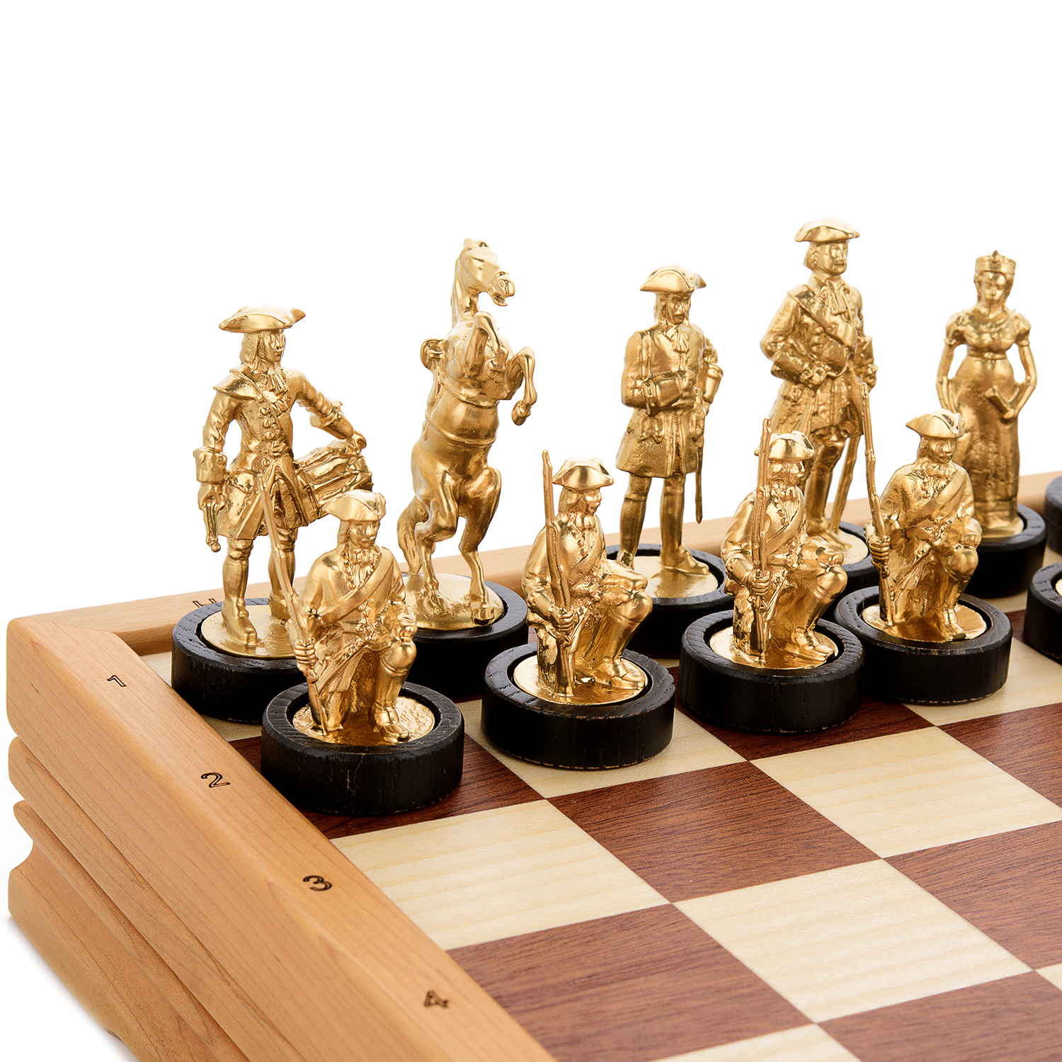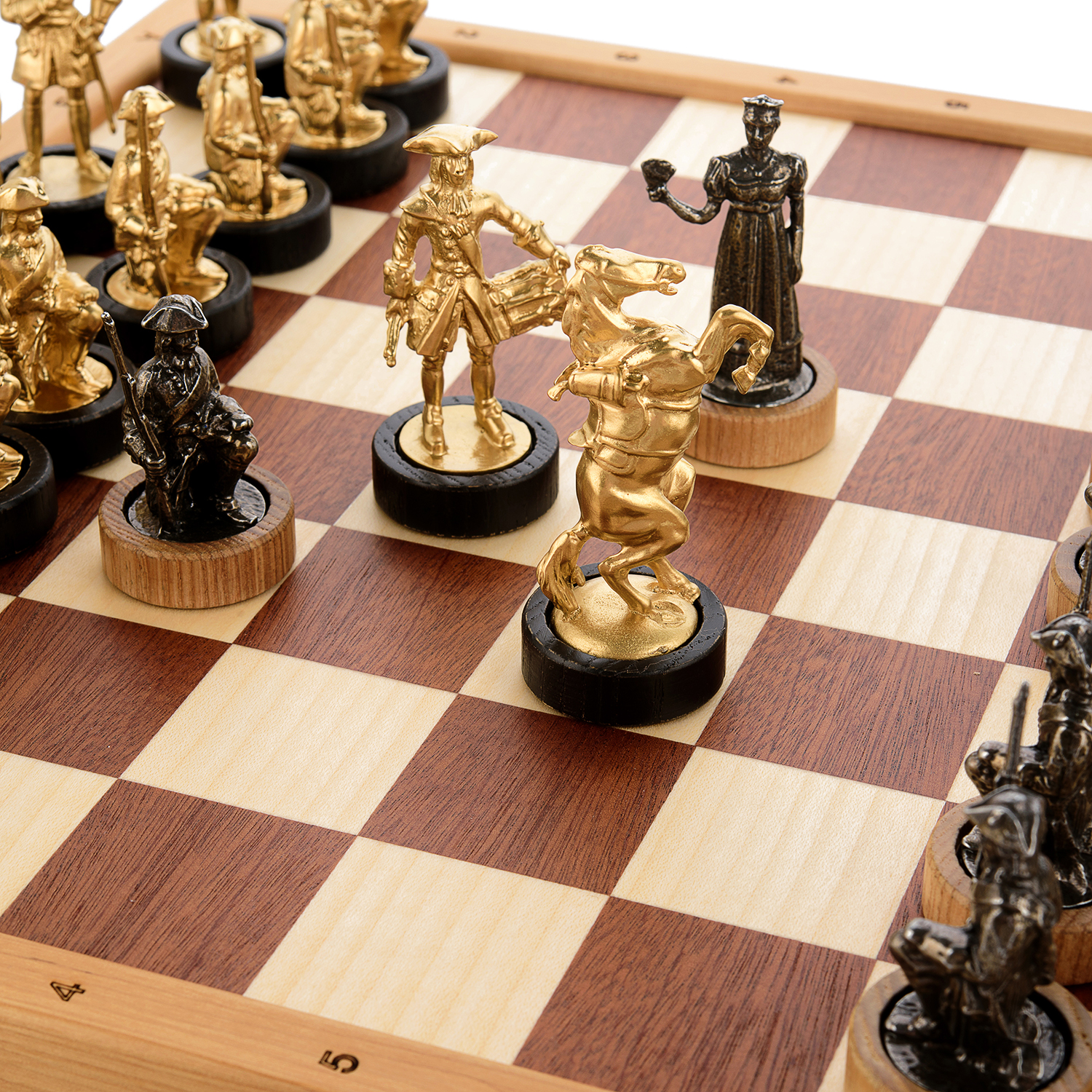 Деревянные шахматы с фигурами из цинкового сплава "Полтавская битва".