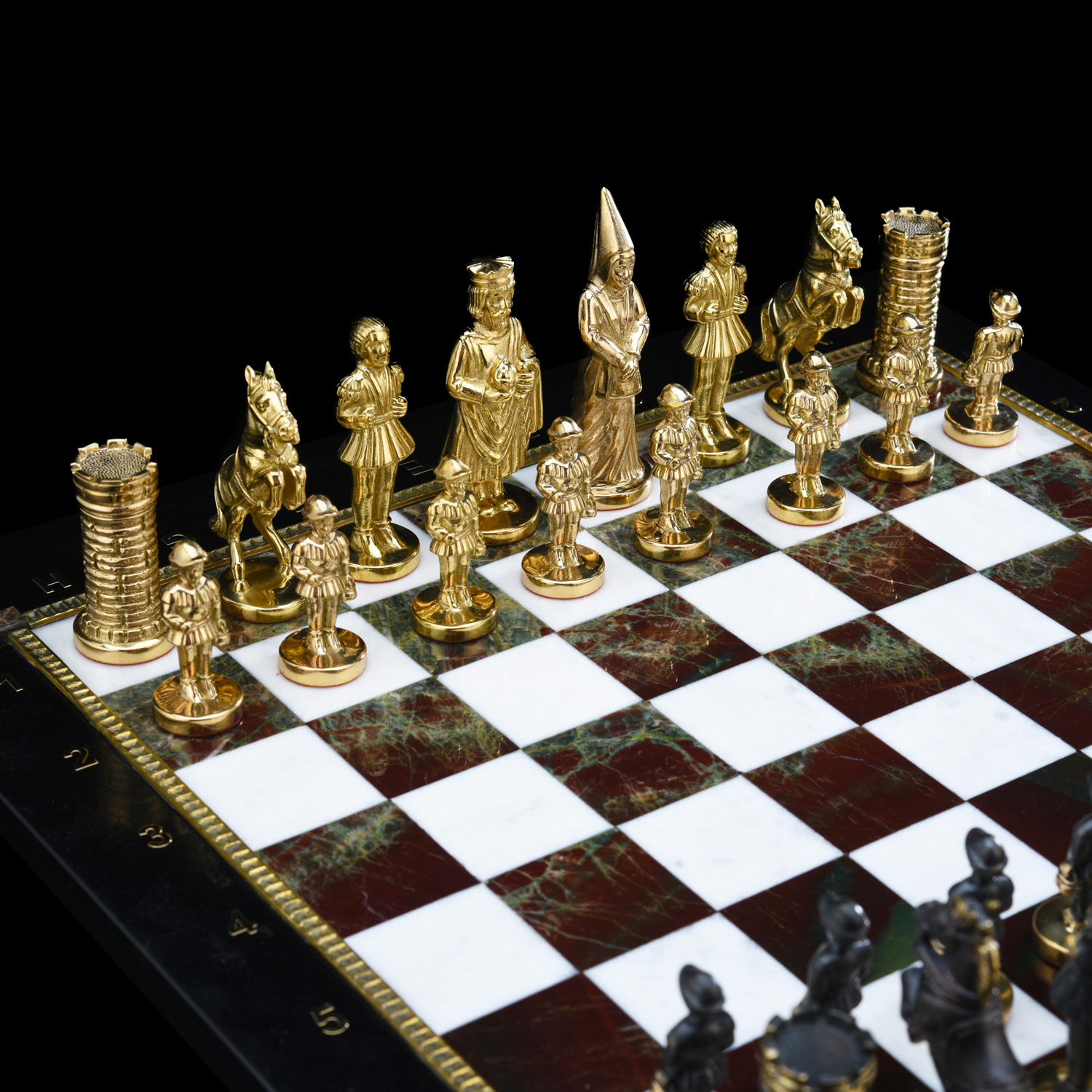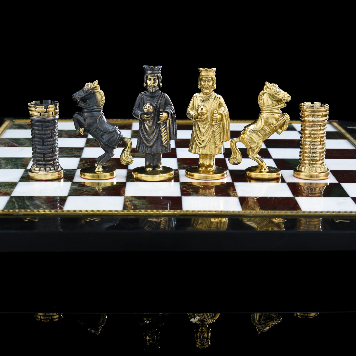 Шахматы из камня с бронзовыми фигурами. Златоуст.