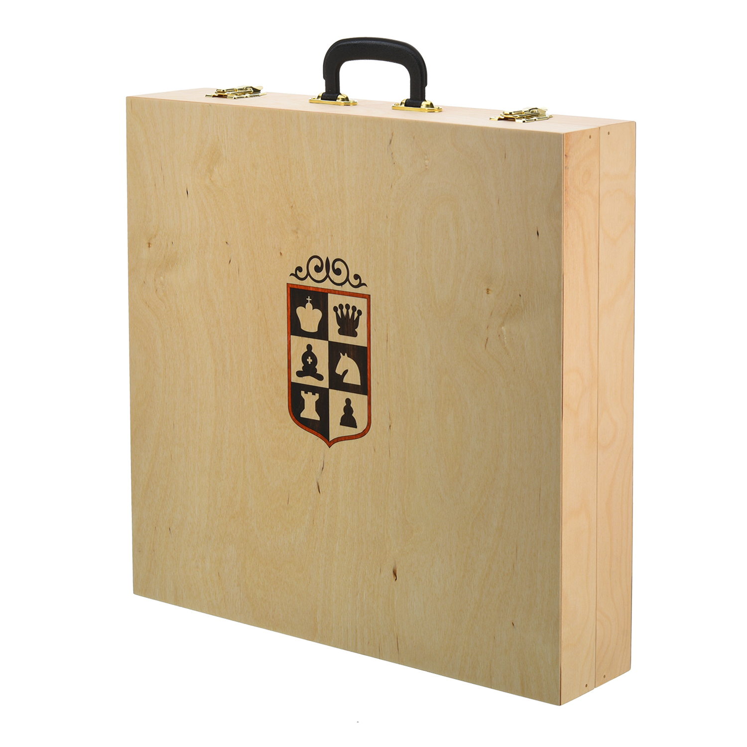 Шахматы из карельской березы с фигурами из янтаря.Размер ларца: 530х530х90 мм