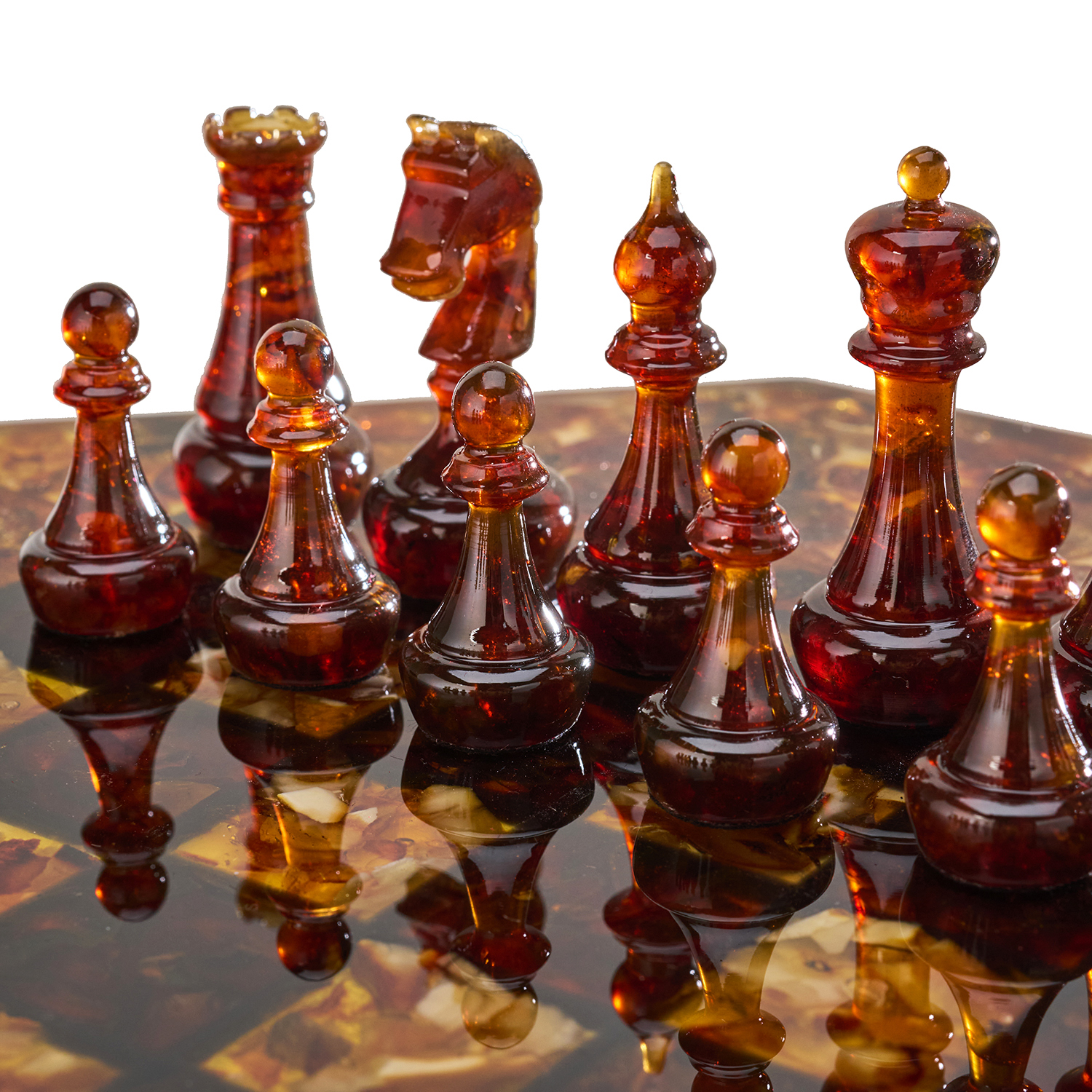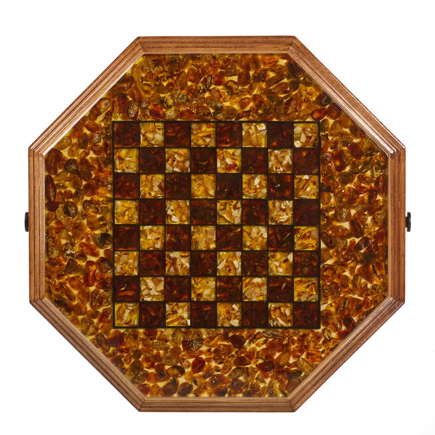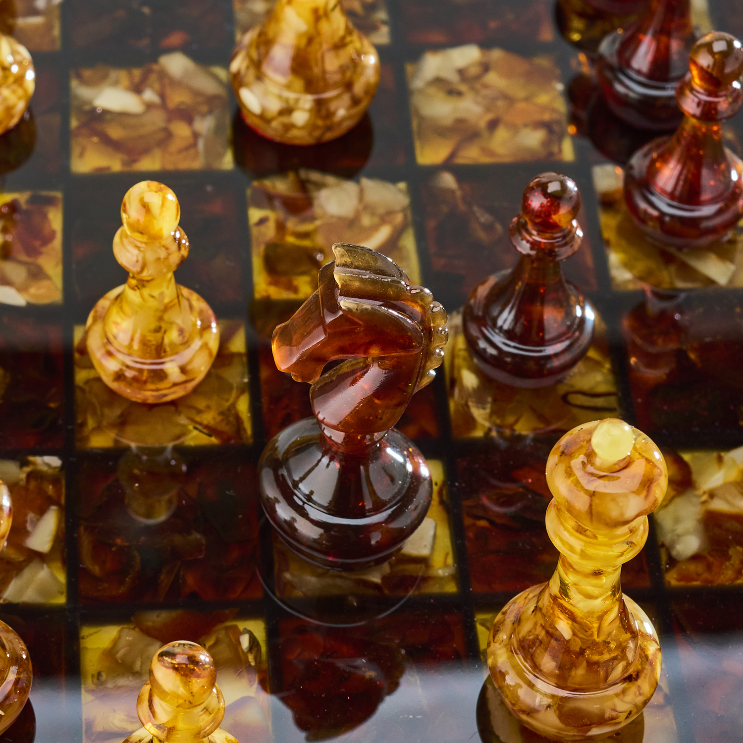 Шахматы с инкрустацией и фигурами из янтаря "Тело Платона".