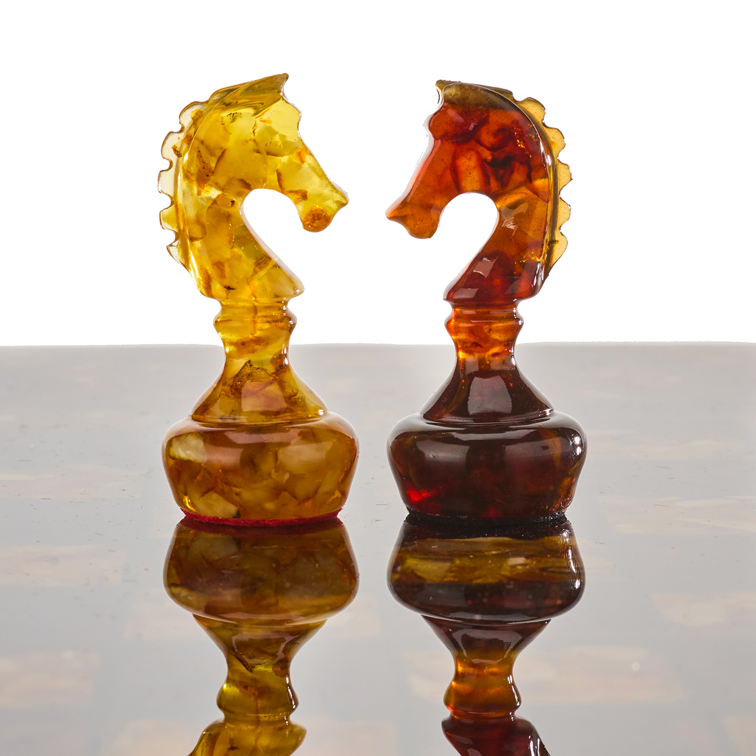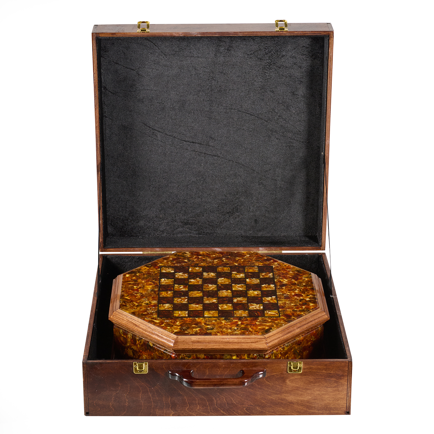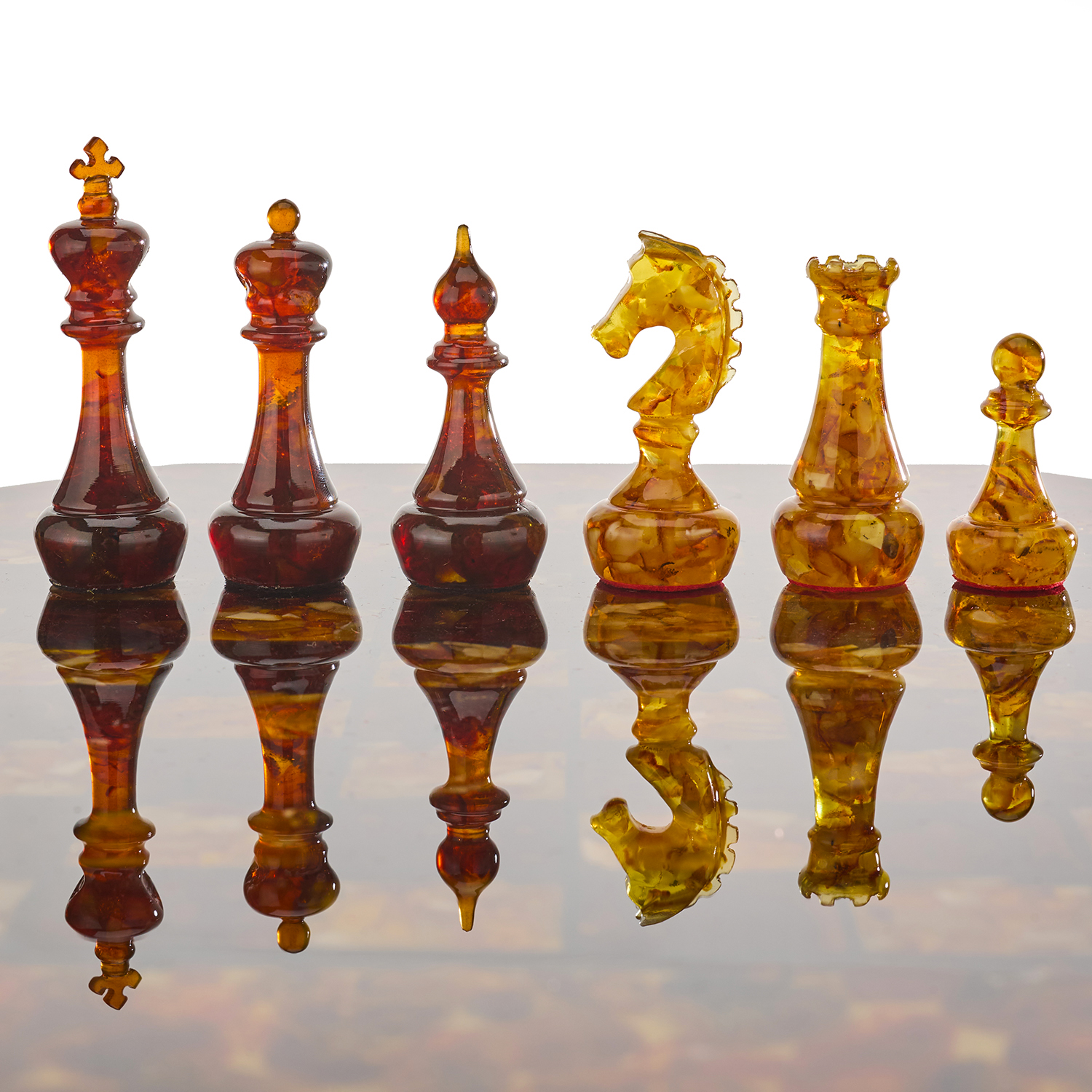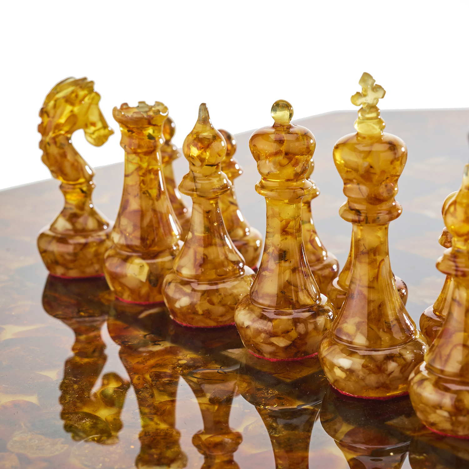 Шахматы с инкрустацией и фигурами из янтаря "Тело Платона".