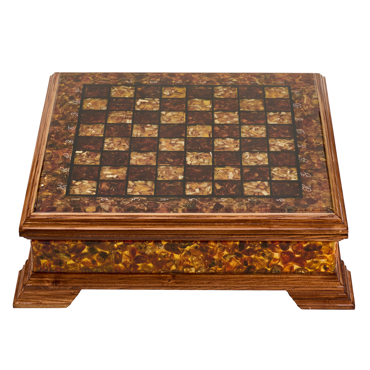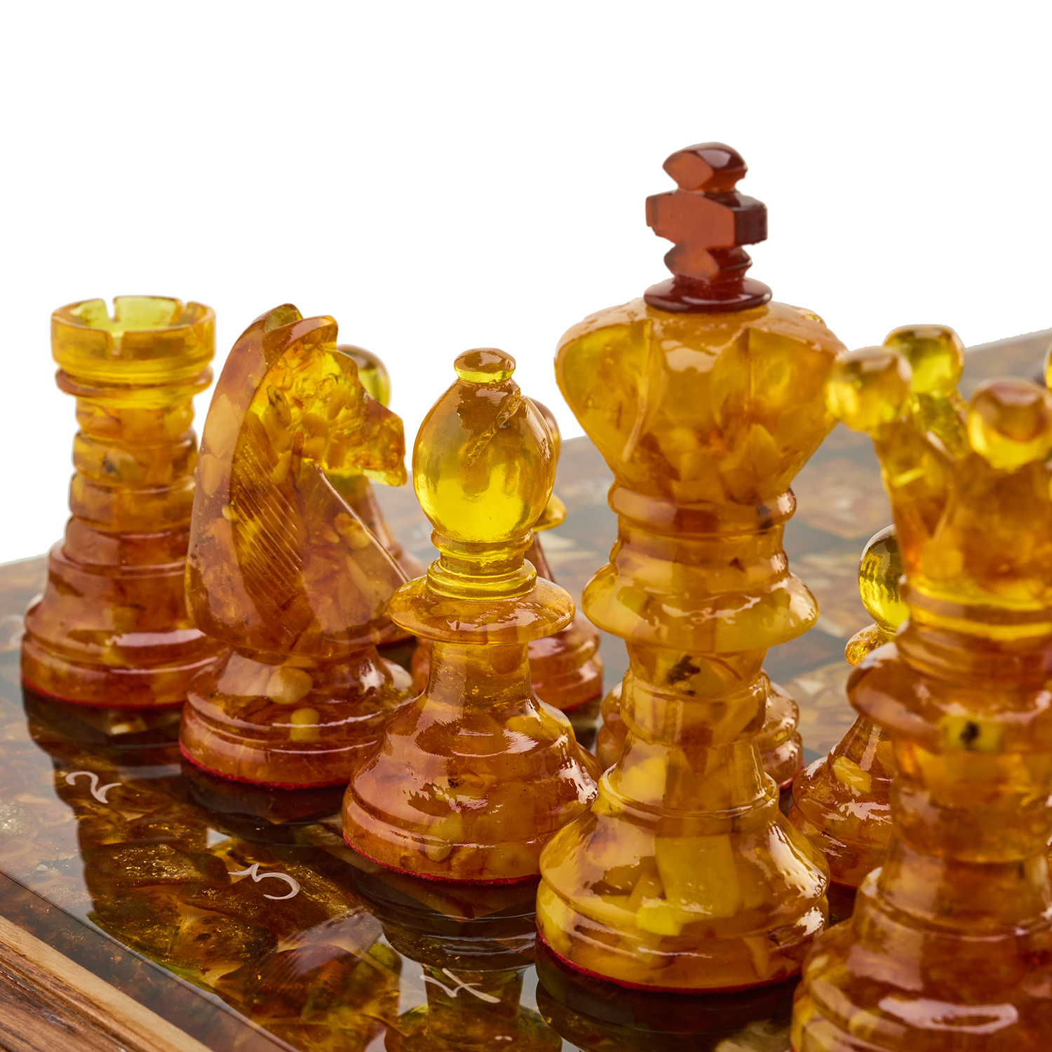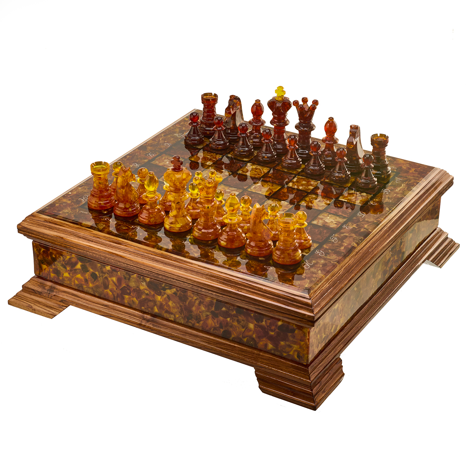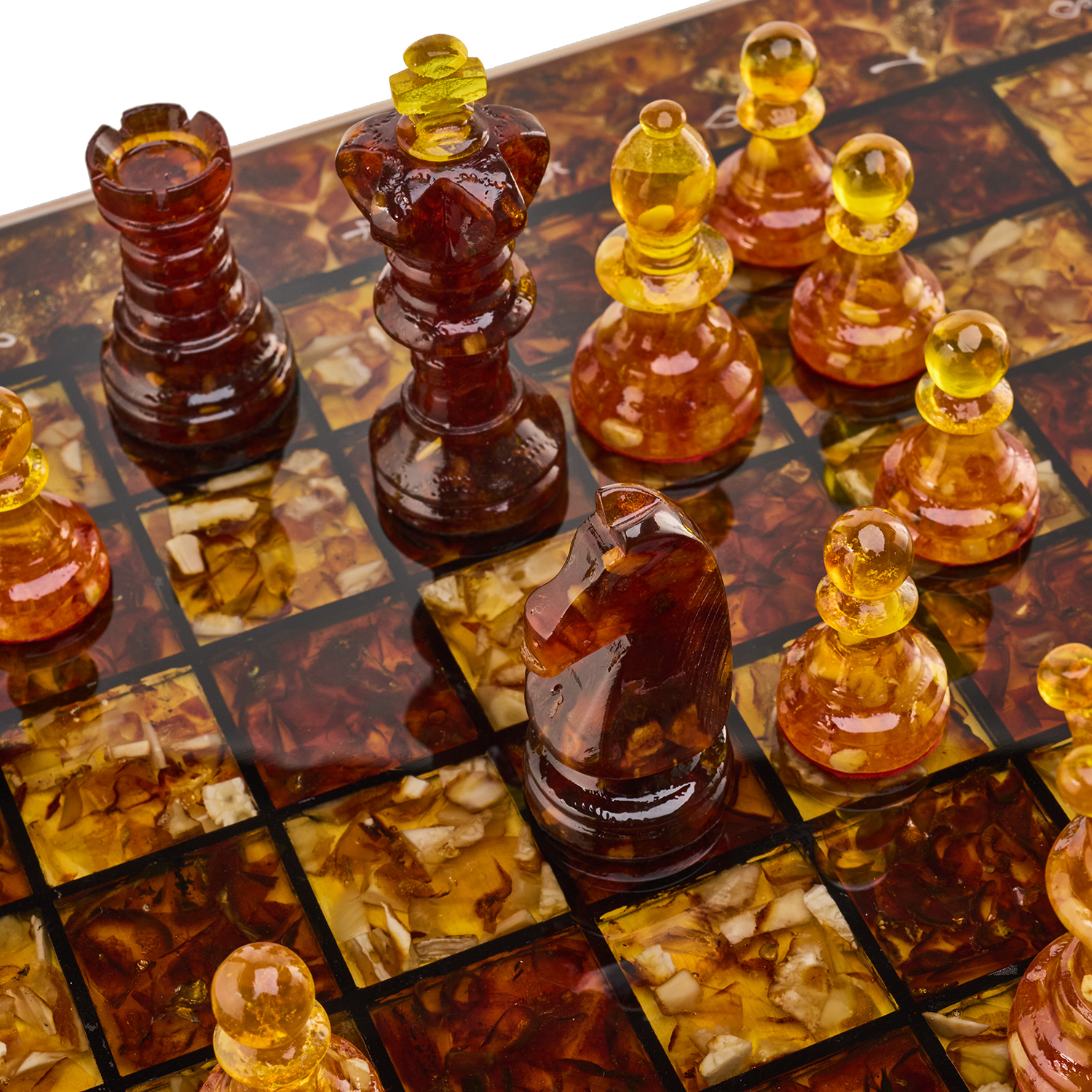 Шахматы с инкрустацией и фигурами из янтаря 50х50 см
