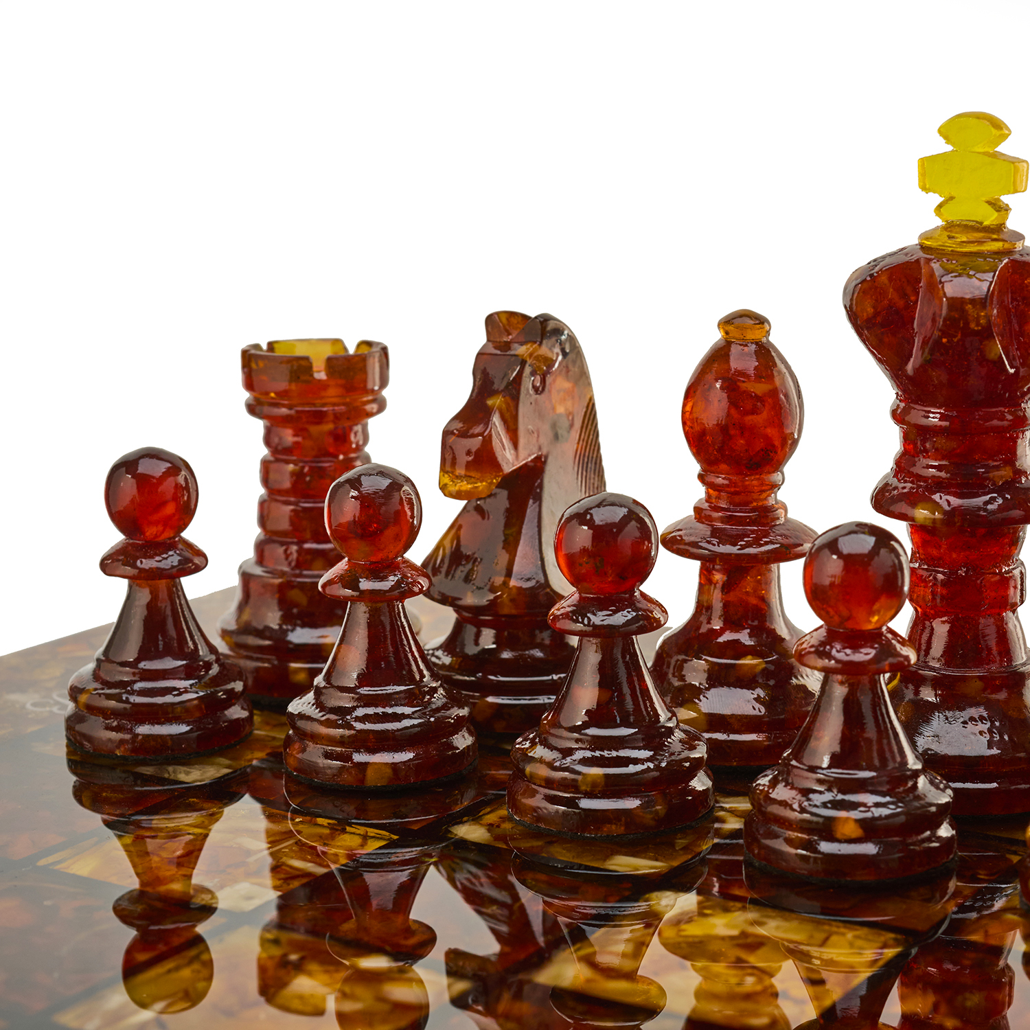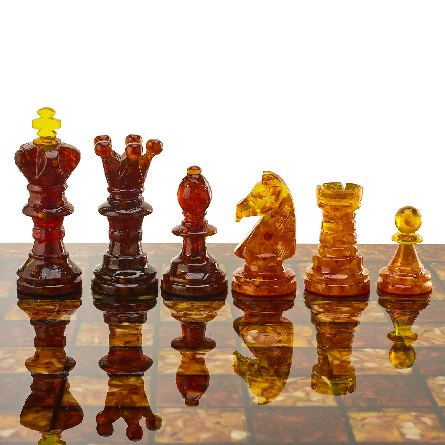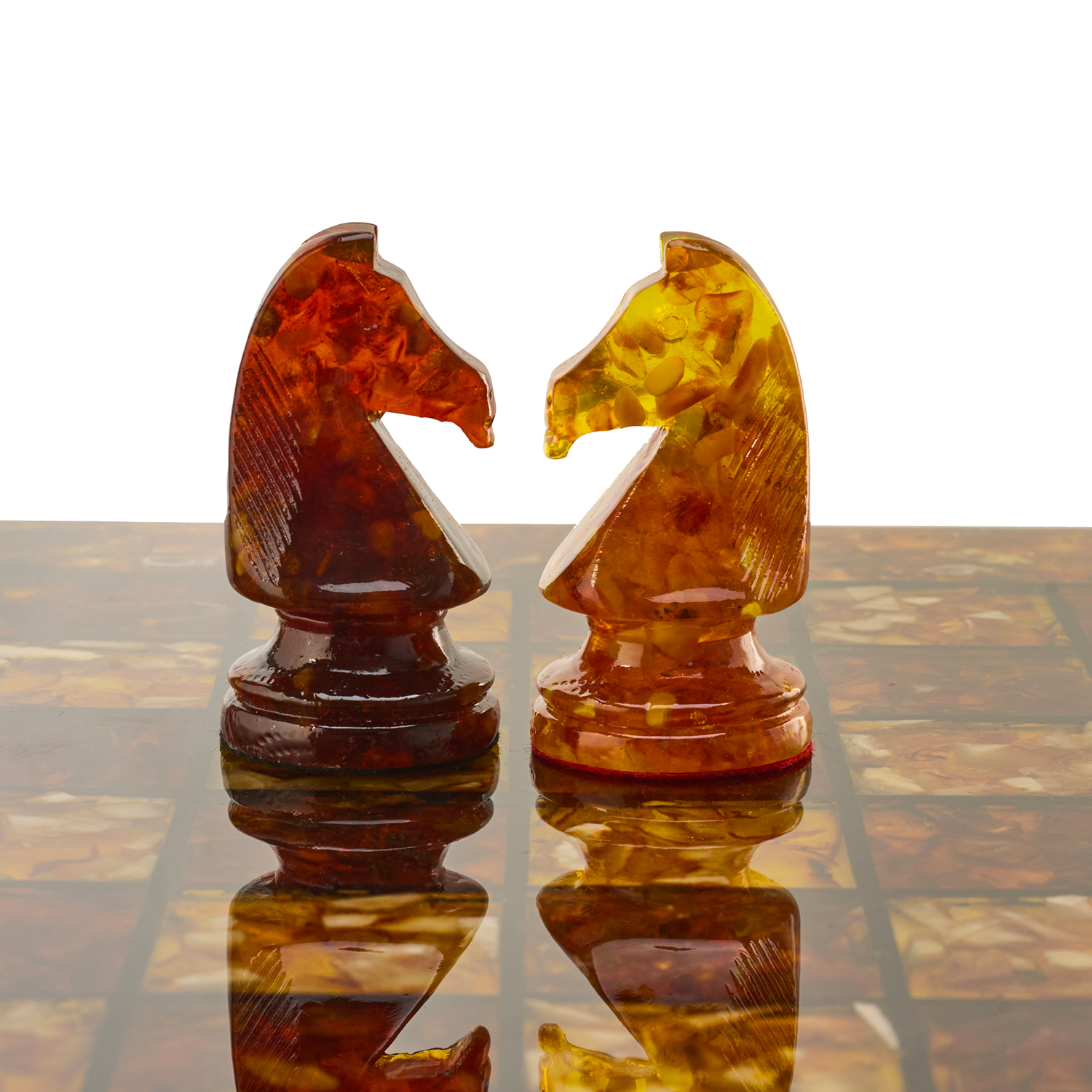 Шахматы с инкрустацией и фигурами из янтаря 50х50 см