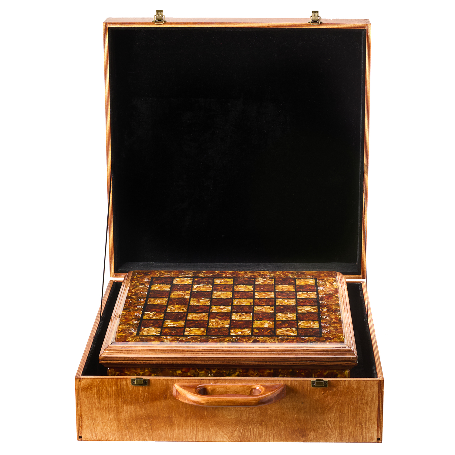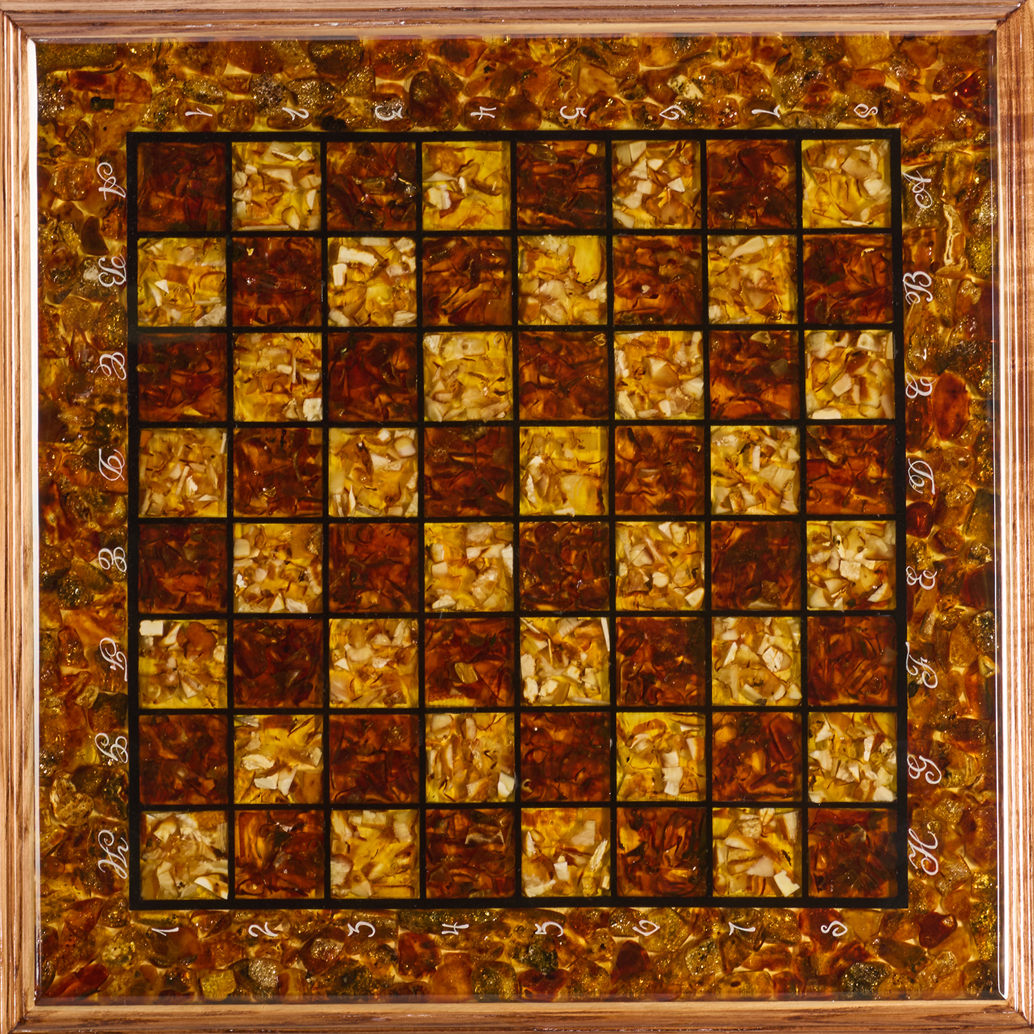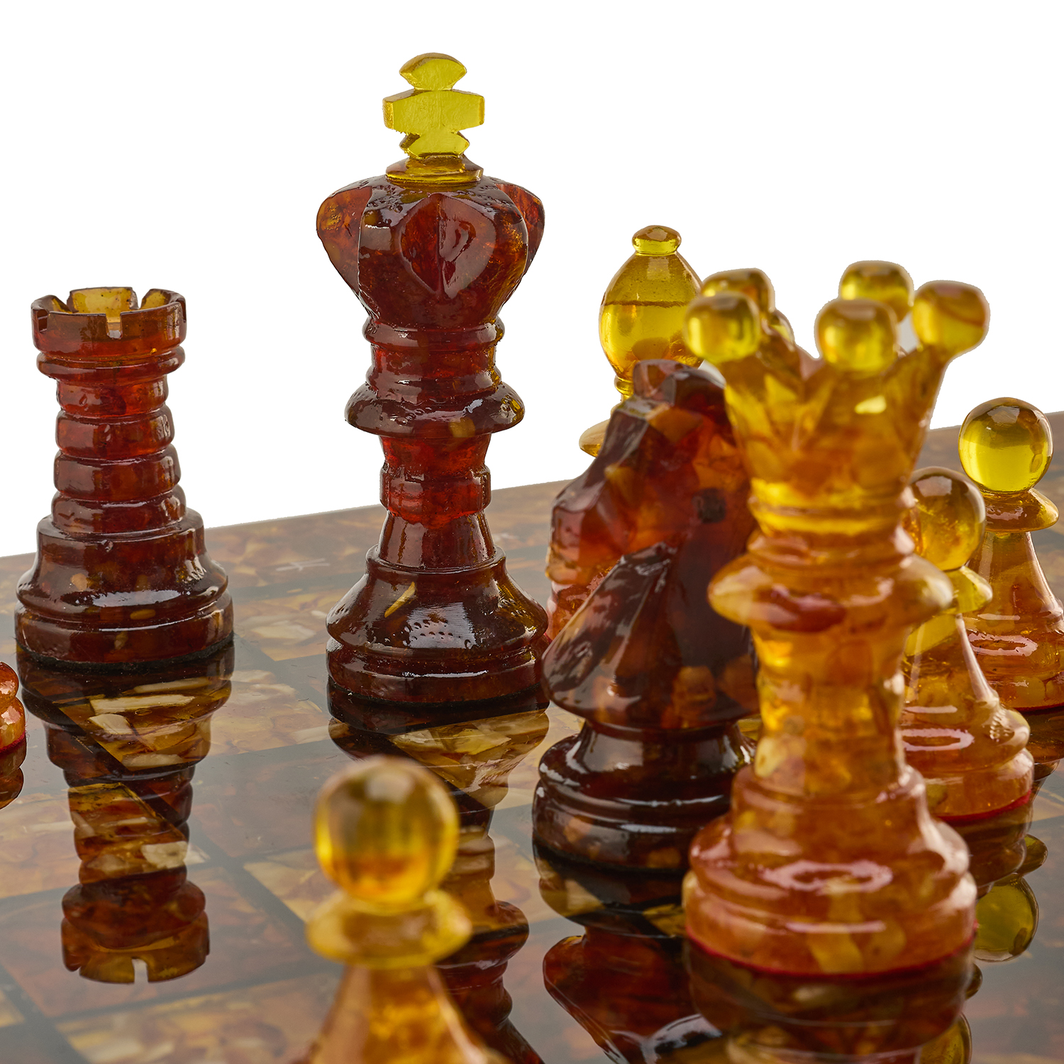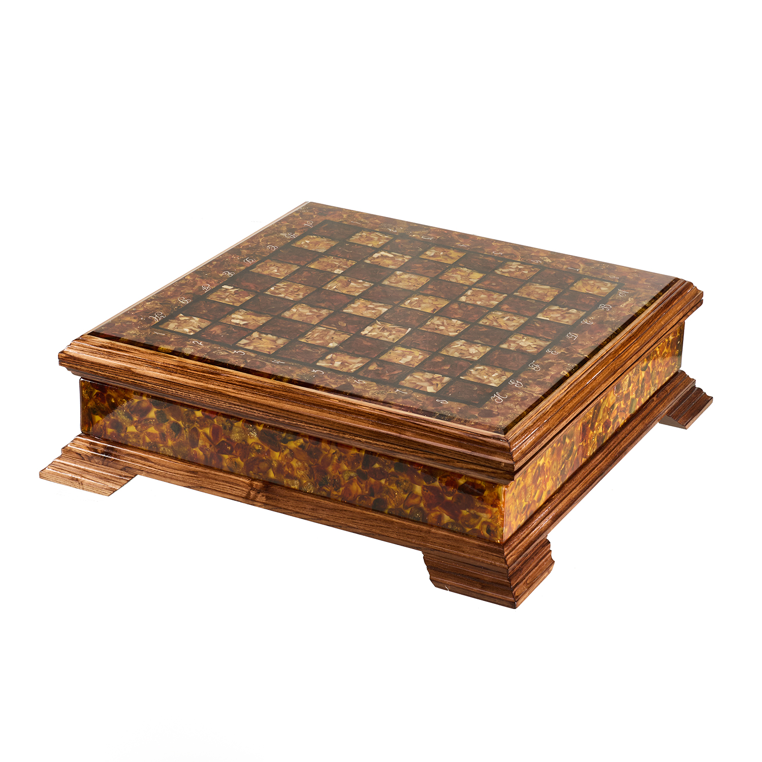 Шахматы с инкрустацией и фигурами из янтаря 50х50 см