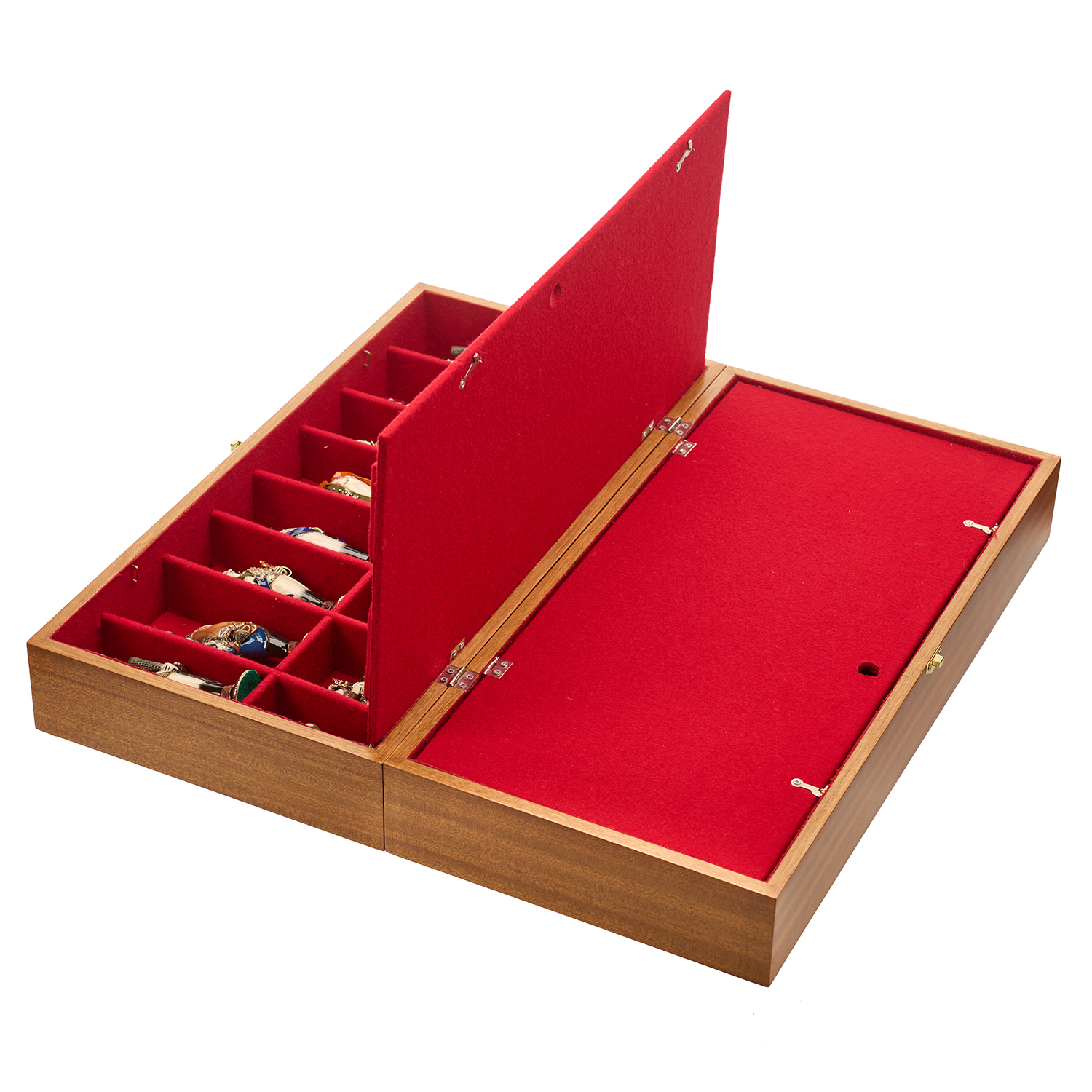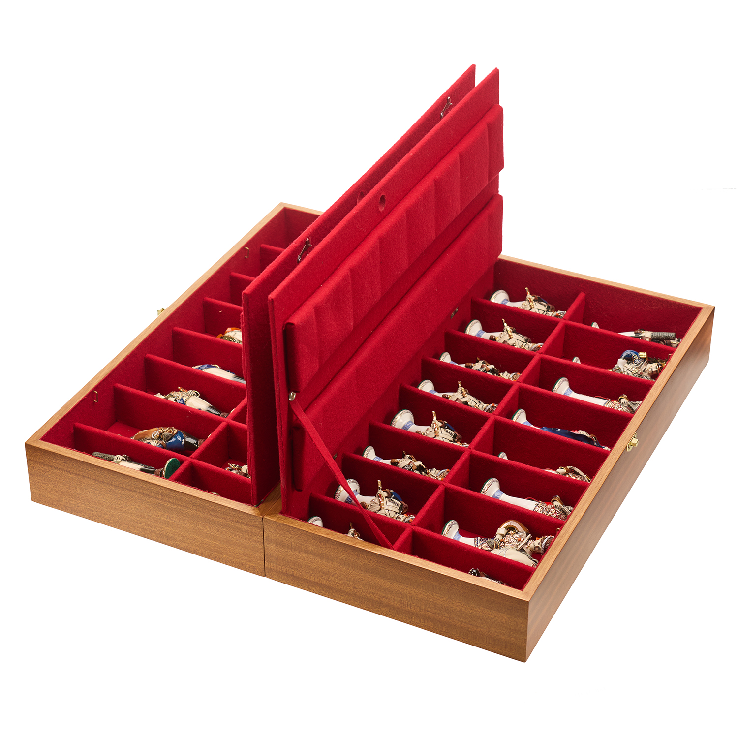Классическая шахматная доска оформлена токарем по дереву из нескольких сортов древесины ценного сорта древесины, твердой и износостойкой.  В сложенном виде она представляет собой ларец. Предлагаемые  шахматы ручной работы - это шедевр российского декоративно-прикладного искусства. Они отличаются высокой художественной и коллекционной ценностью, к которым со временем добавится антикварная.