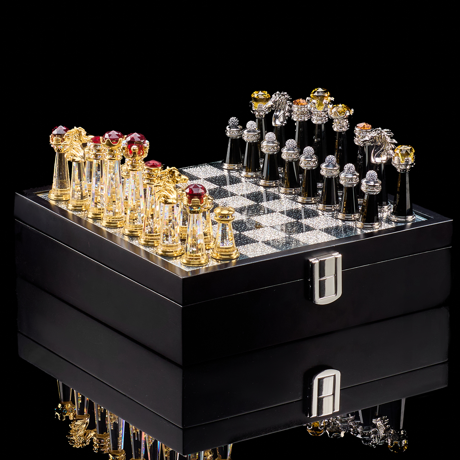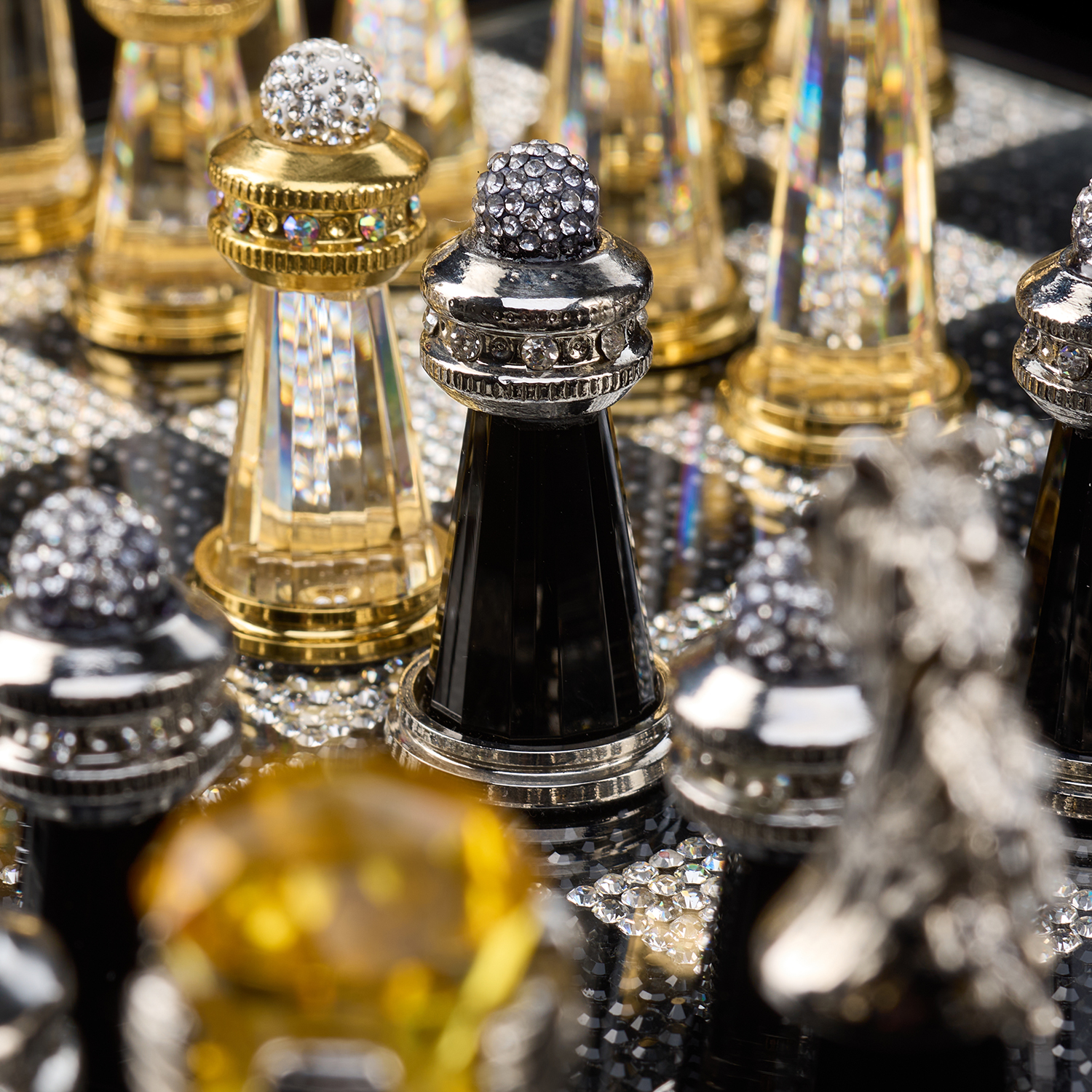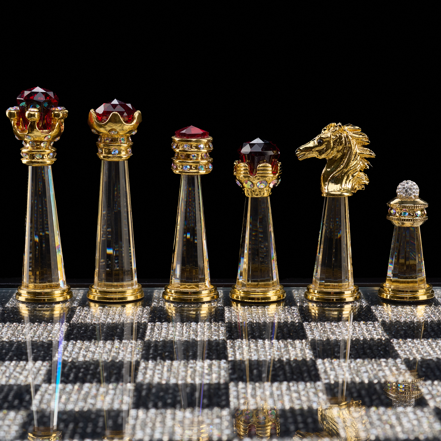 Шахматы со стразами и хрустальными фигурами 29х29 см