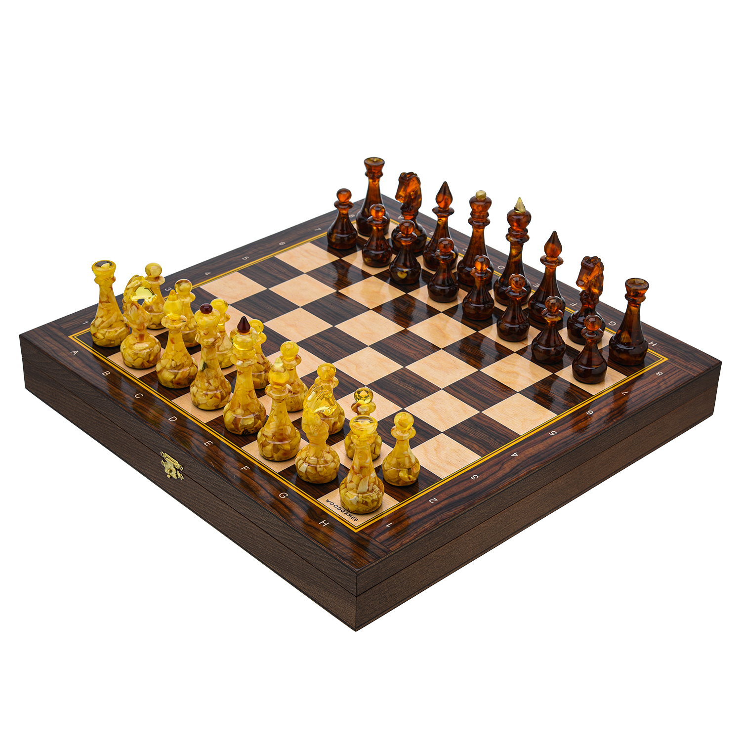 Шахматы деревянные с янтарными фигурами 37х37 см