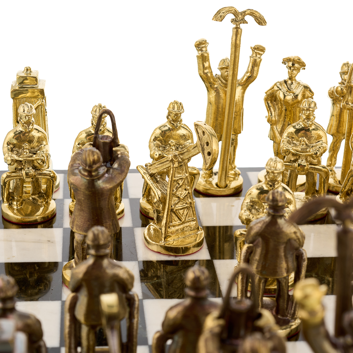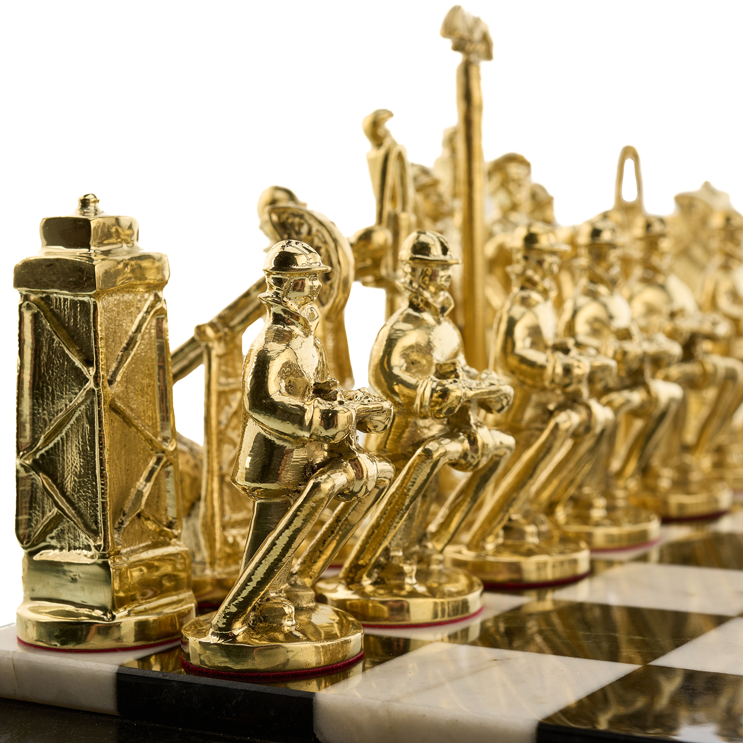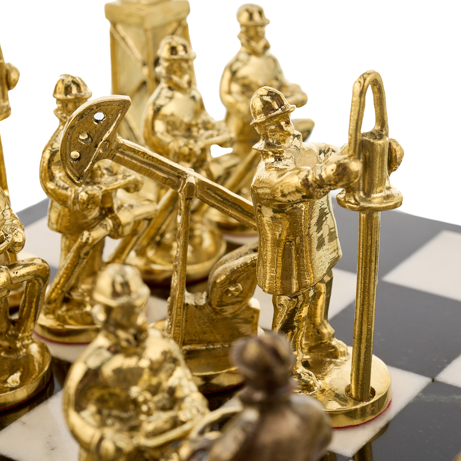 Шахматы из камня с бронзовыми фигурами "Нефтяники" 38х38 см