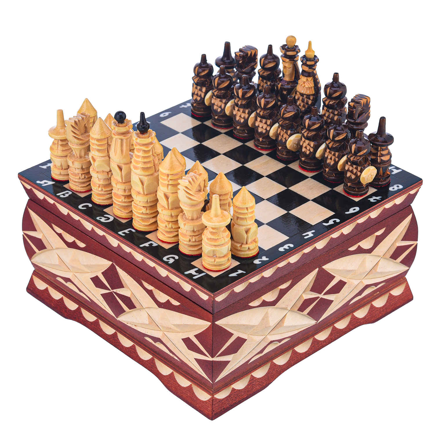 Шахматы деревянные в ларце "Резные" 19х19 см
