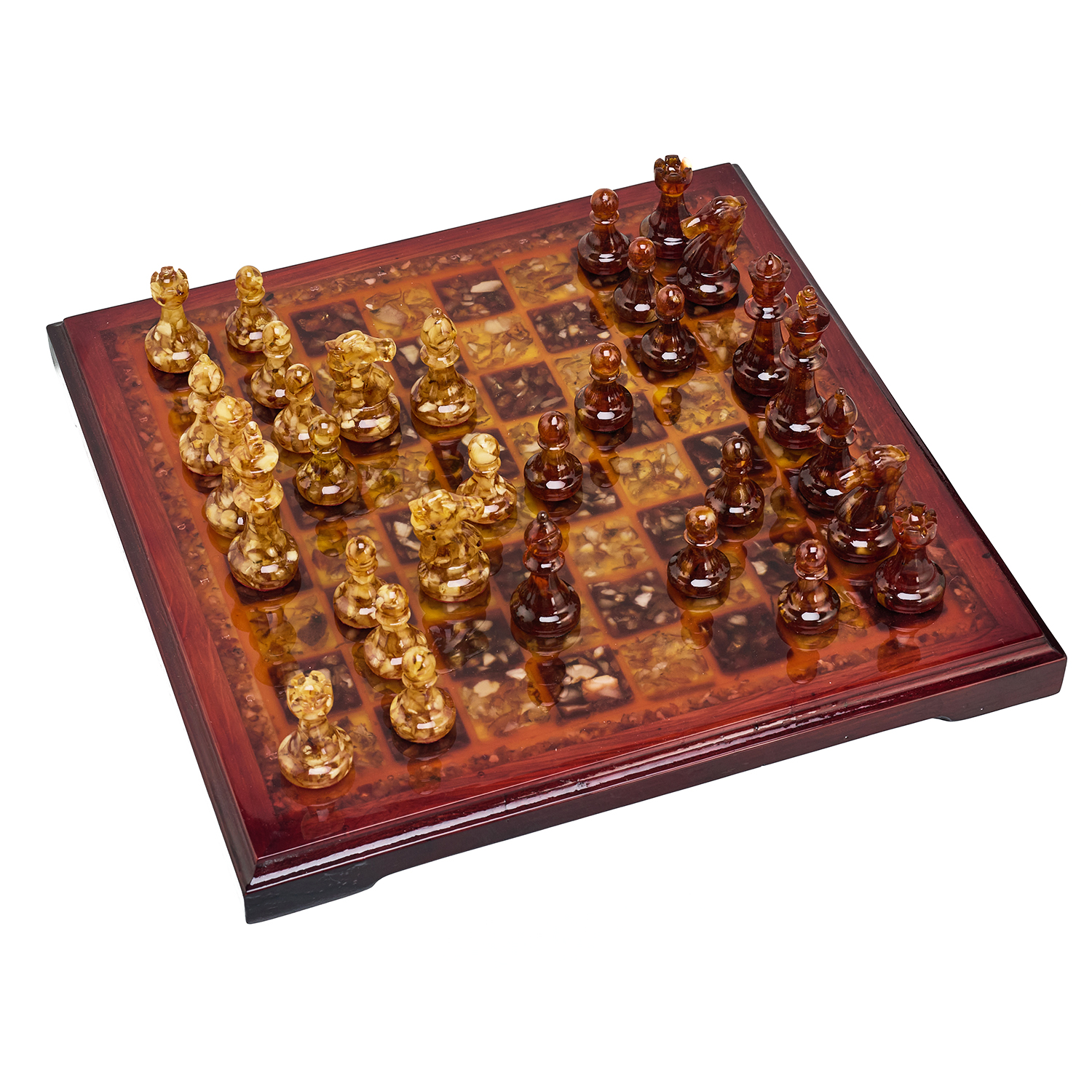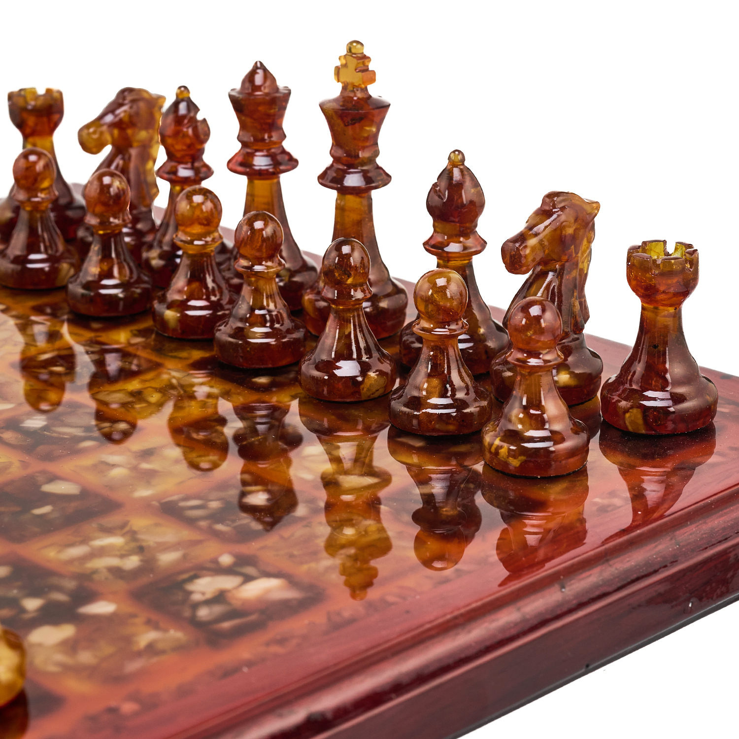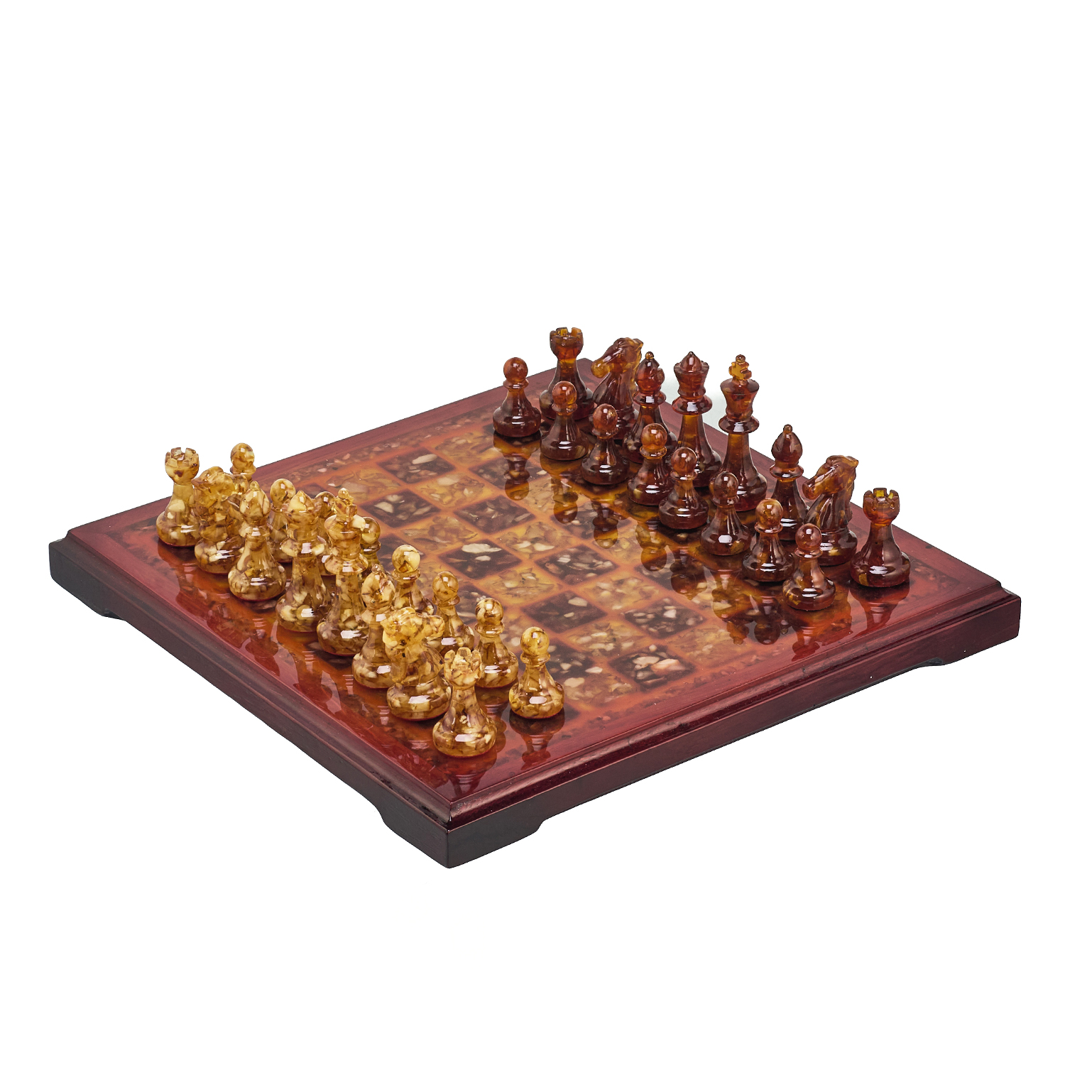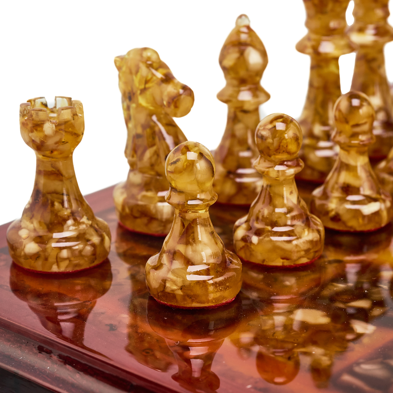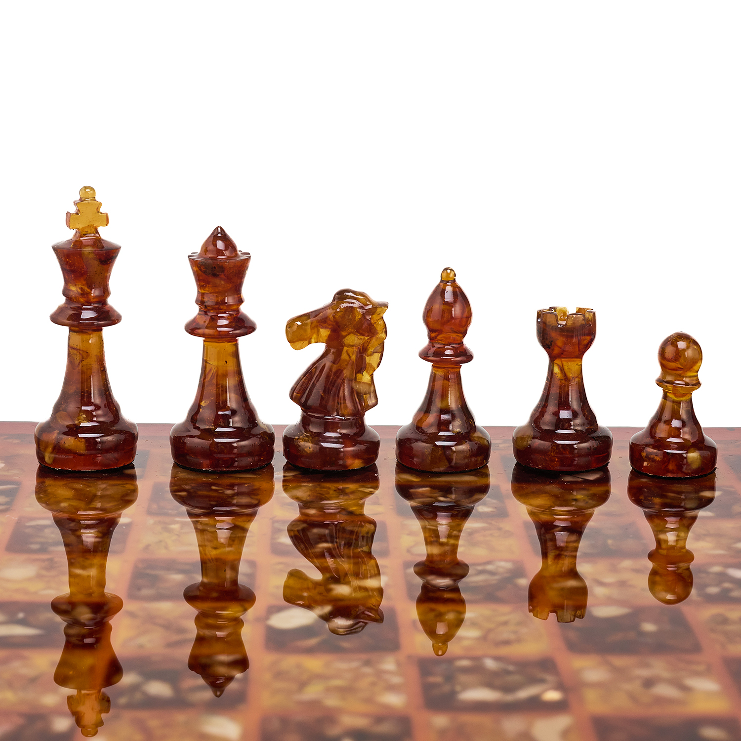 Шахматы с янтарными фигурами.Материалы: янтарь, полиэфирная смола.