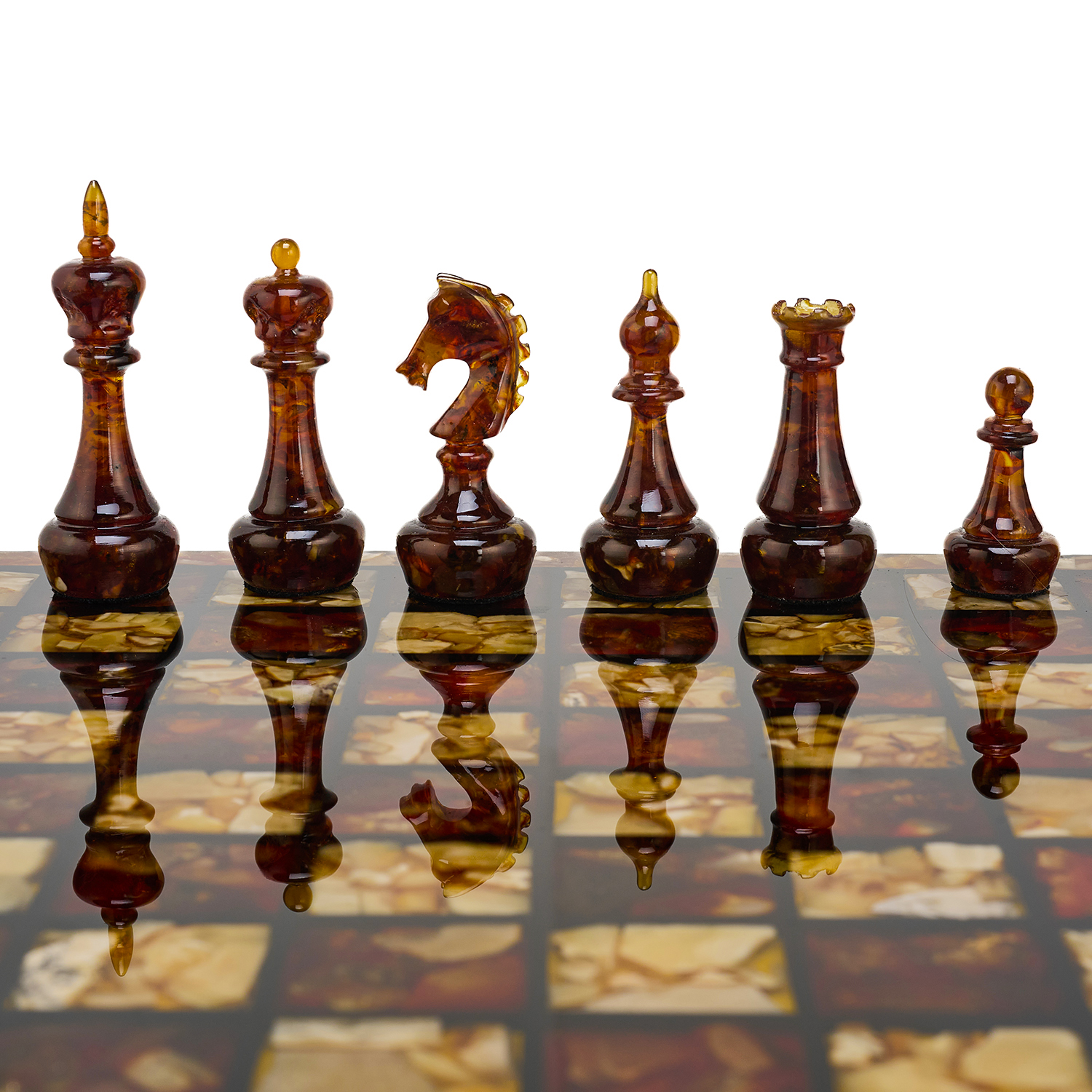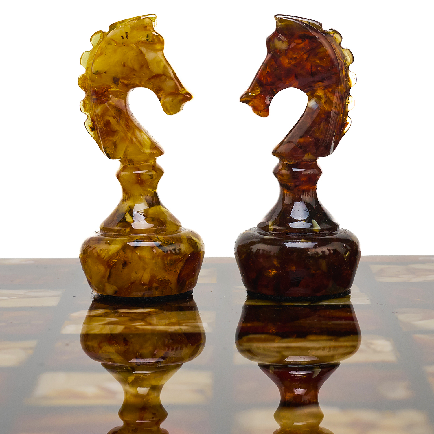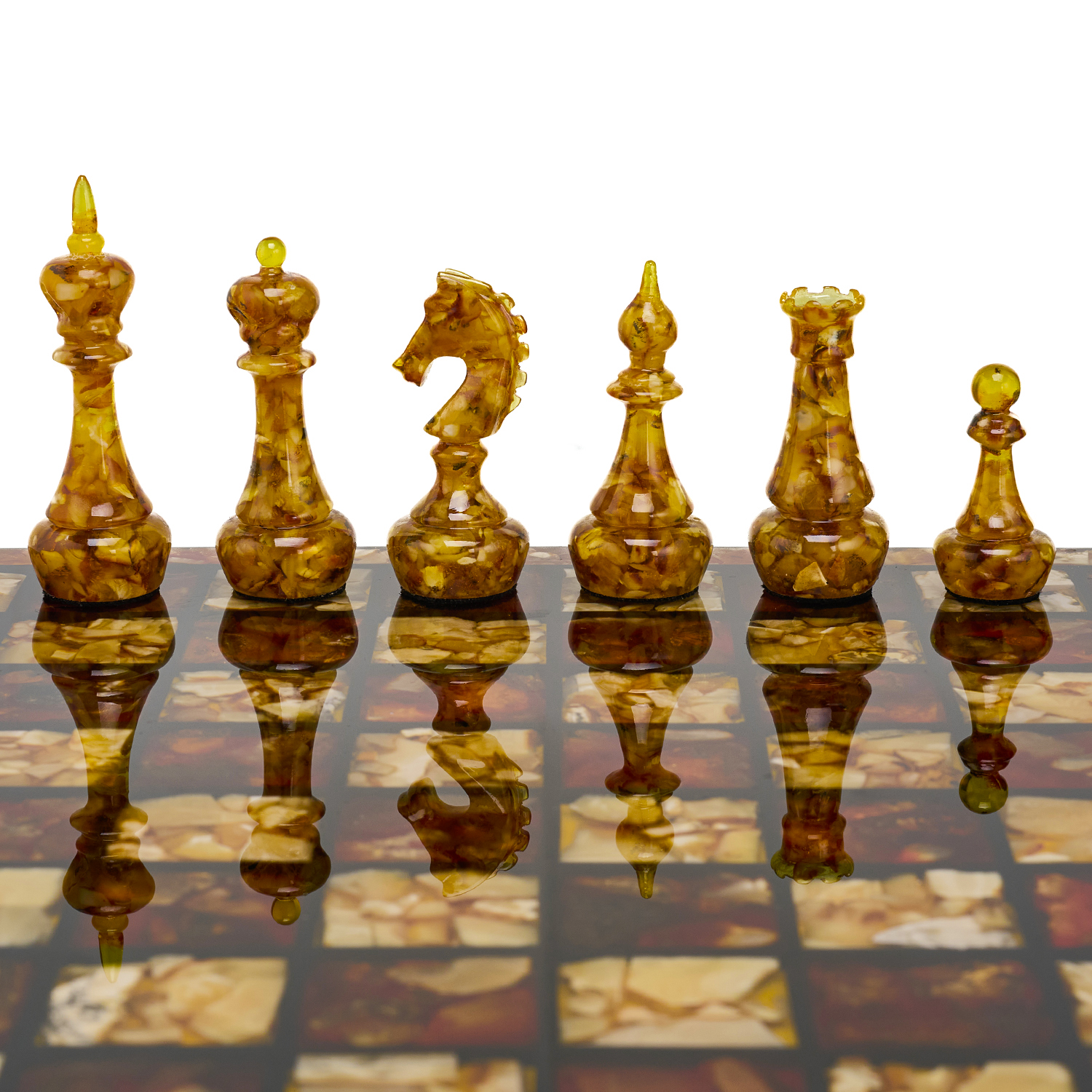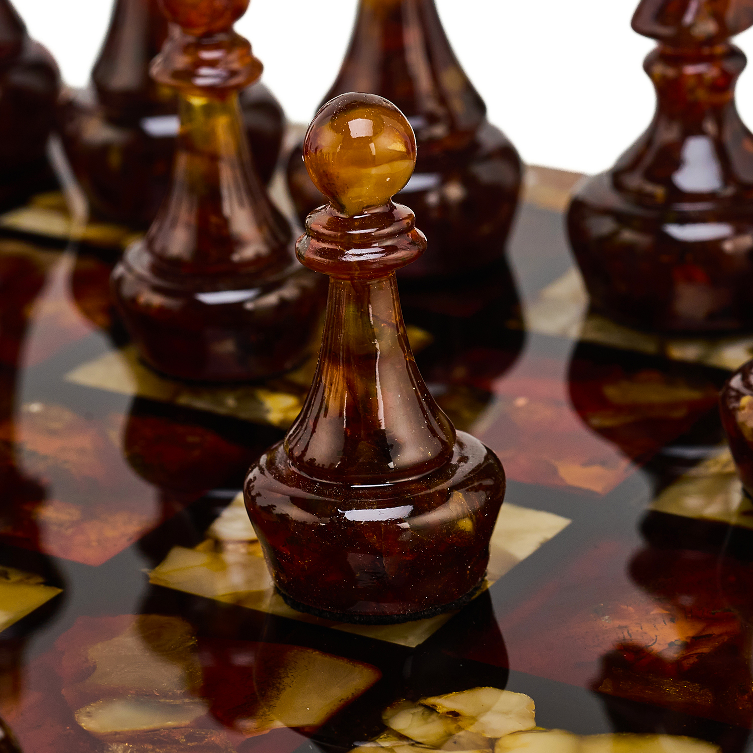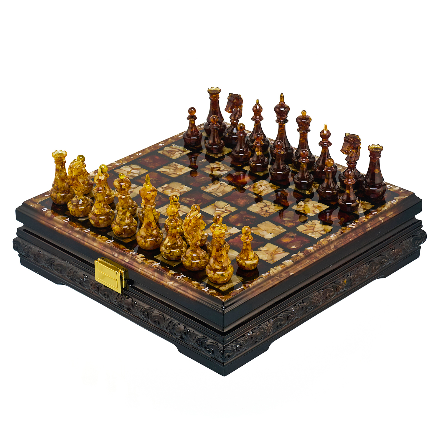 Шахматы с инкрустацией и фигурами из янтаря 30х30 см