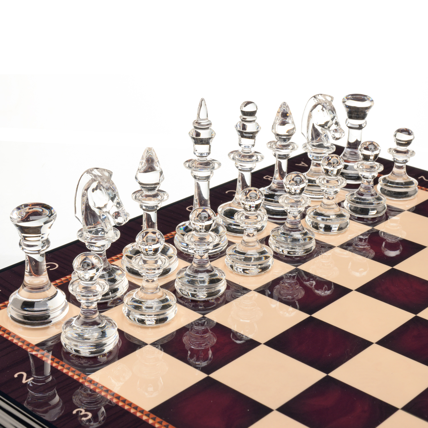Шахматный ларец с хрустальными фигурами 47х47 см