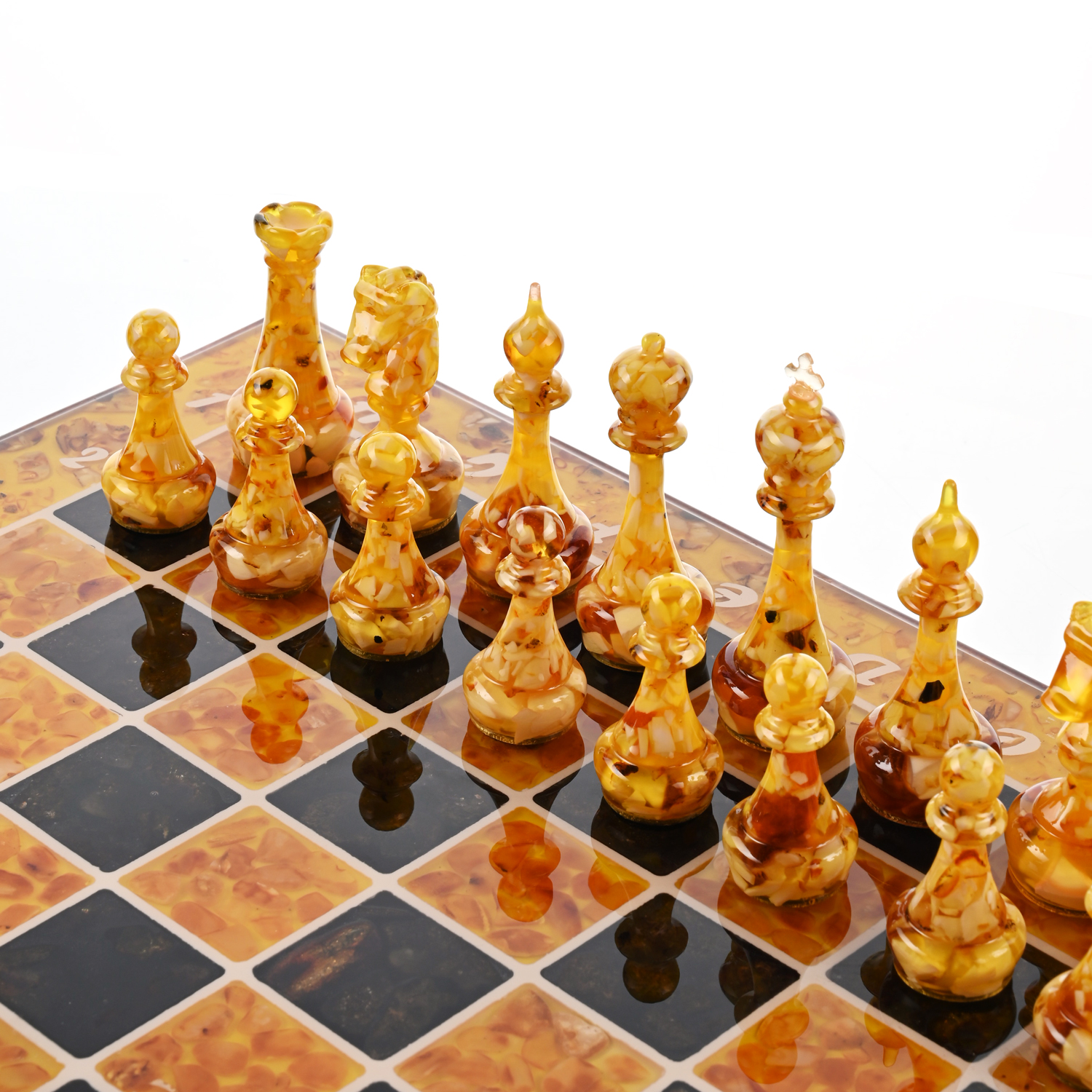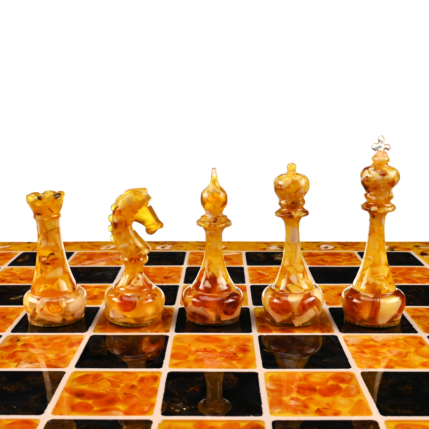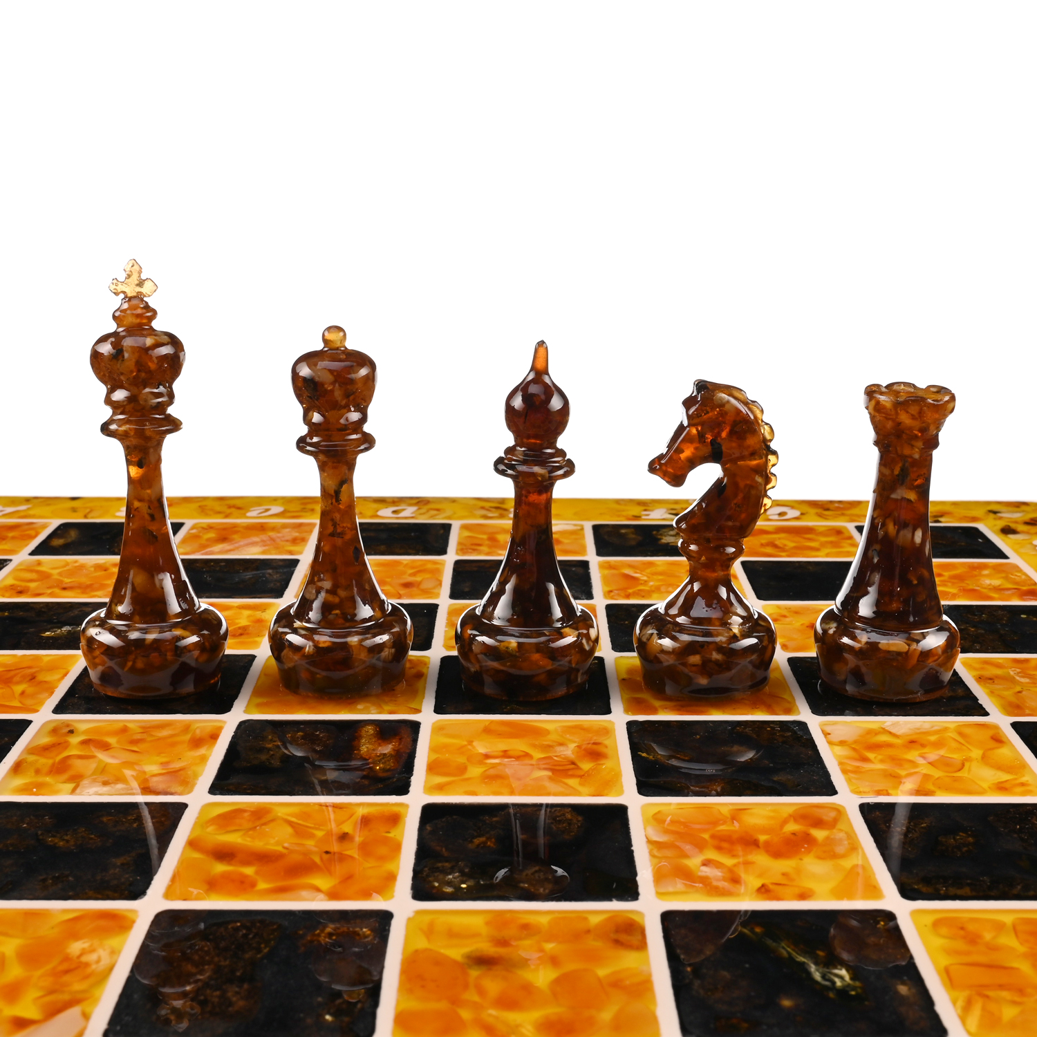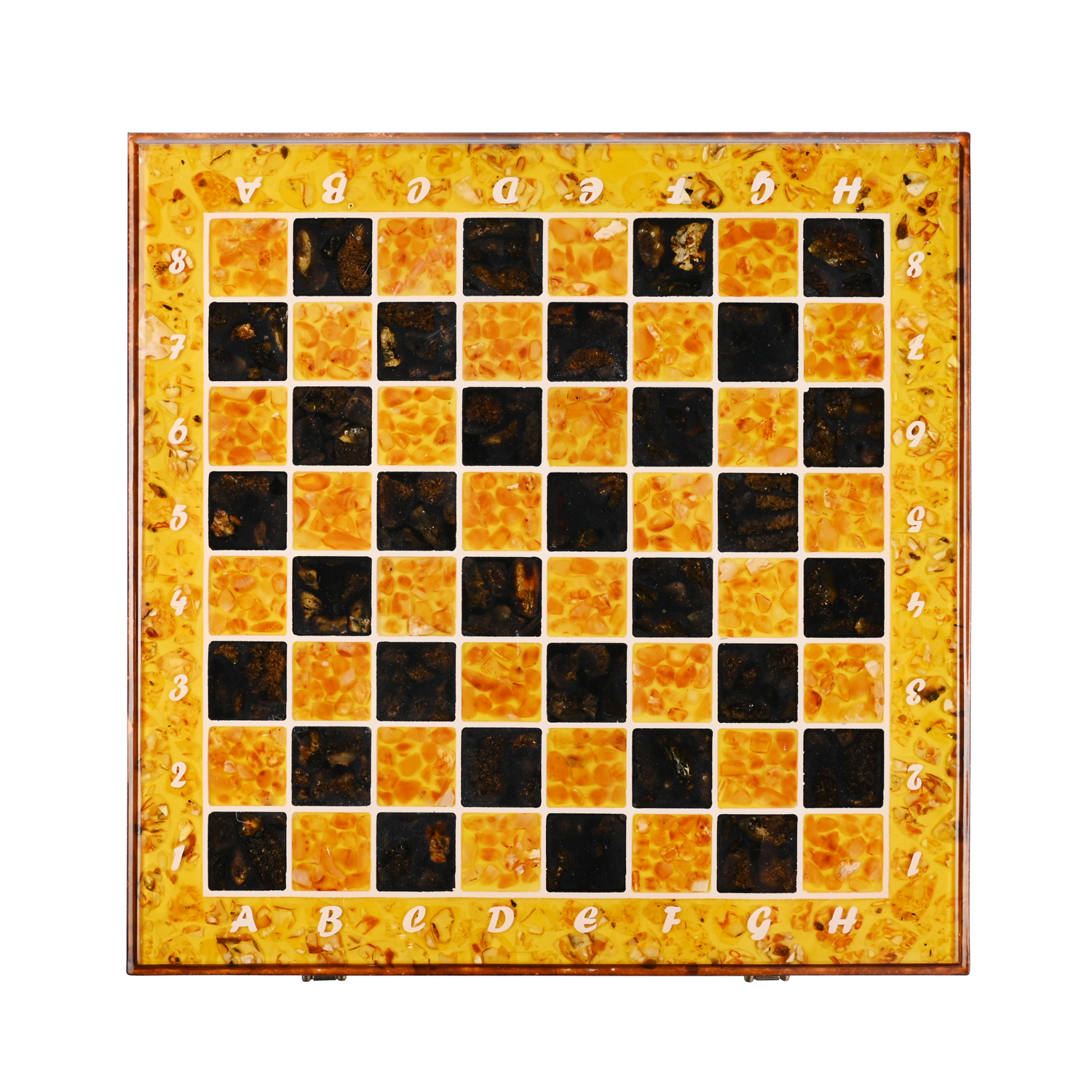 Шахматы с инкрустацией и фигурами из янтаря "Бриз" 42х42 см