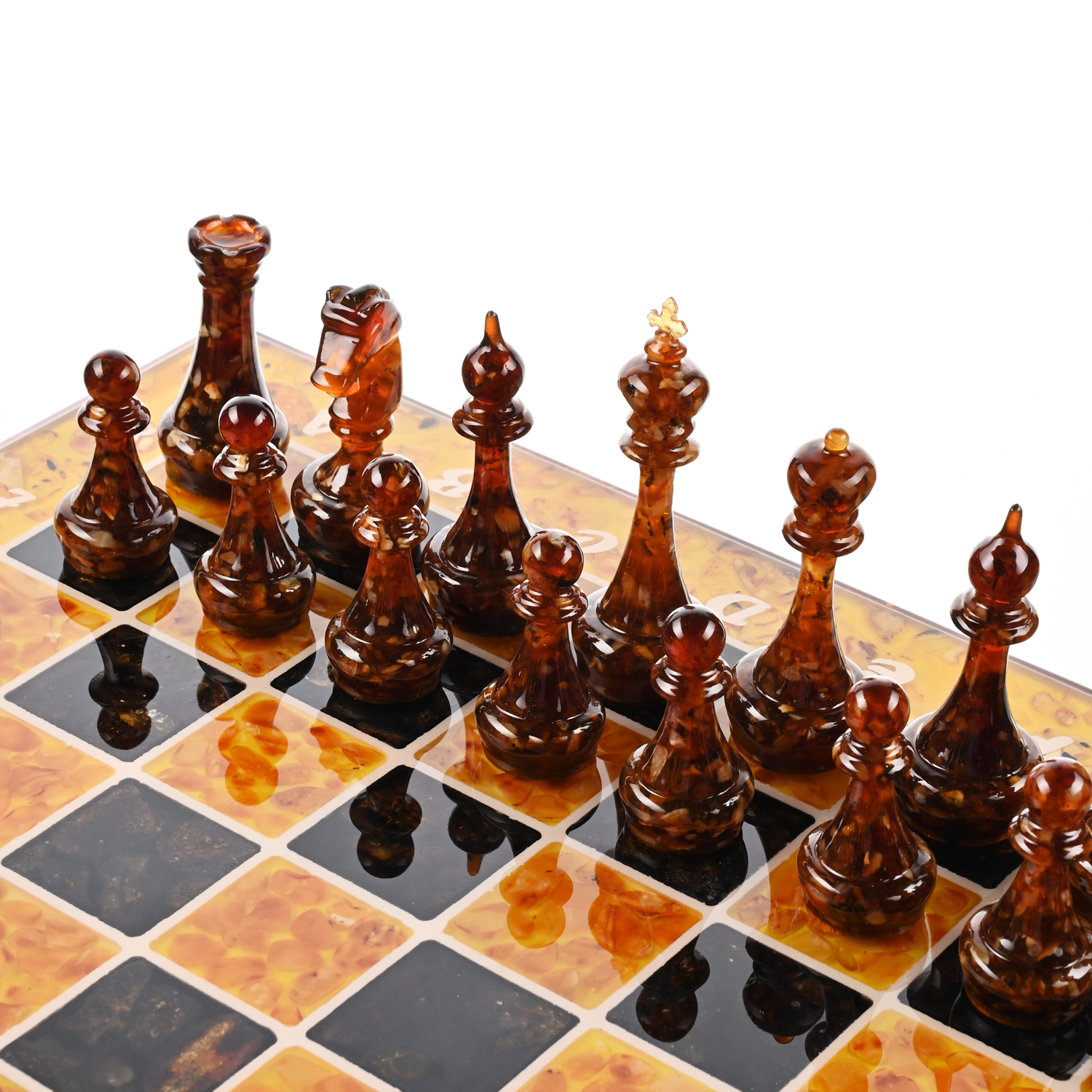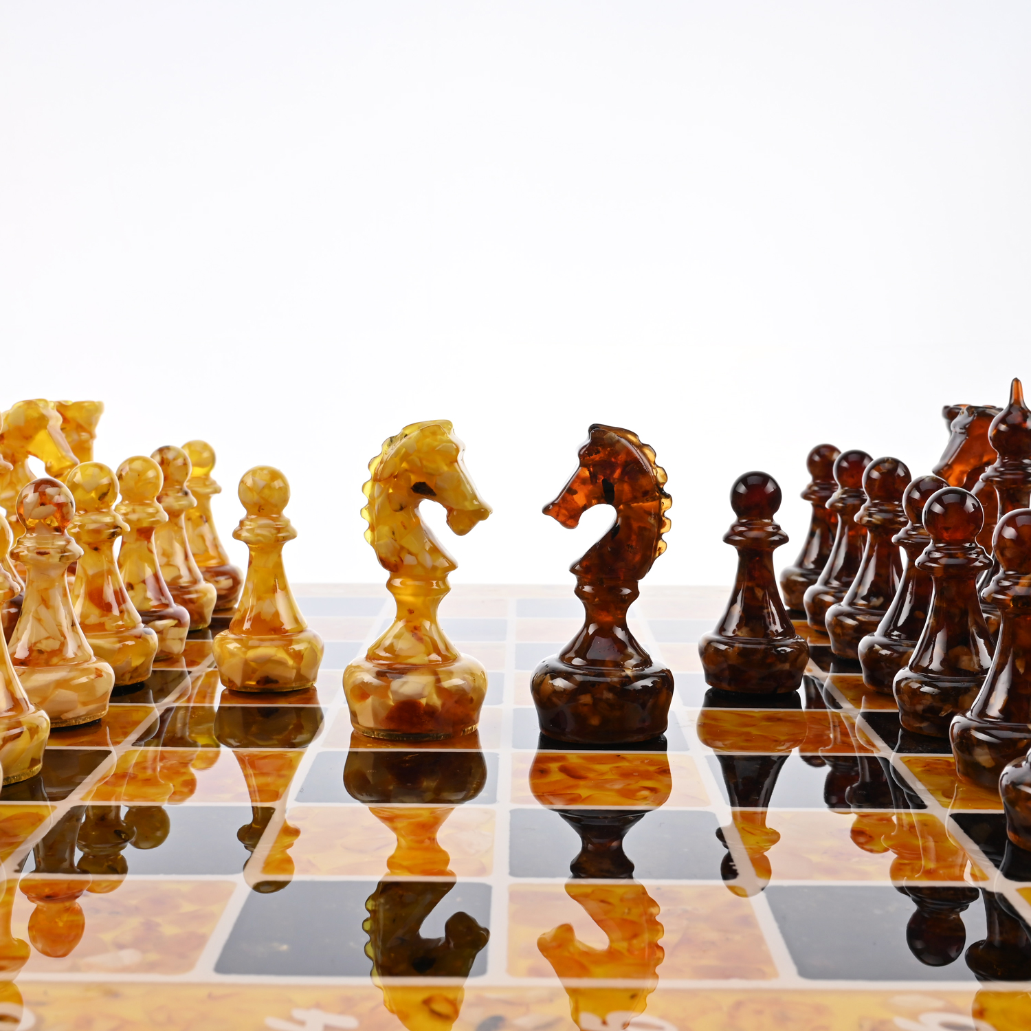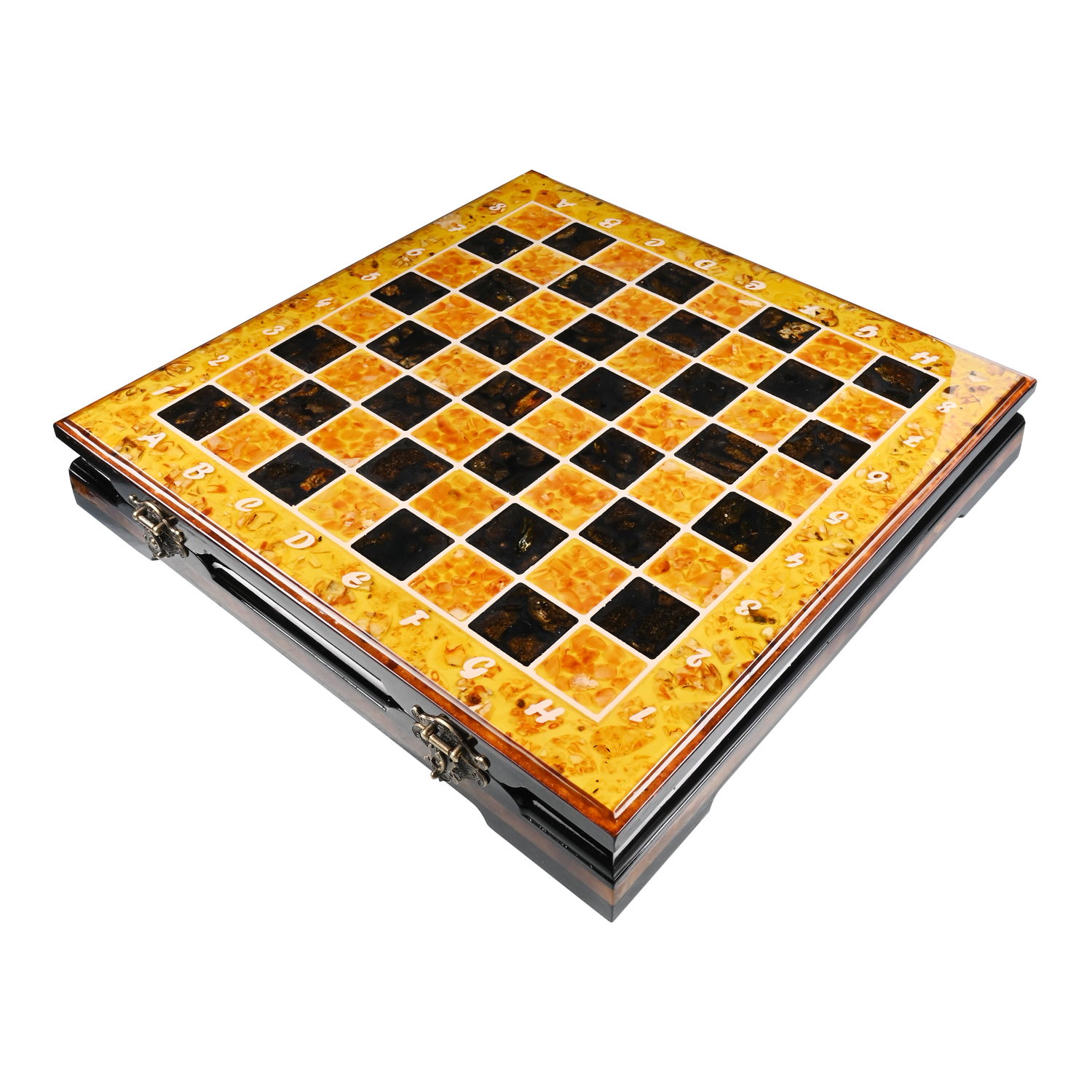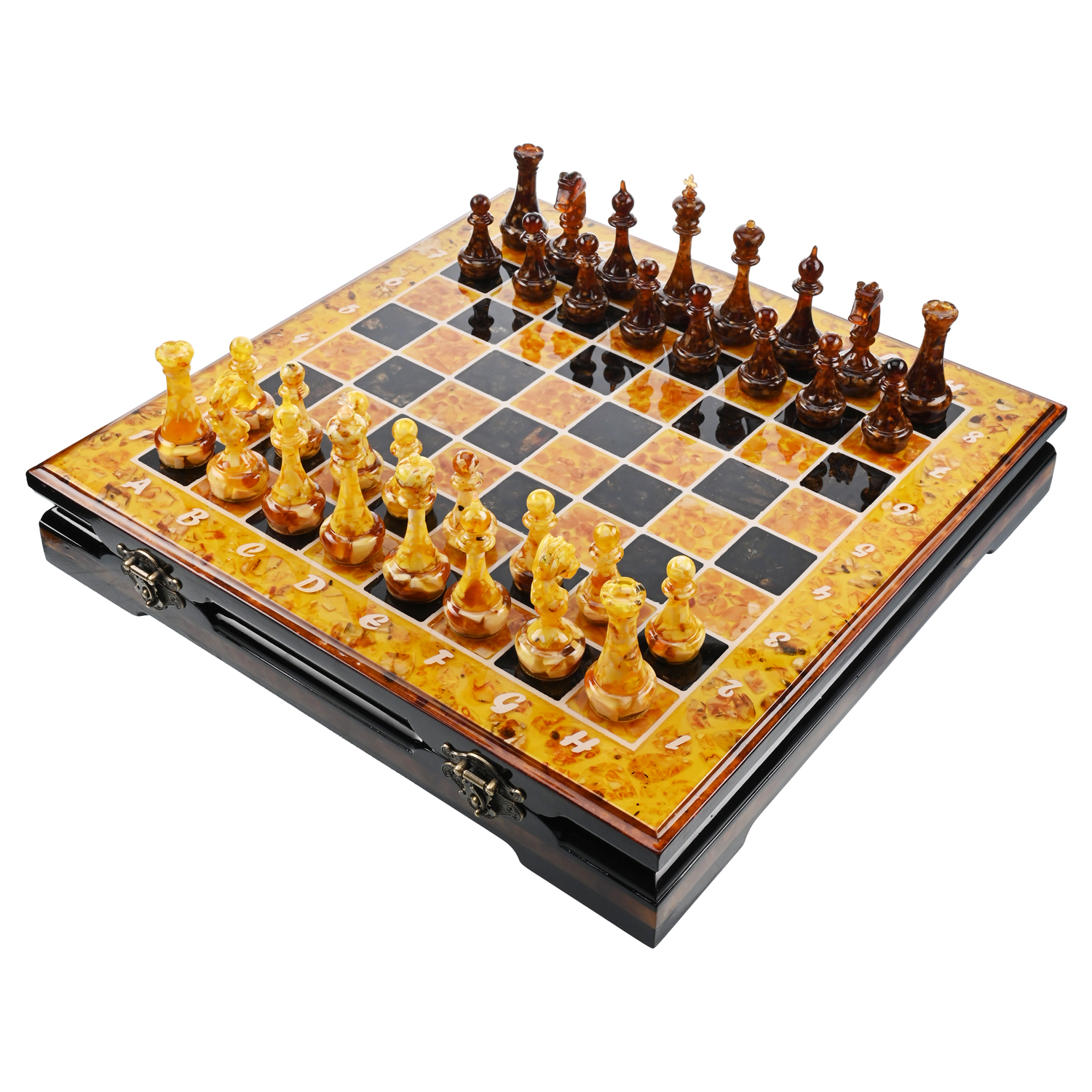 Шахматы с инкрустацией и фигурами из янтаря "Бриз" 42х42 см