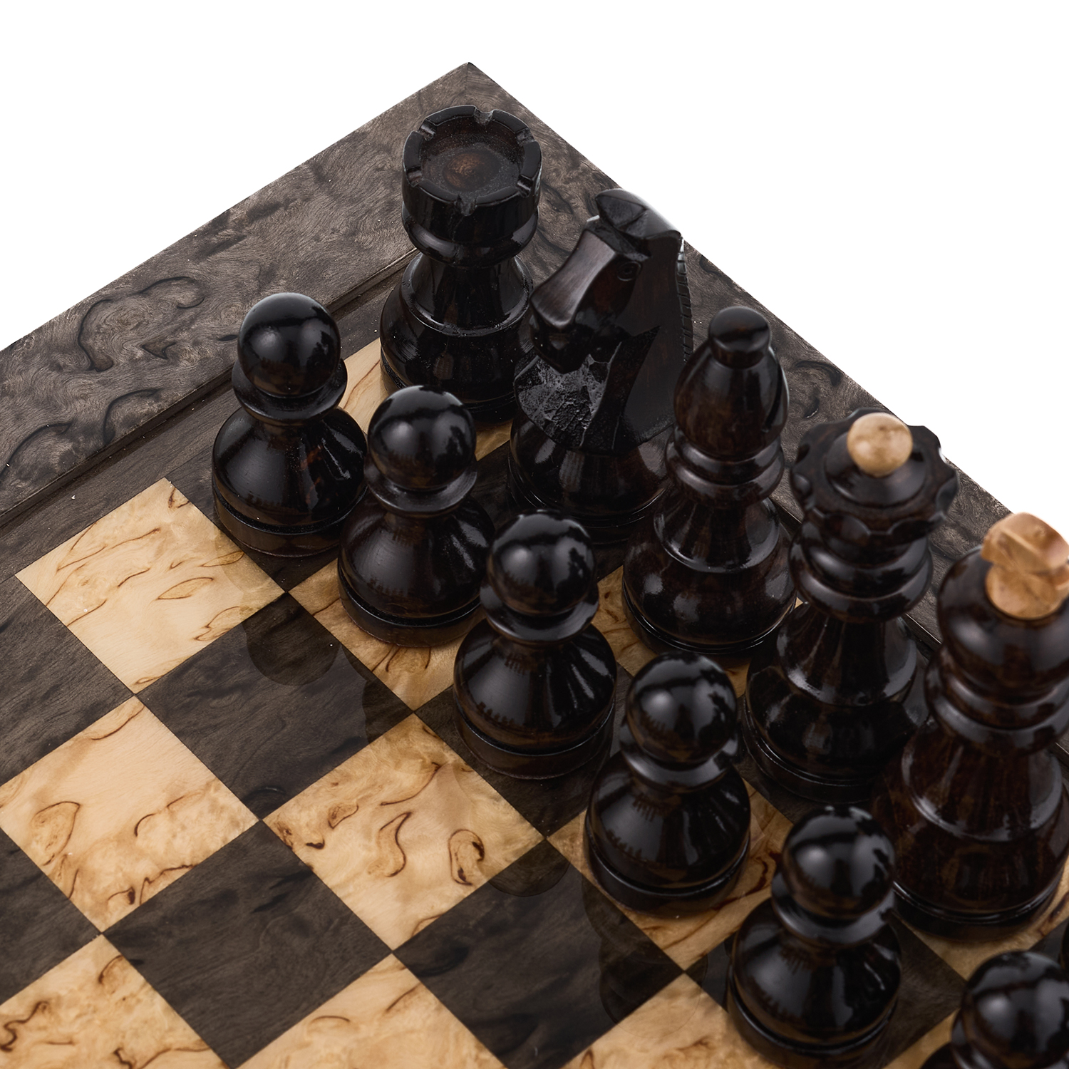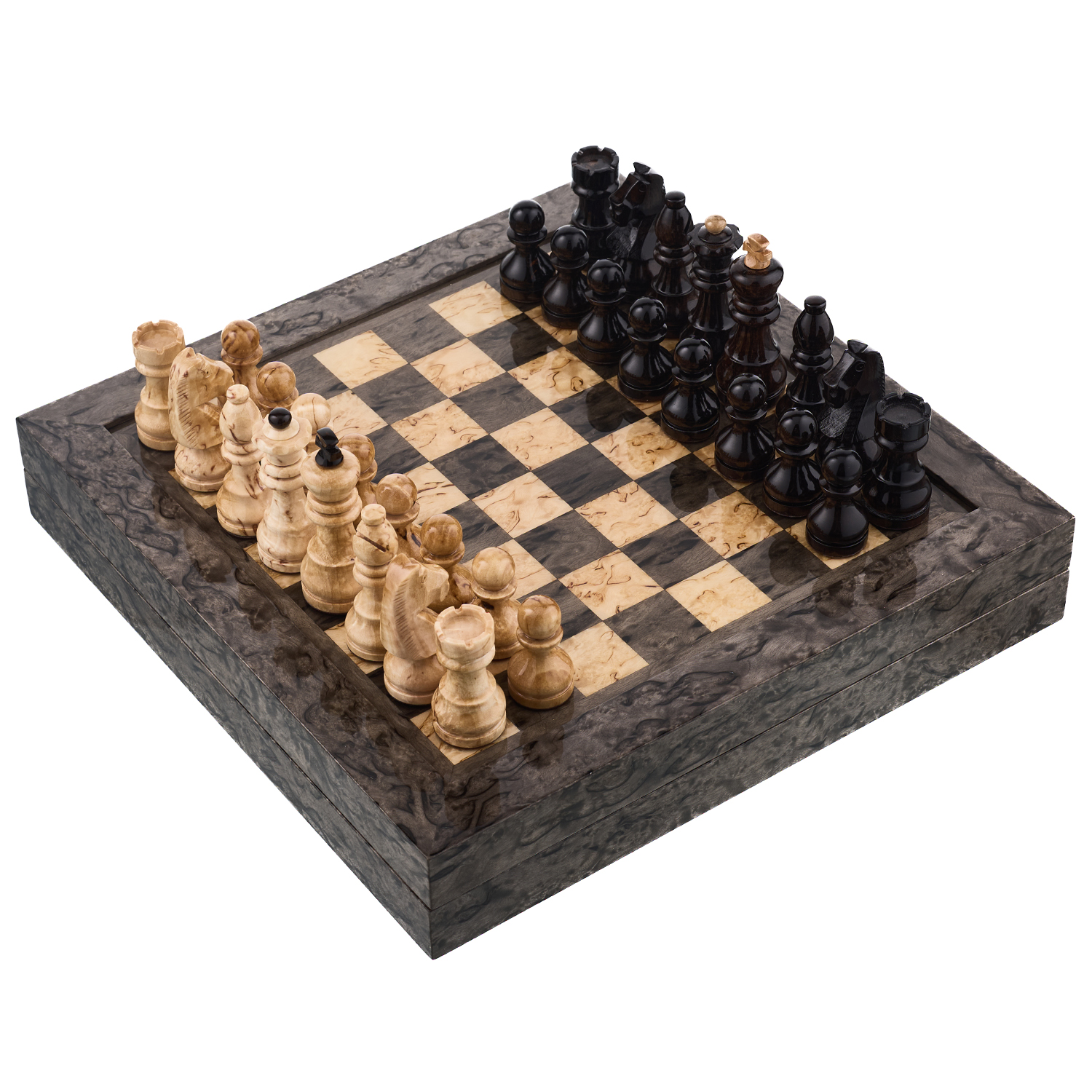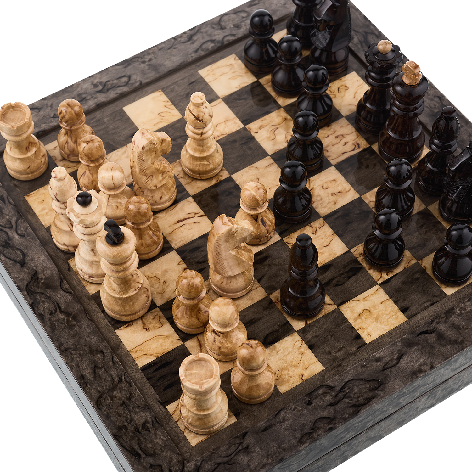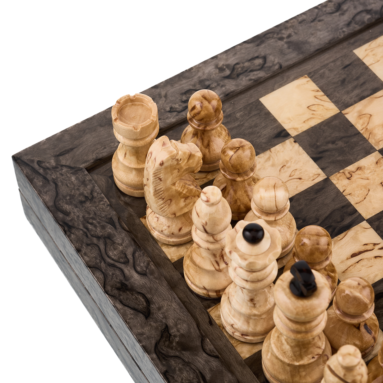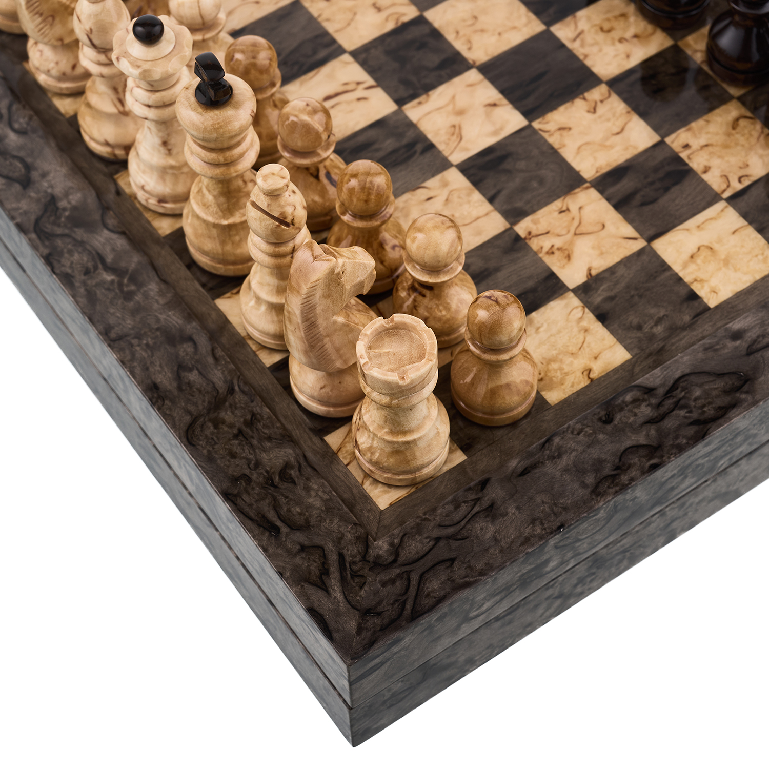 Шахматы магнитные из карельской березы "Дорожные" 25х25 см