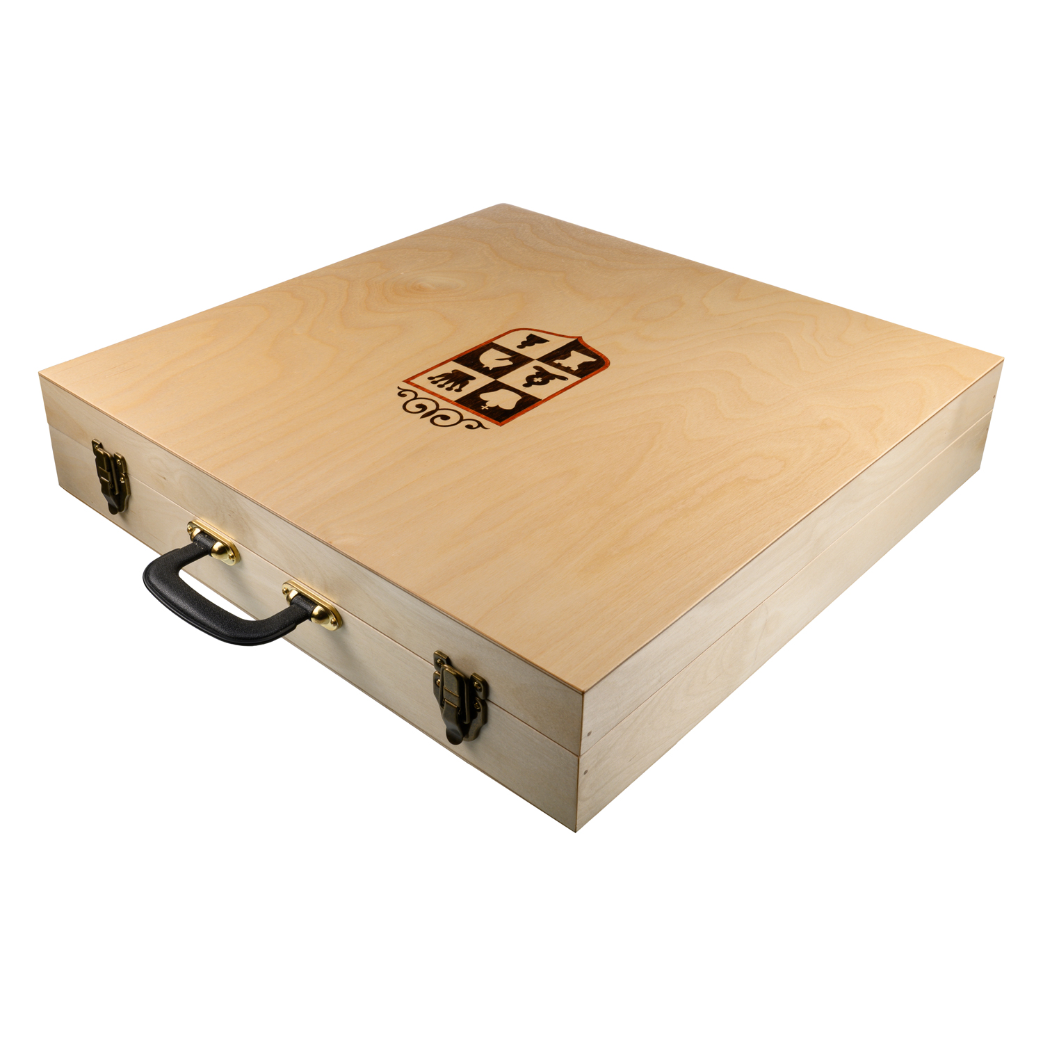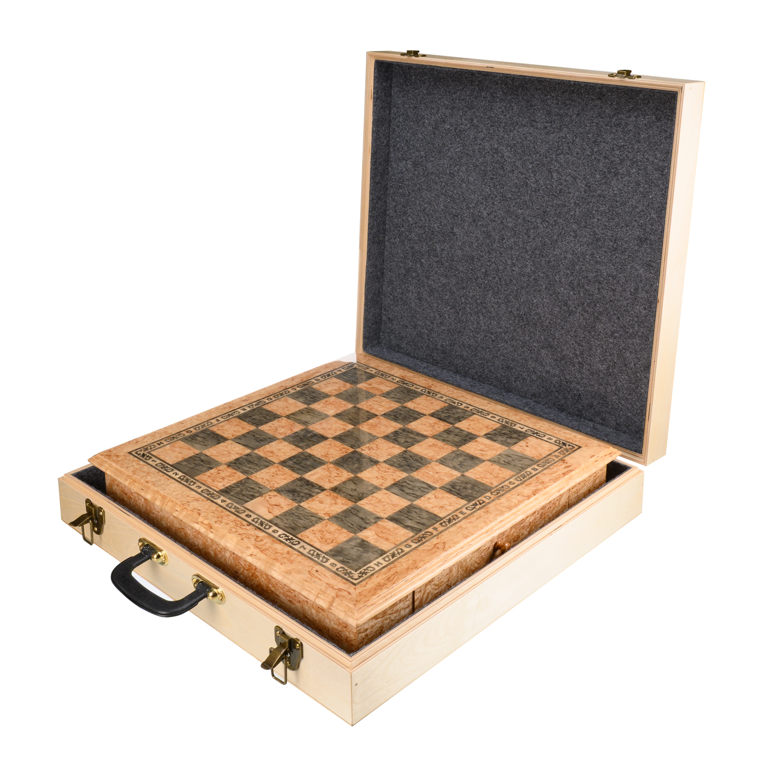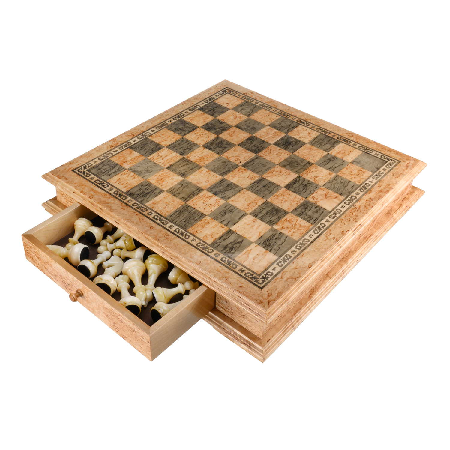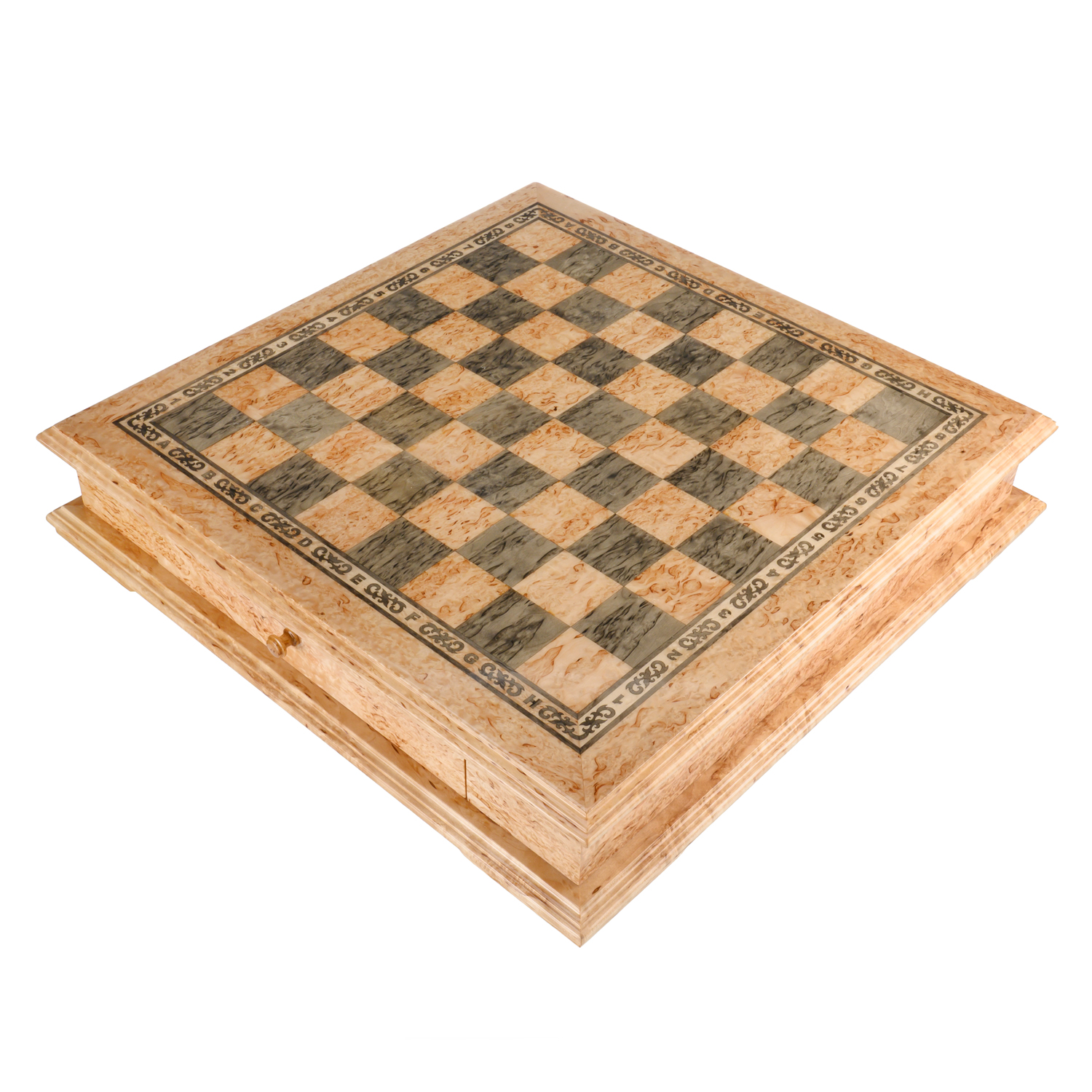 Шахматы из карельской березы с янтарными фигурами 47х47 см