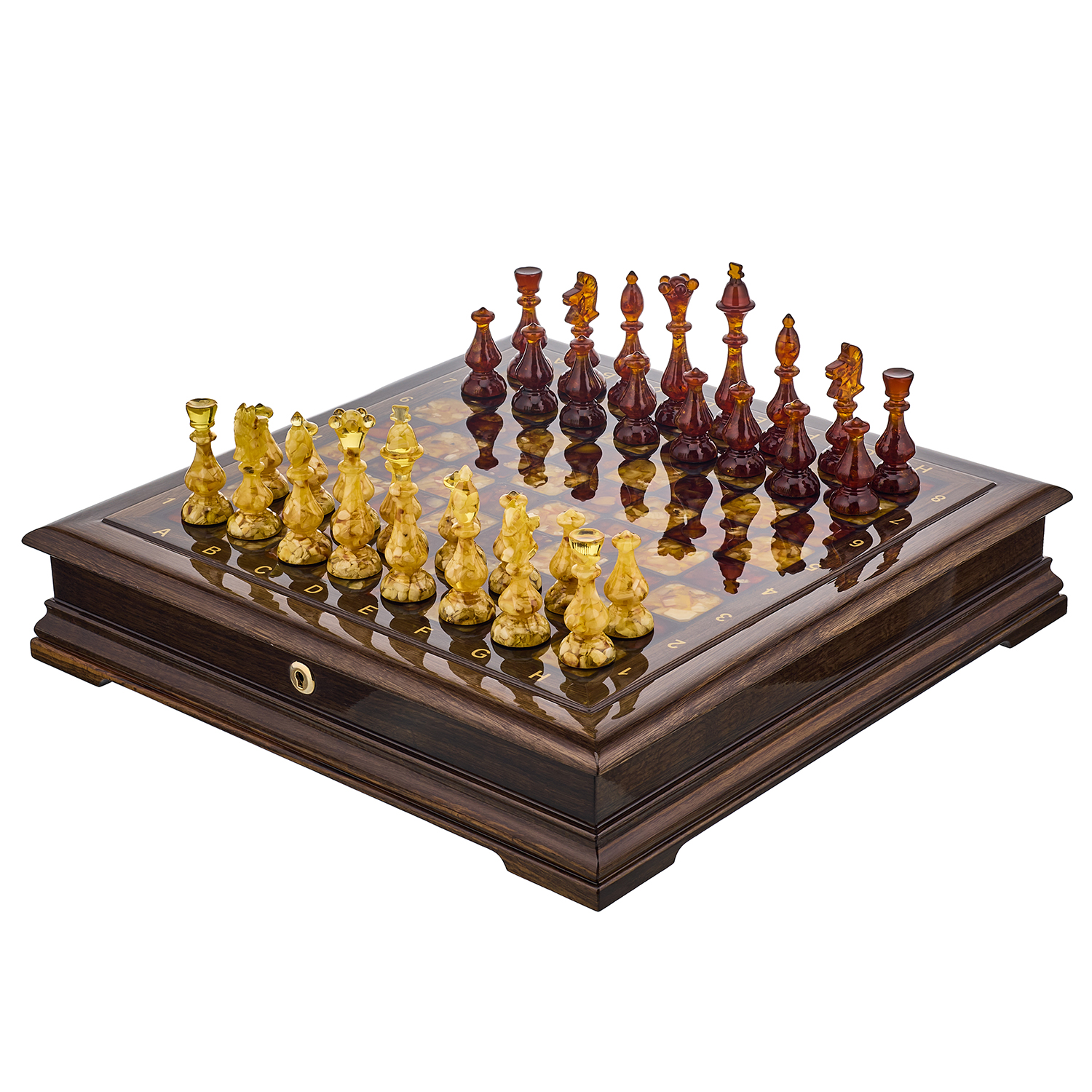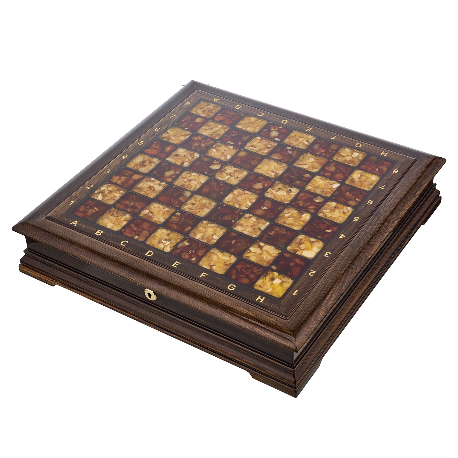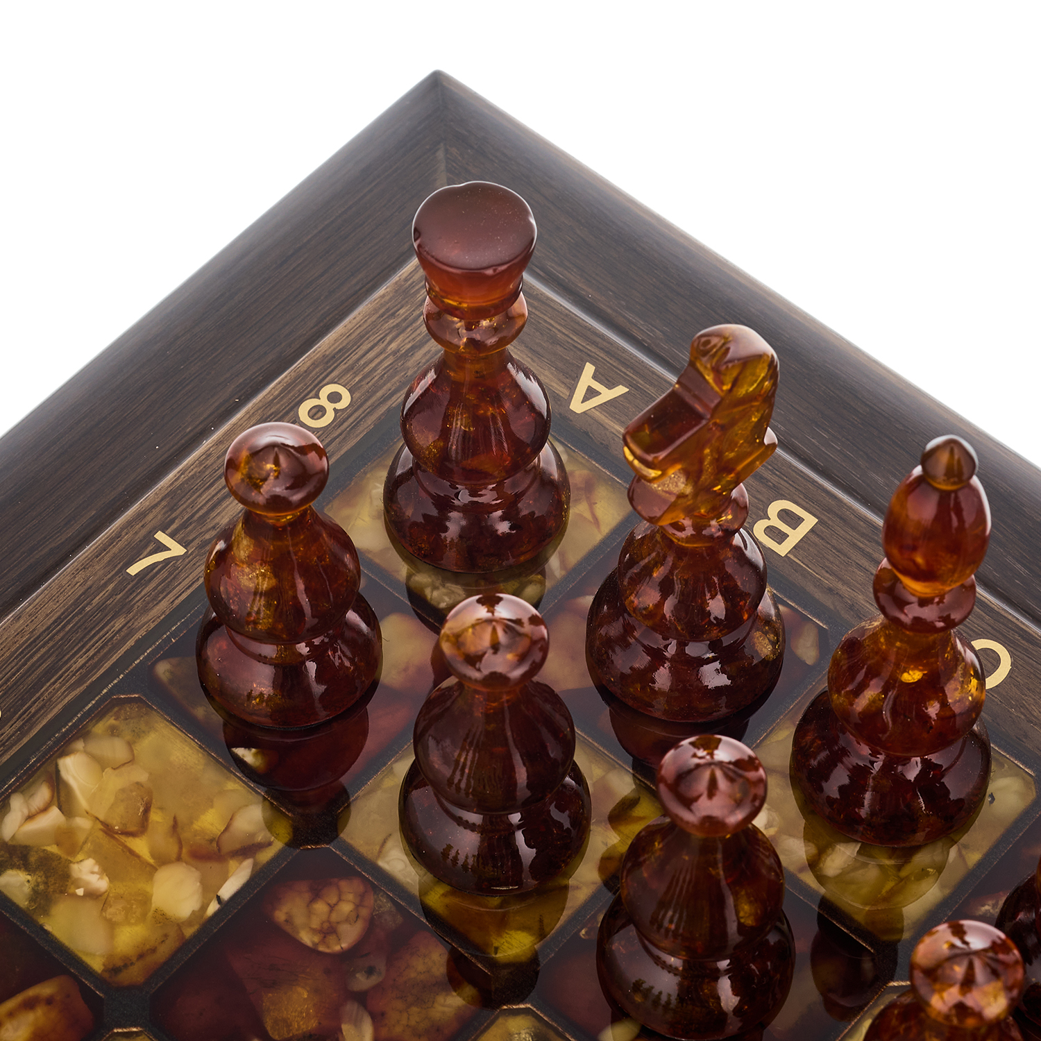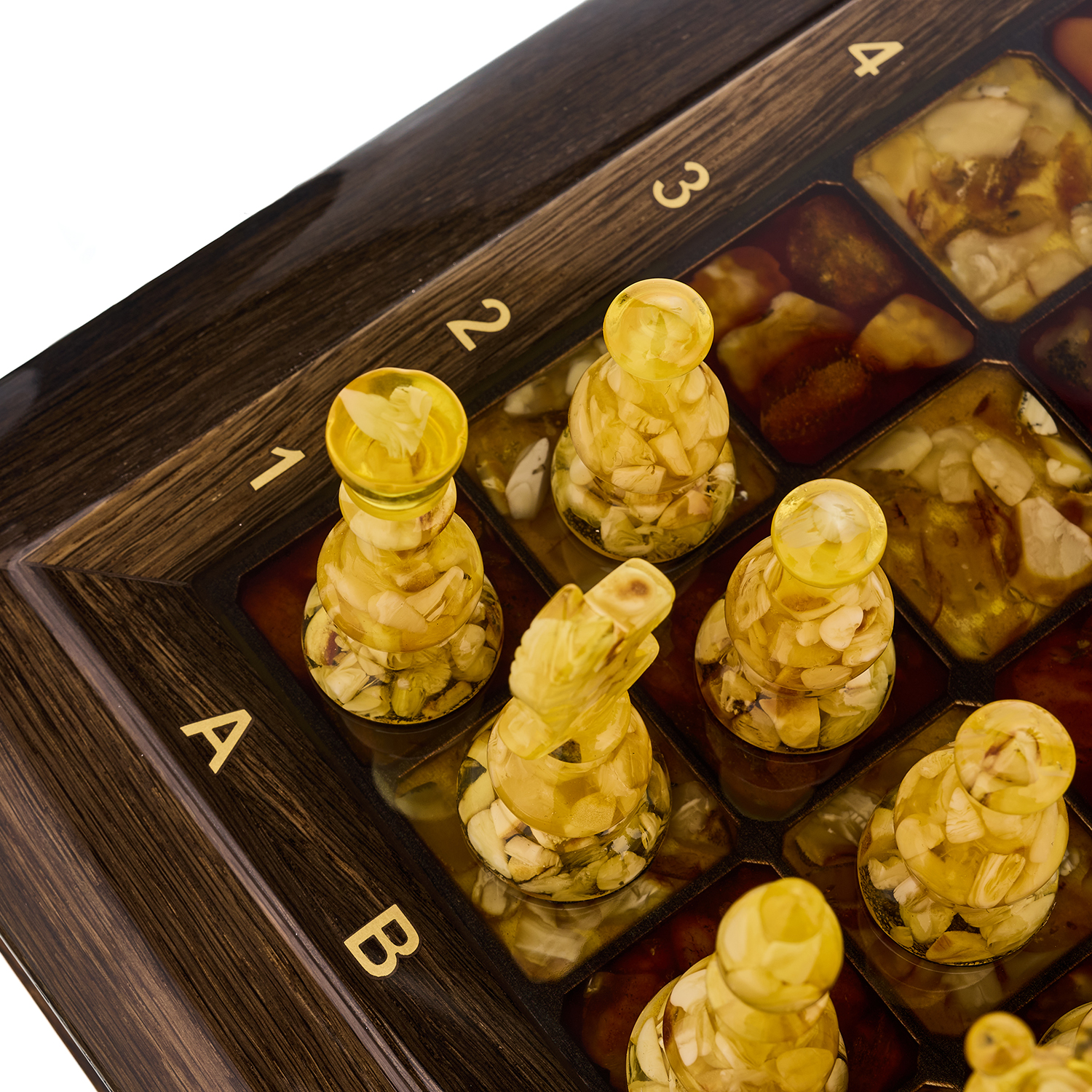 Шахматы из мореного дуба с янтарными фигурами 45х45 см