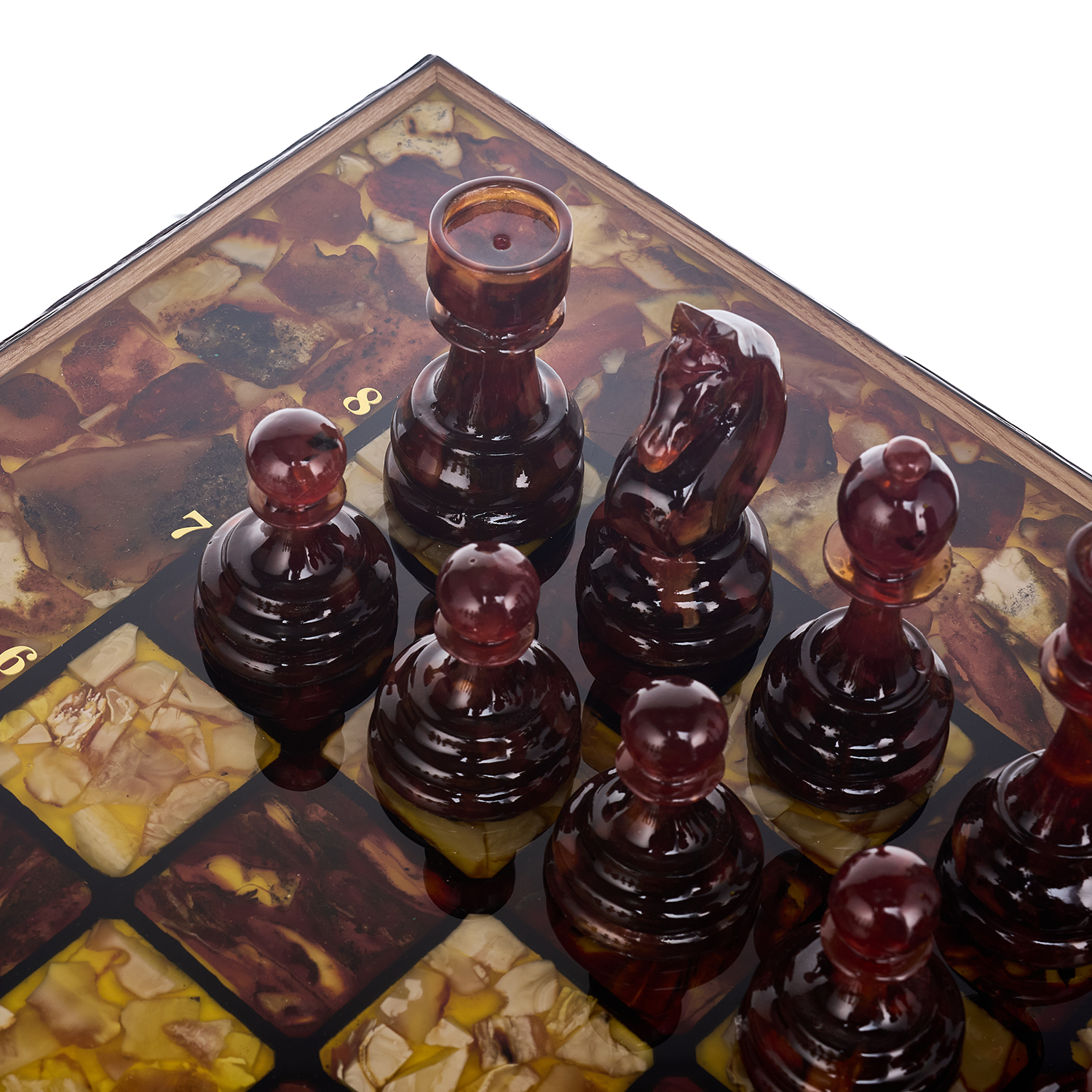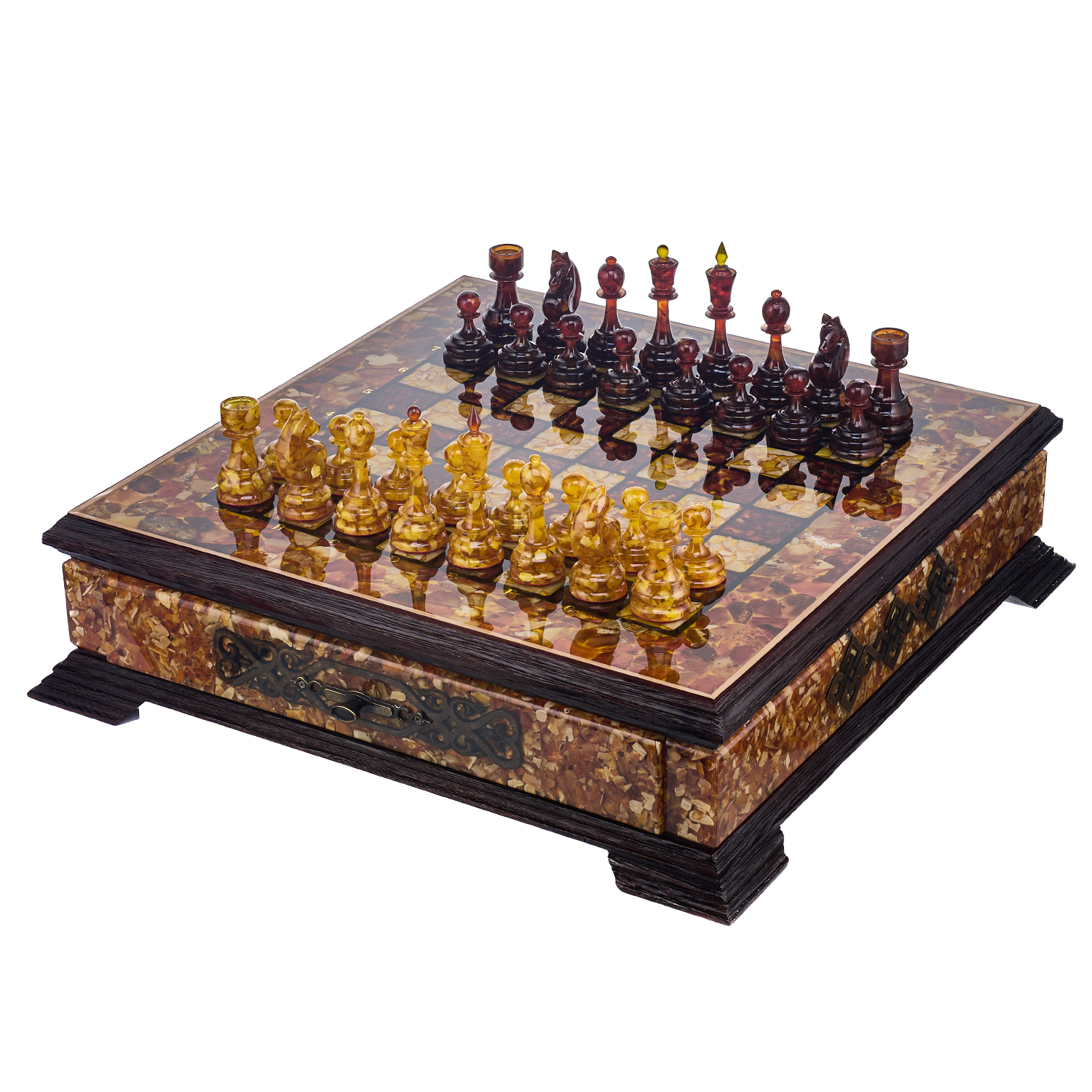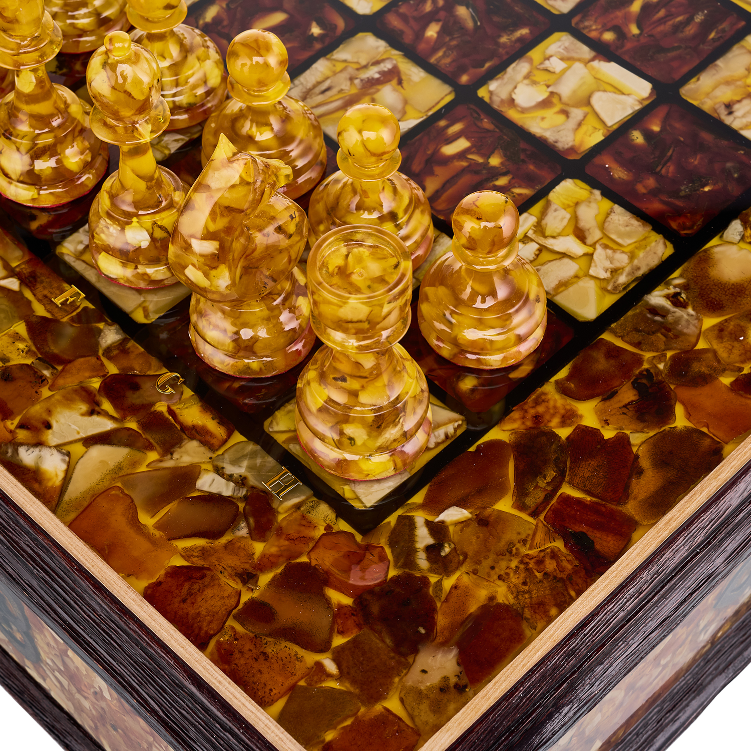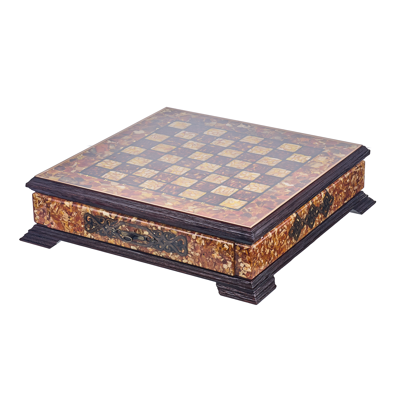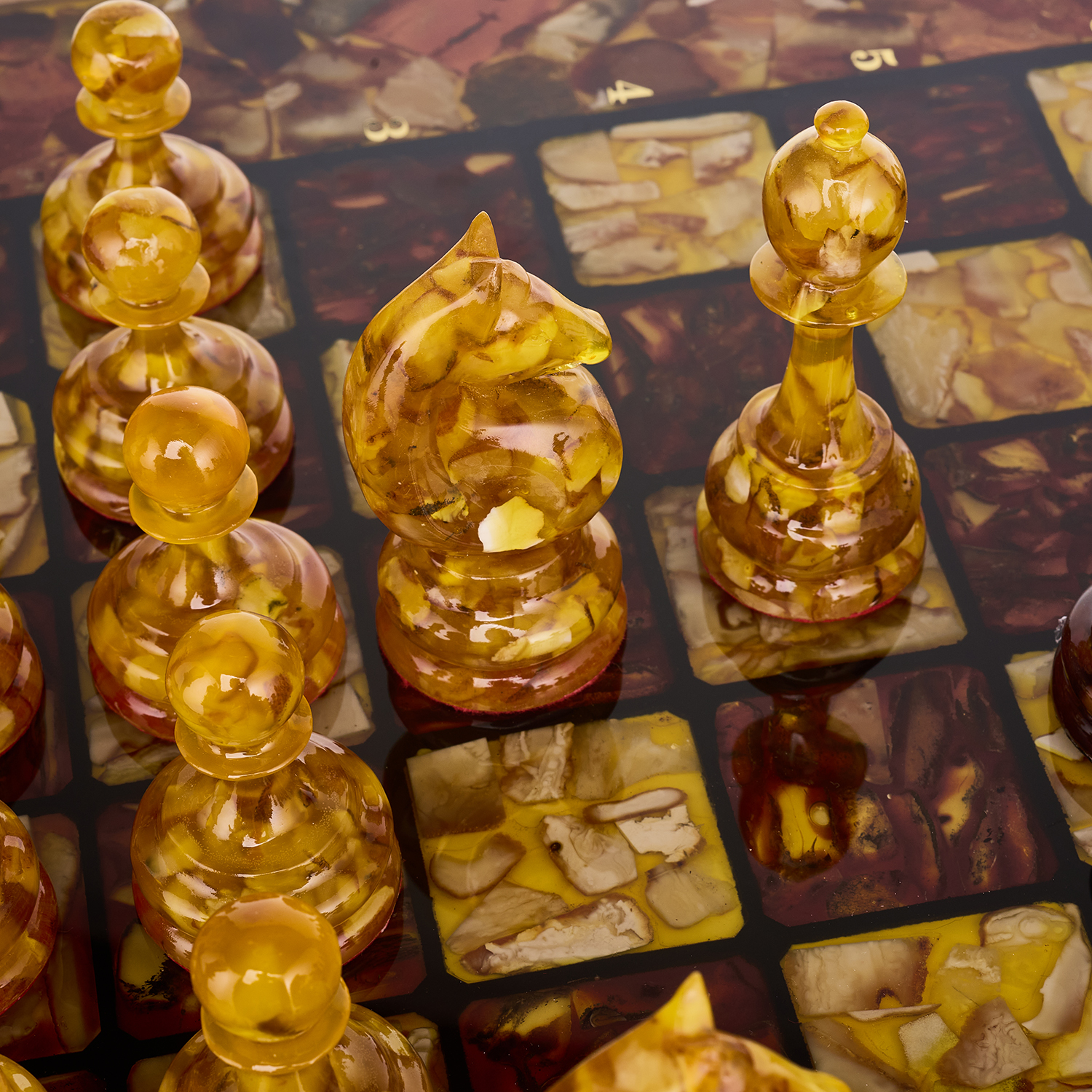 Шахматы с инкрустацией и фигурами из янтаря 60х60 см