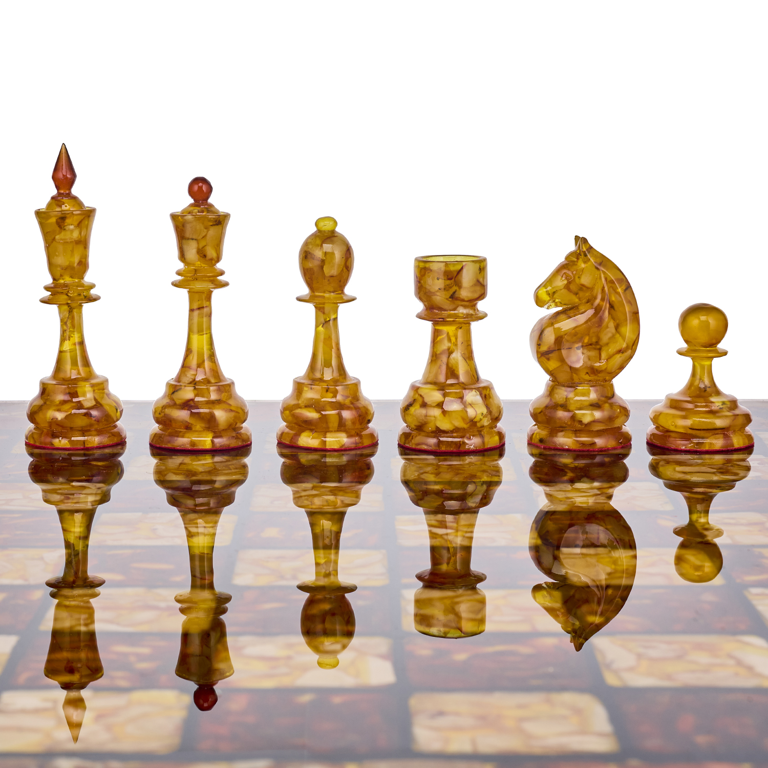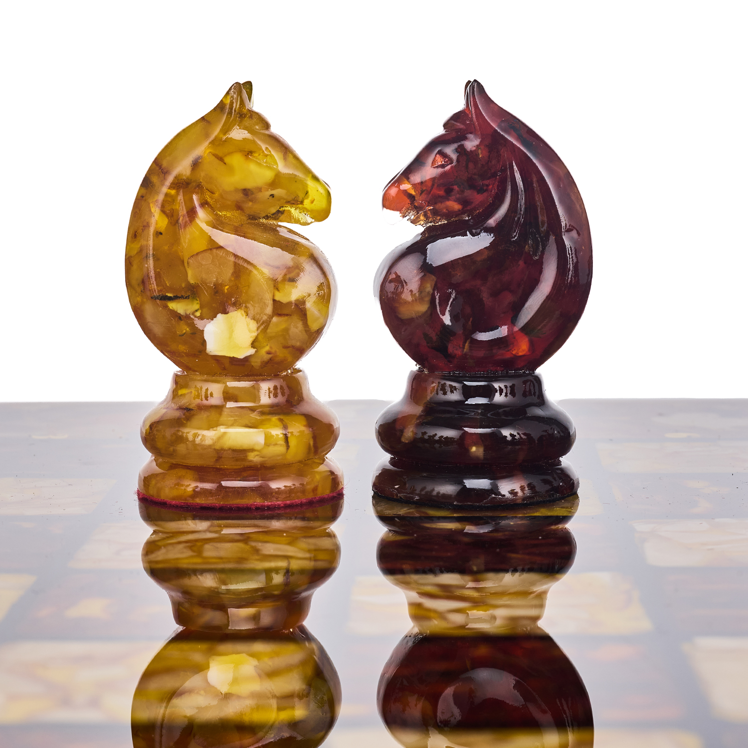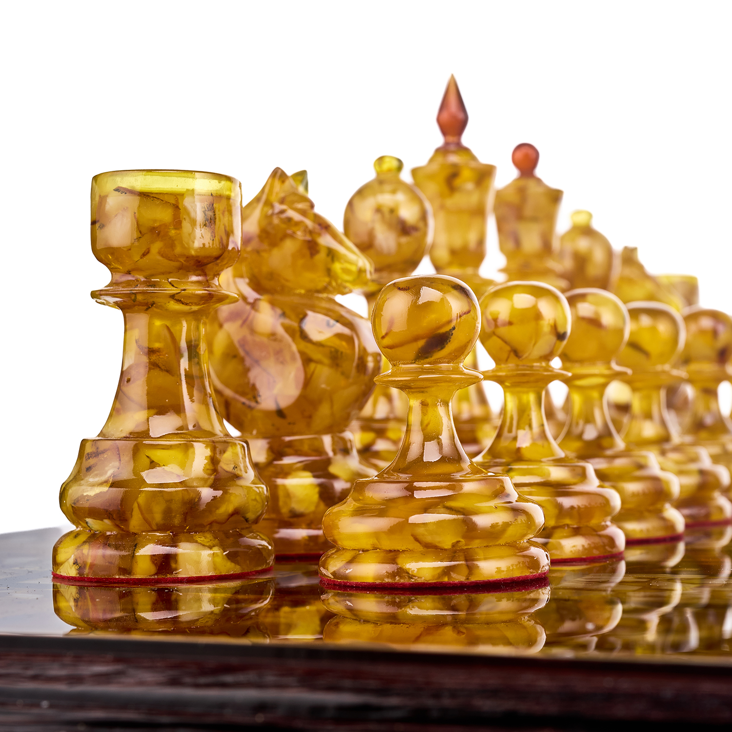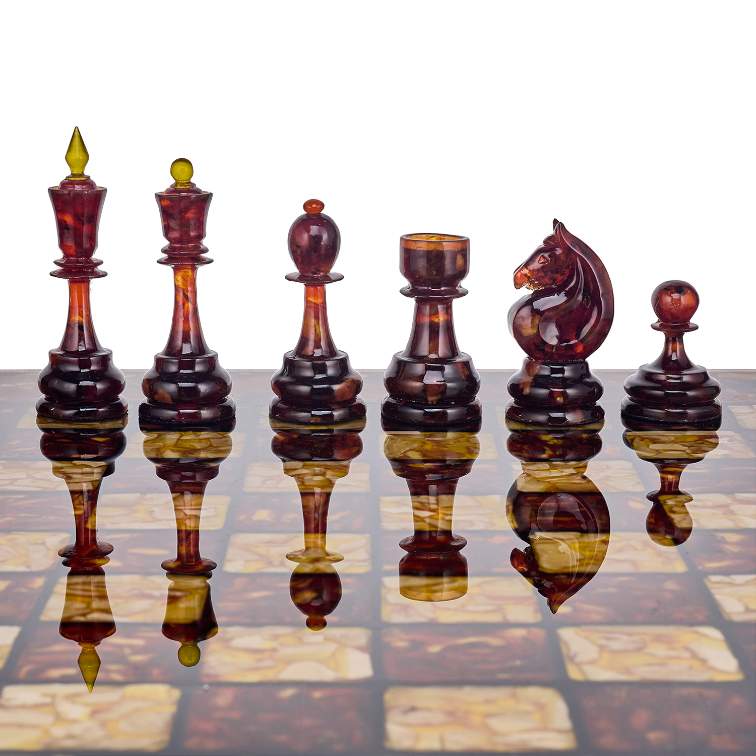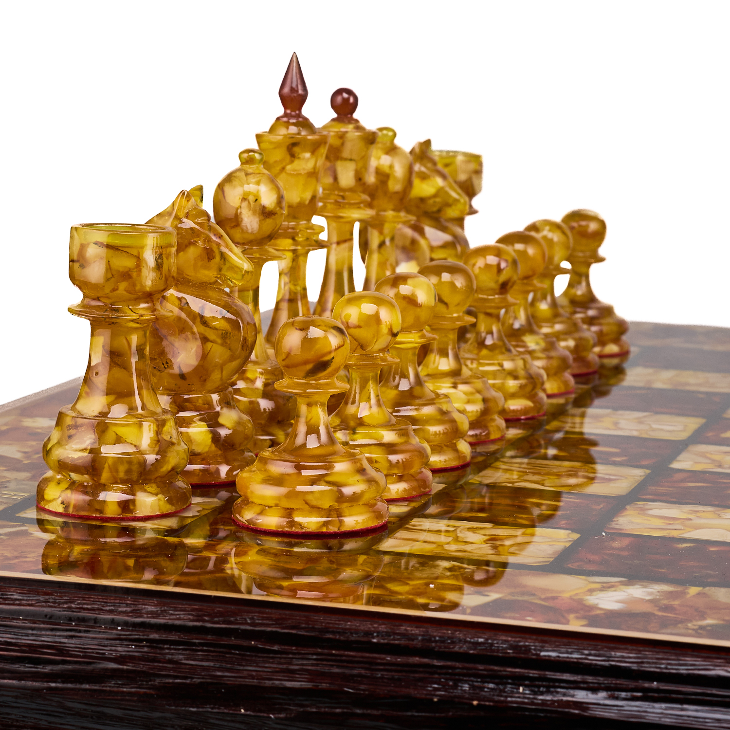 Шахматы с инкрустацией и фигурами из янтаря 60х60 см