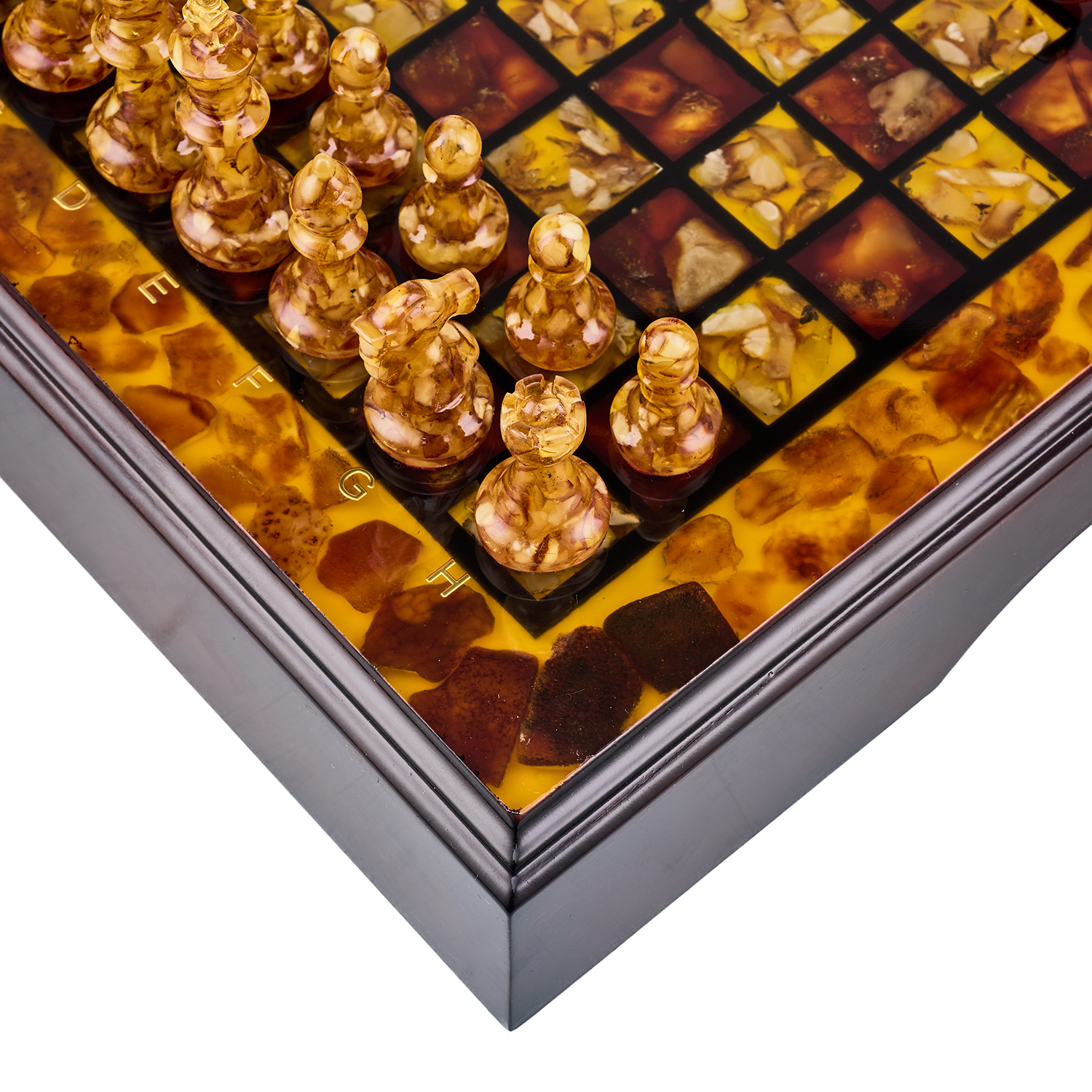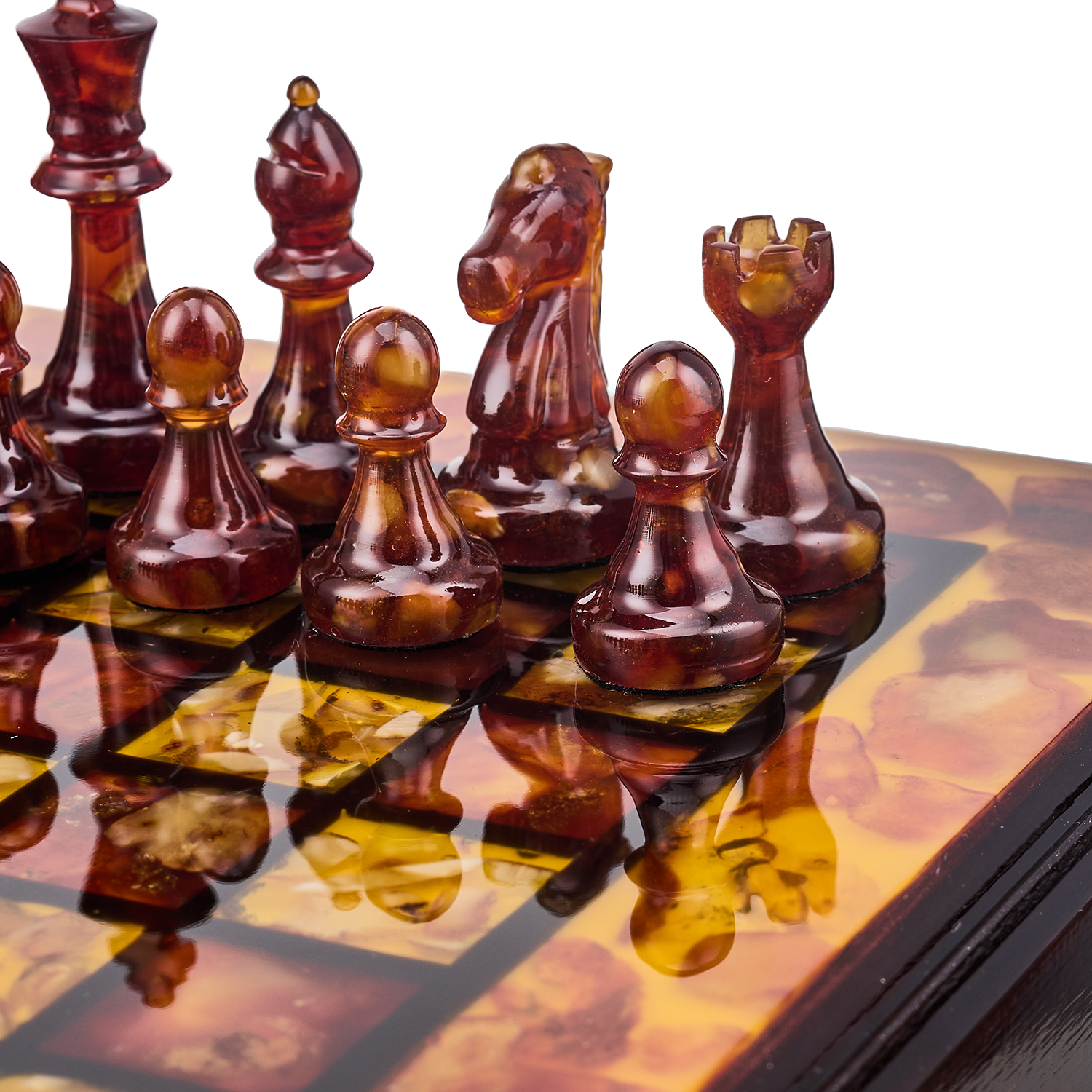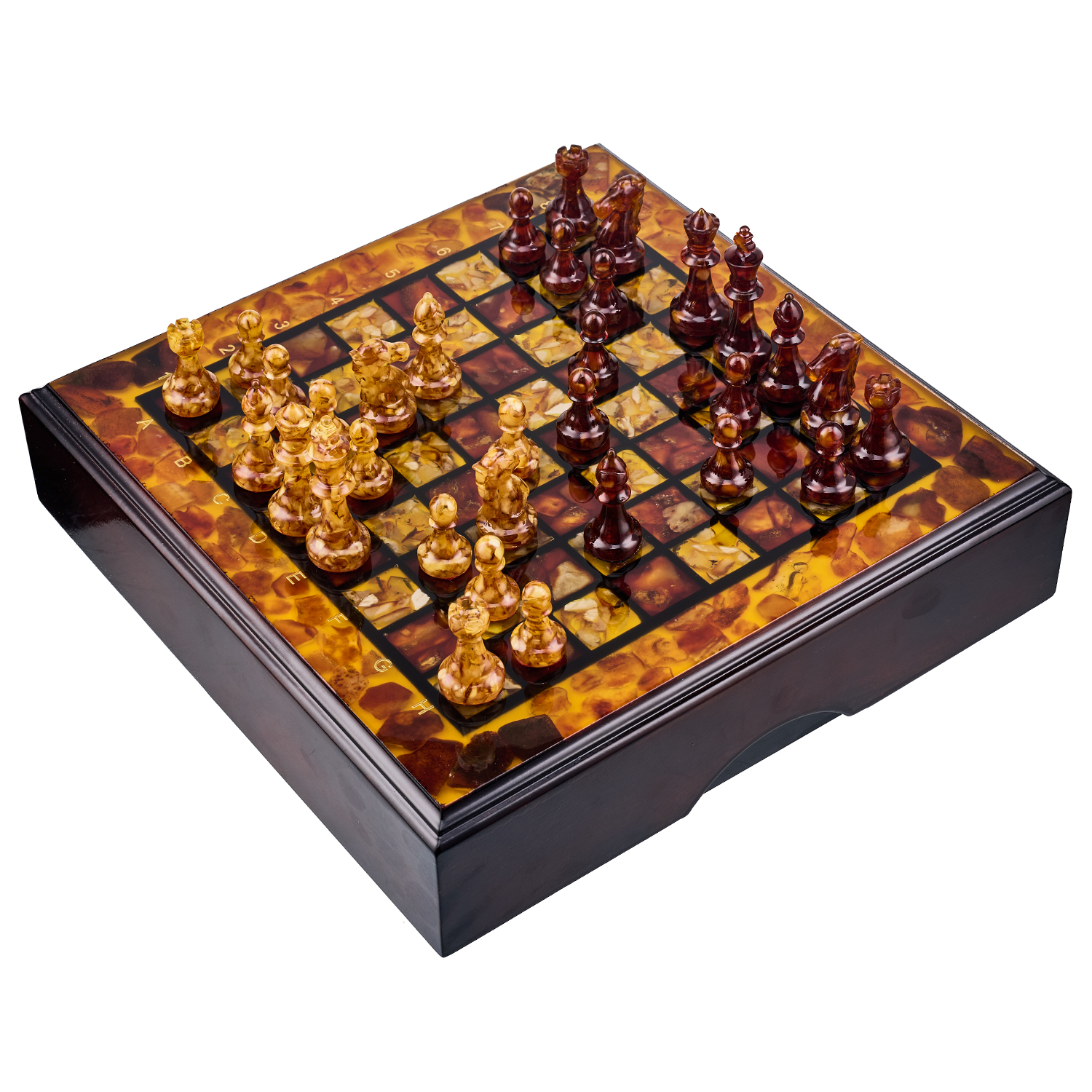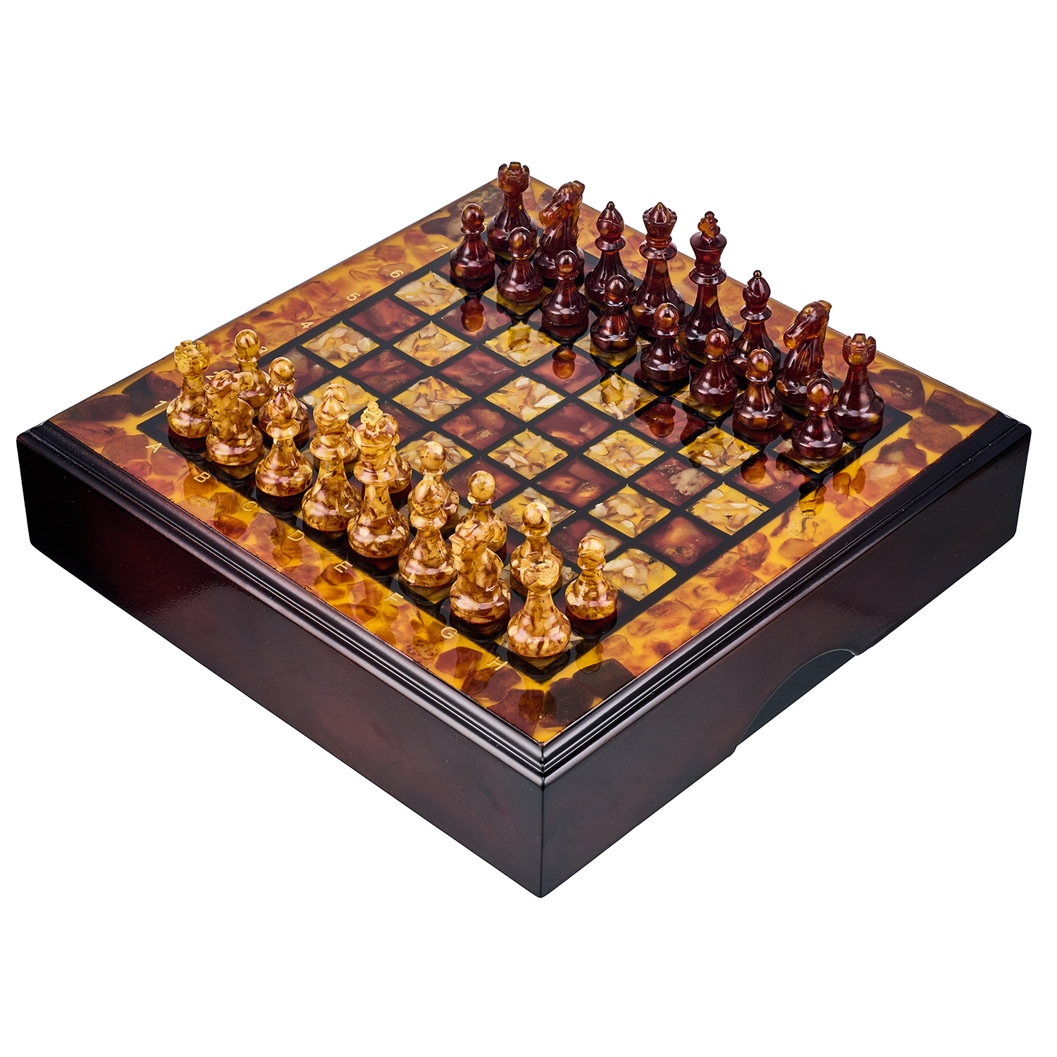 Шахматы с инкрустацией и фигурами из янтаря 30х30 см