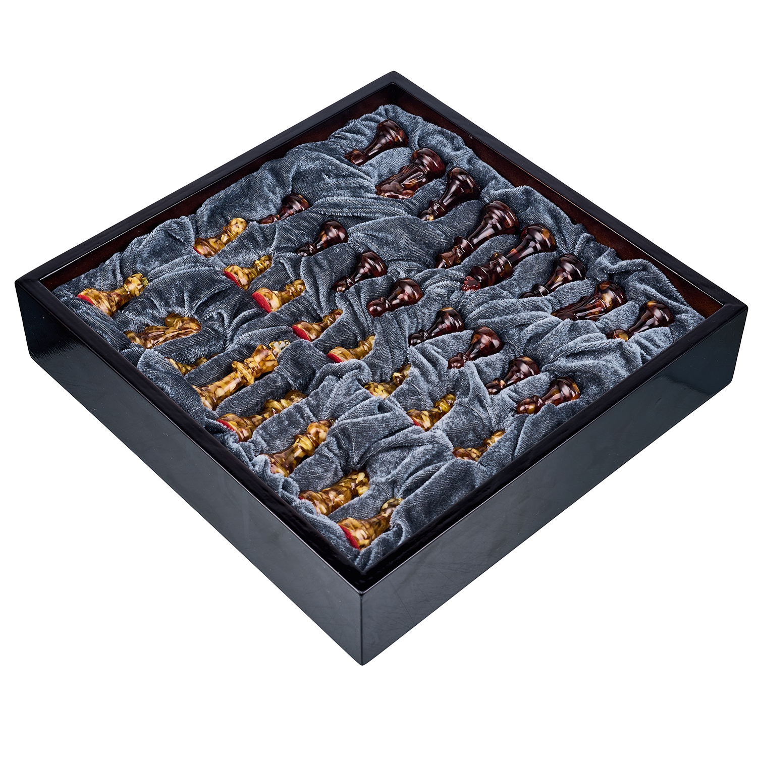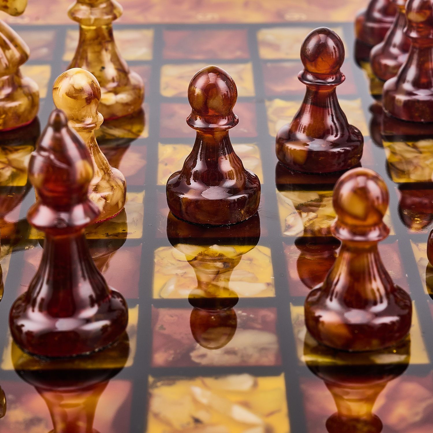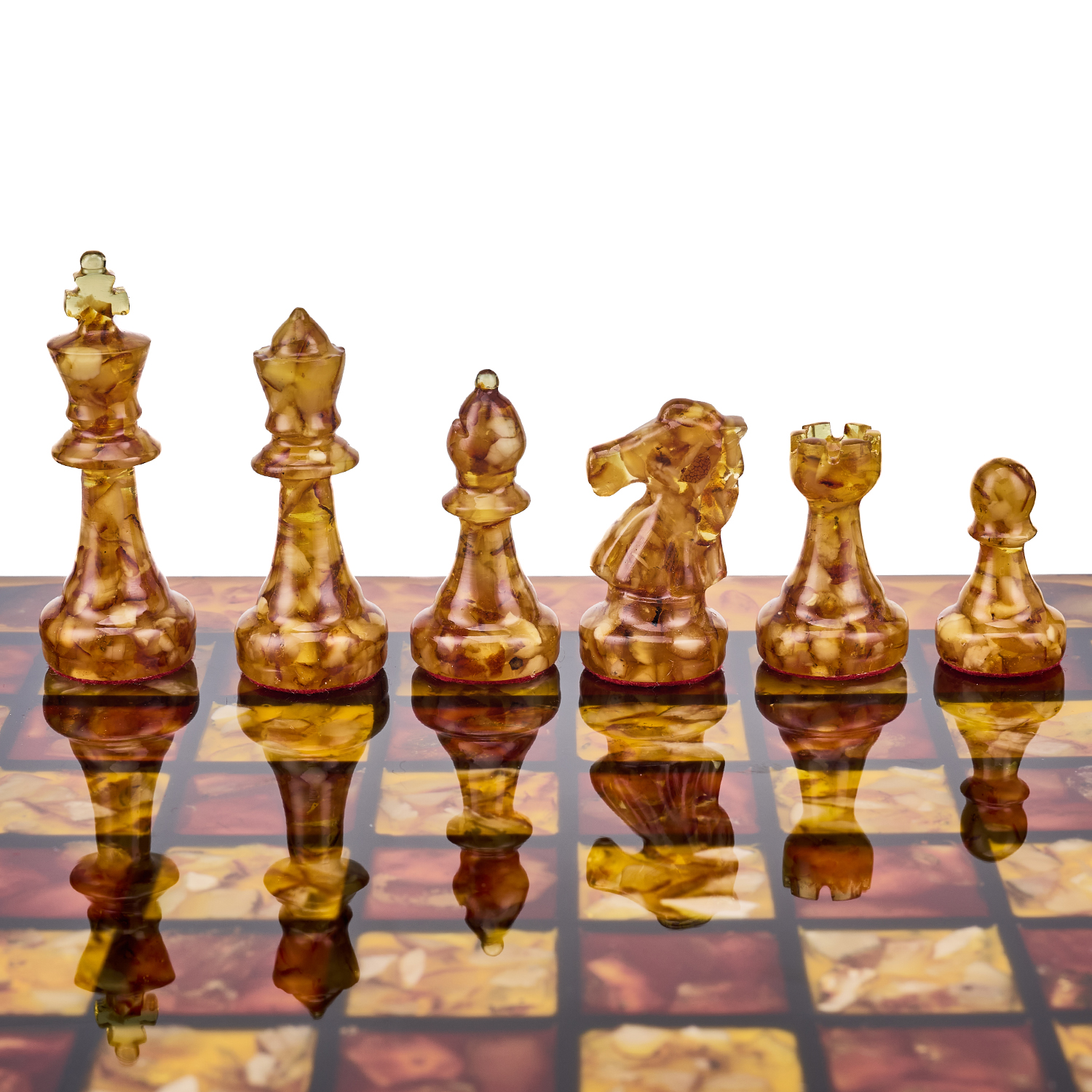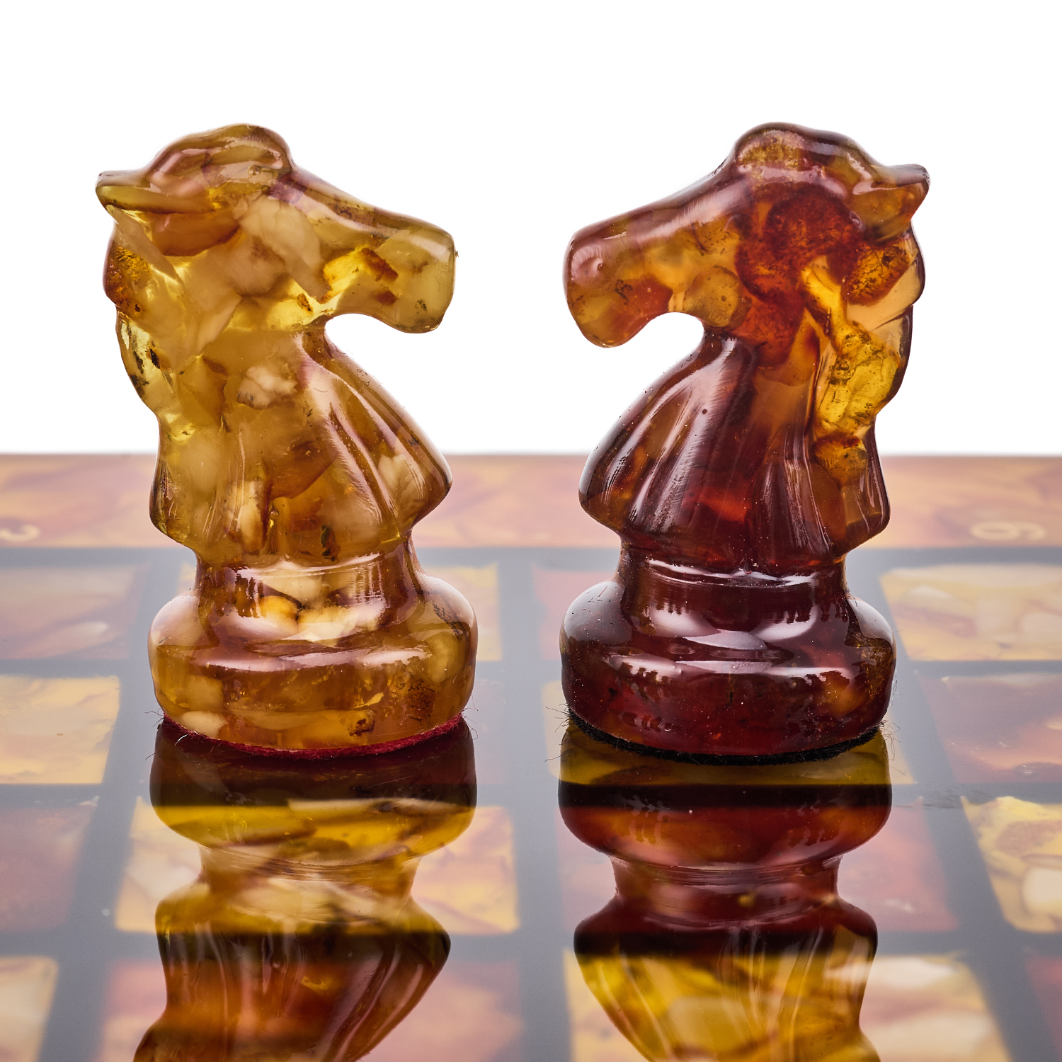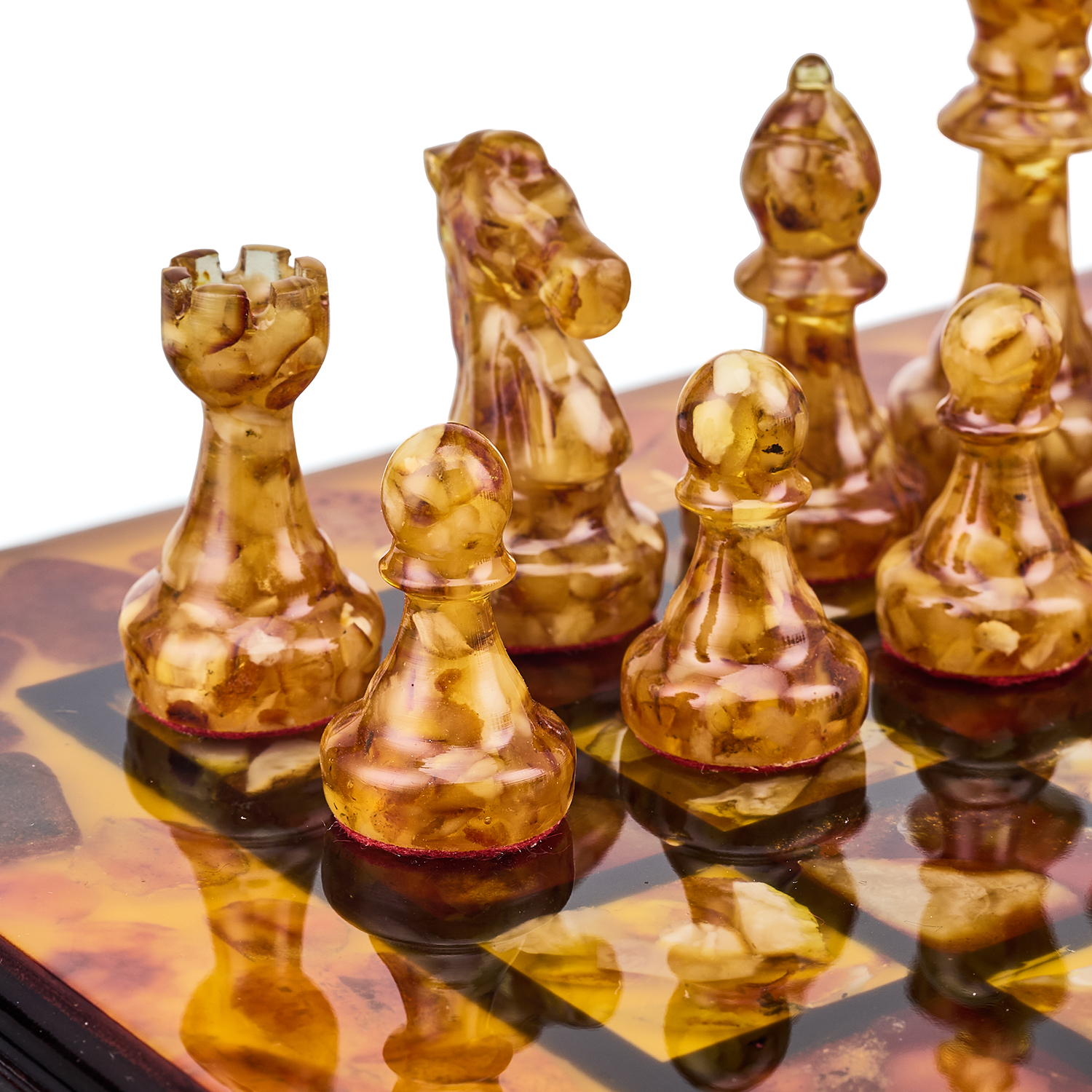 Шахматы с инкрустацией и фигурами из янтаря 30х30 см