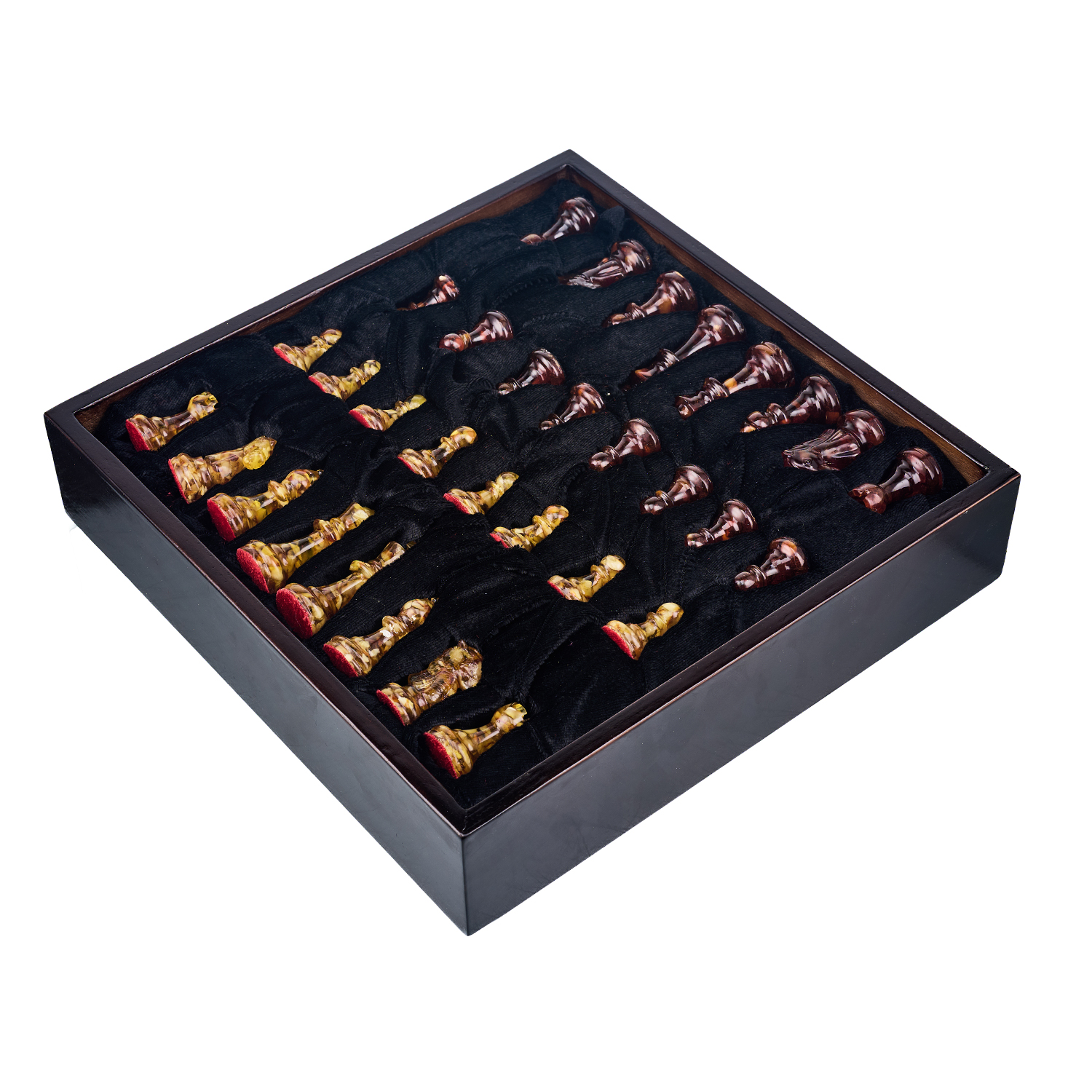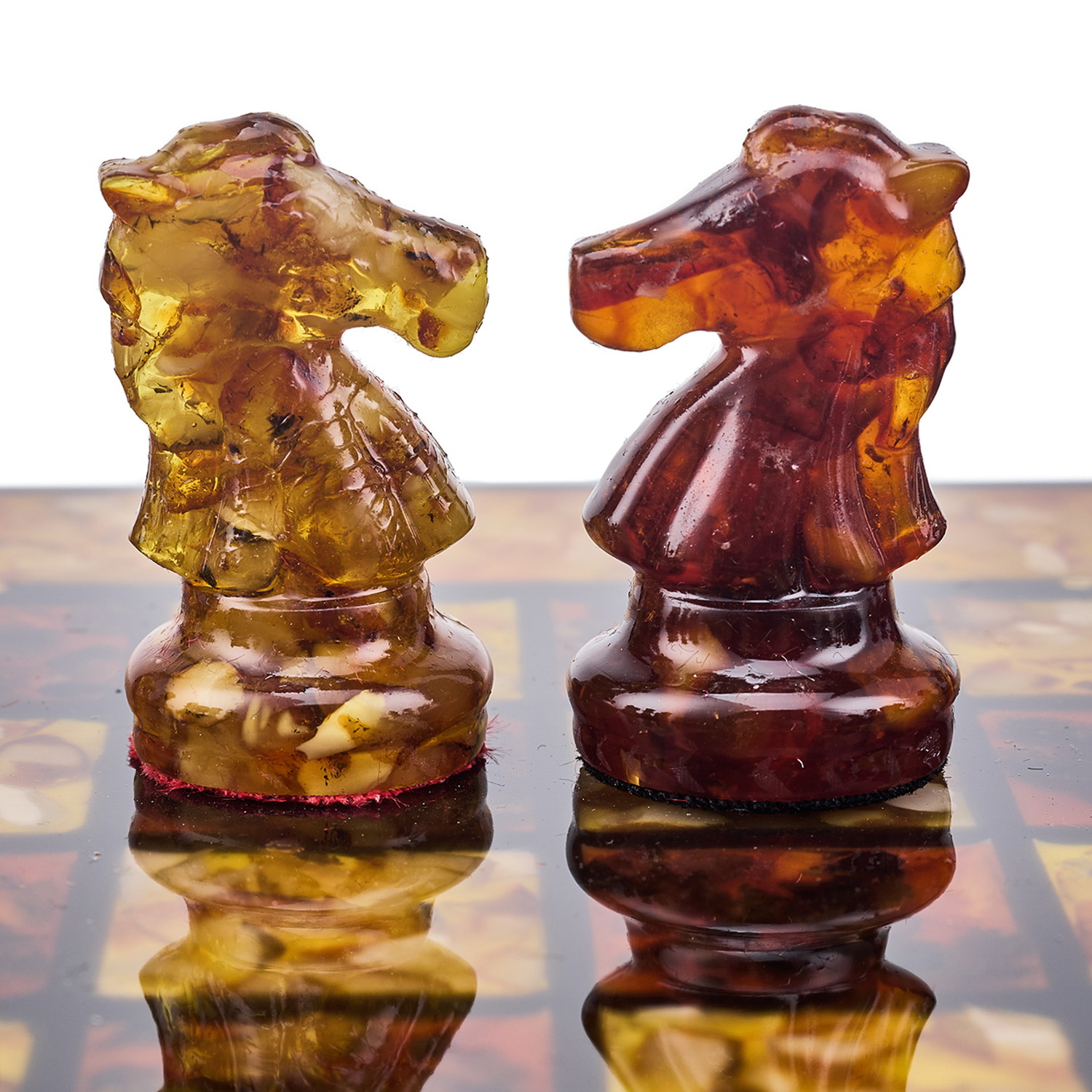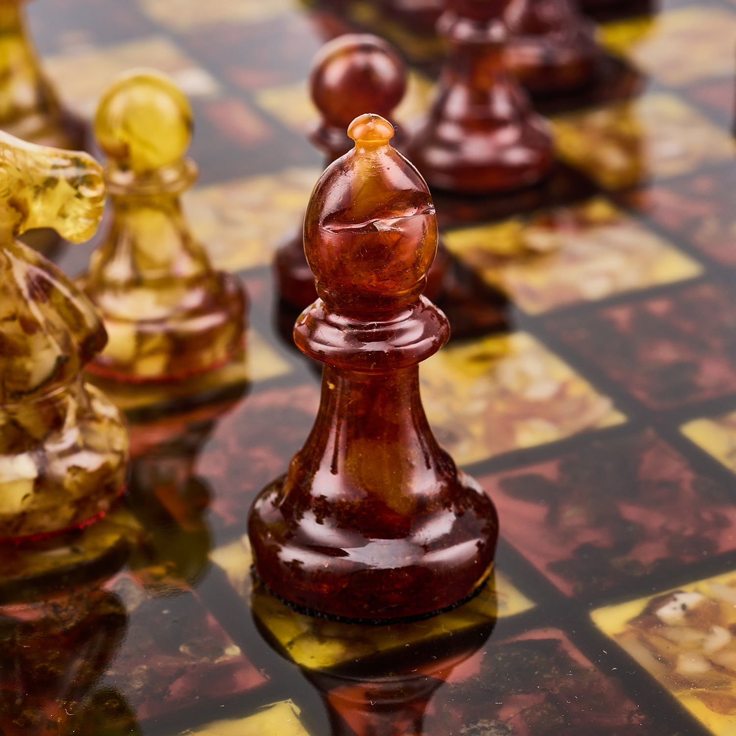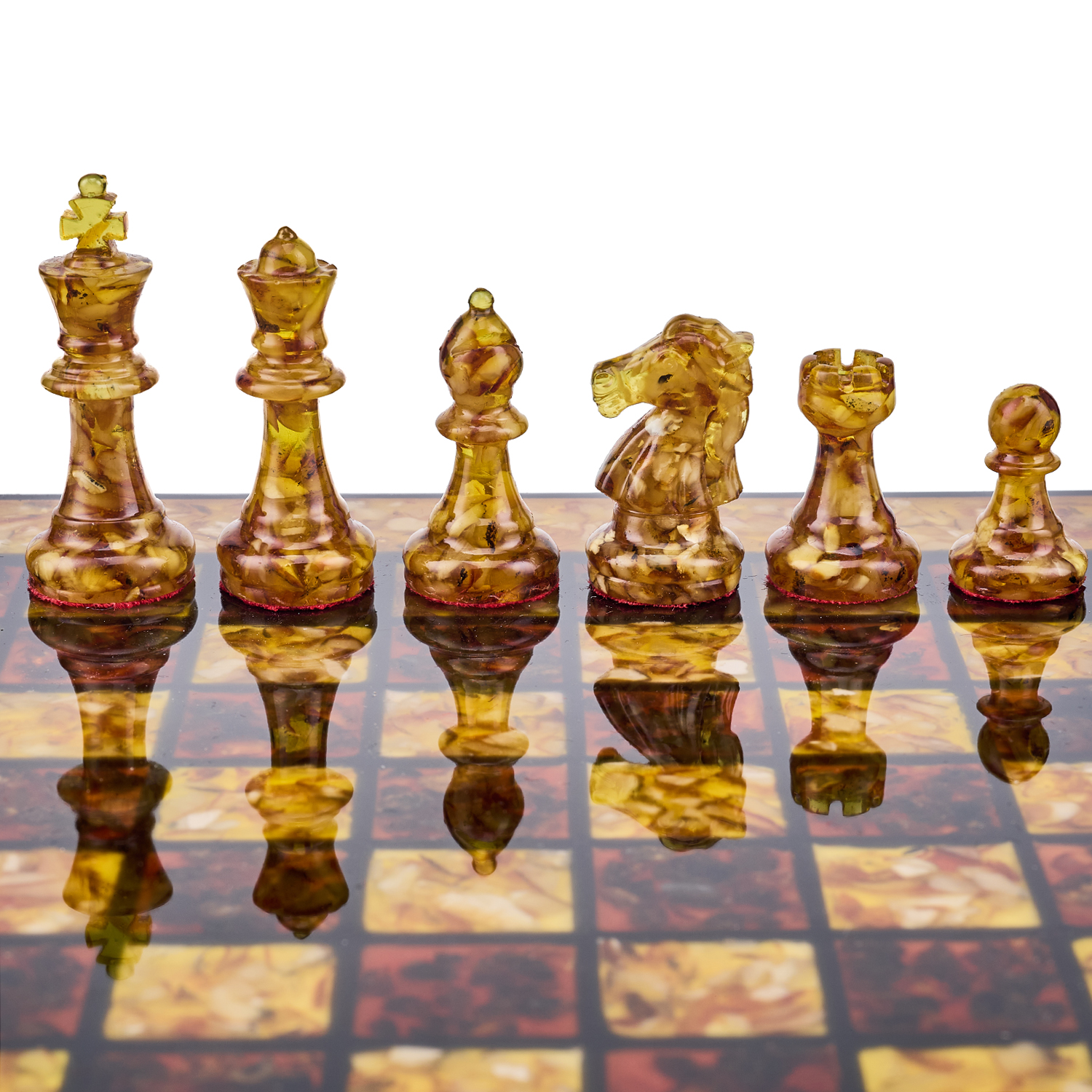 Шахматы с инкрустацией и фигурами из янтаря 30х30 см