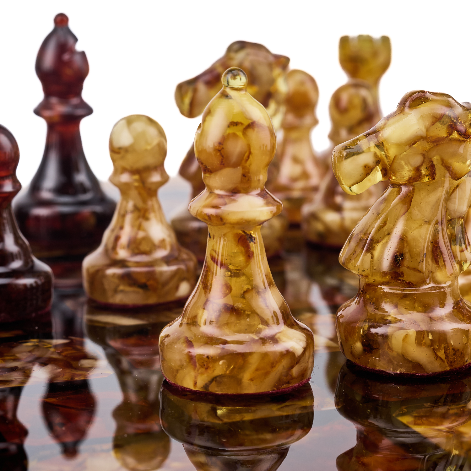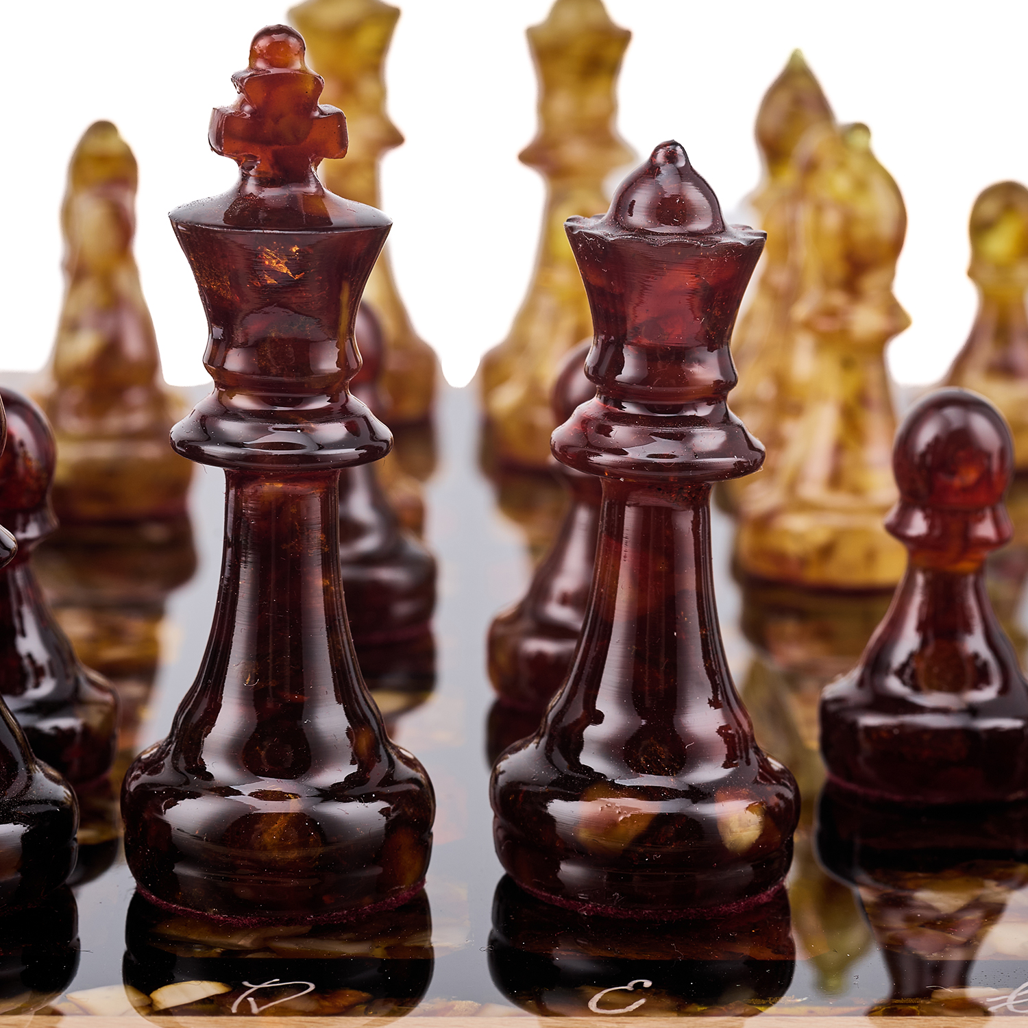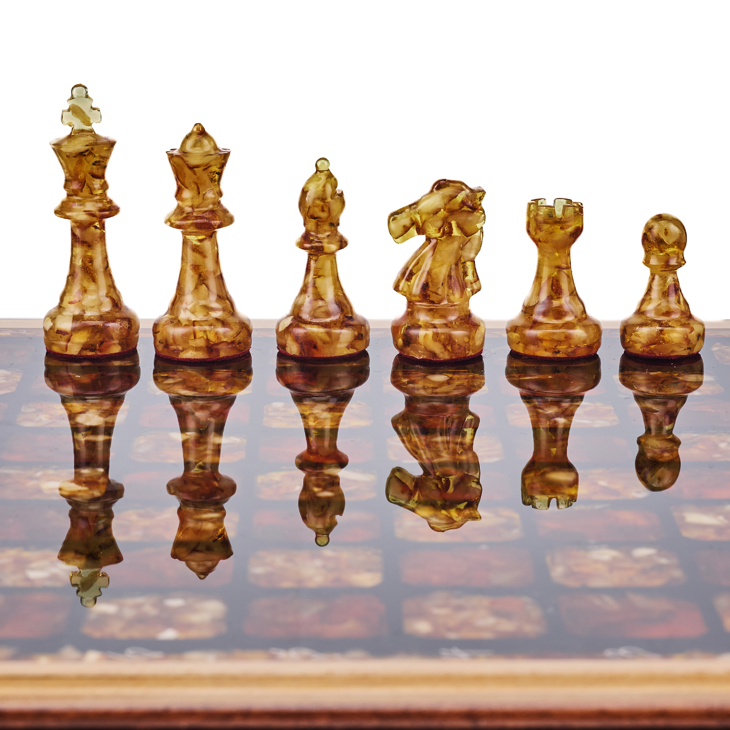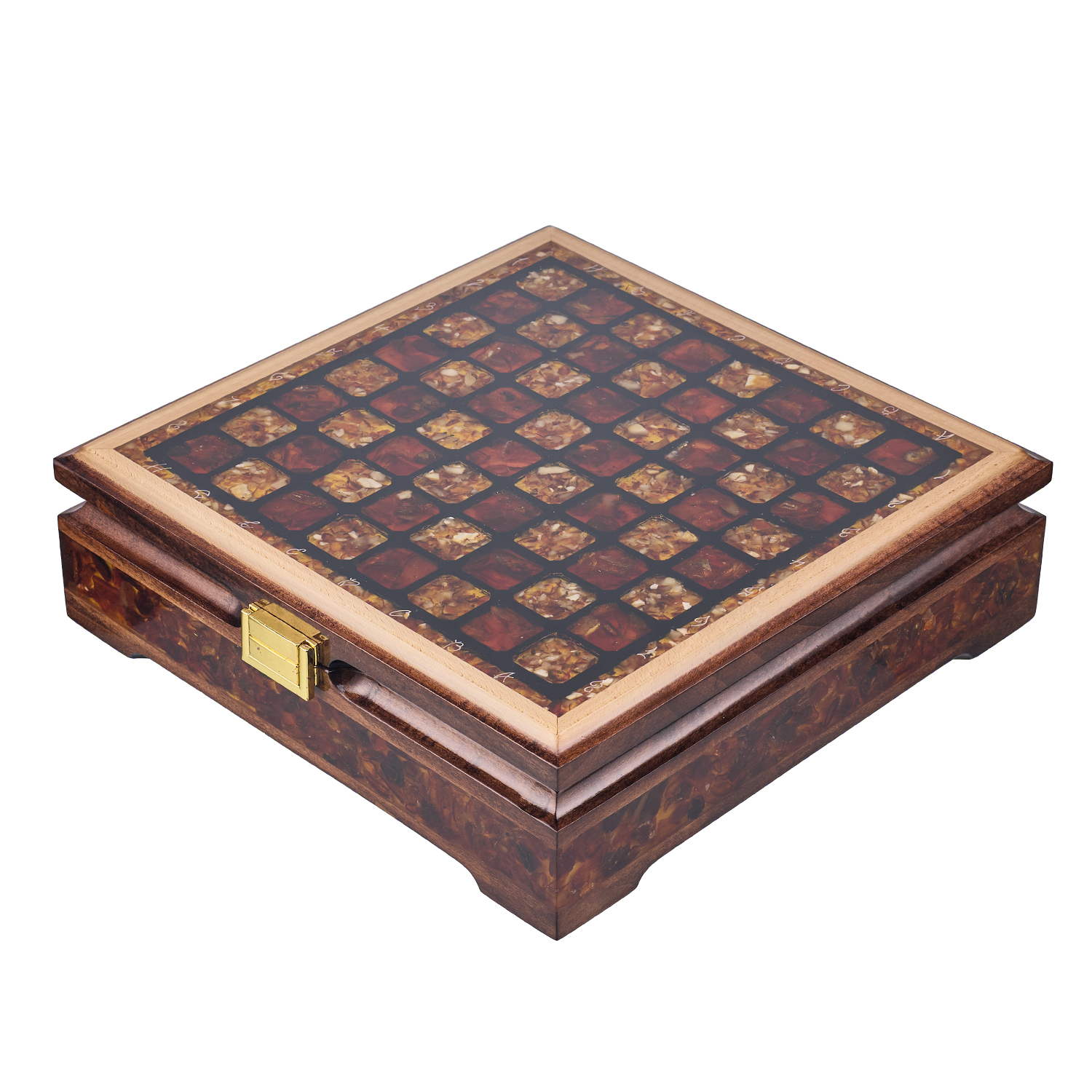 Шахматы с инкрустацией и фигурами из янтаря 28х28 см