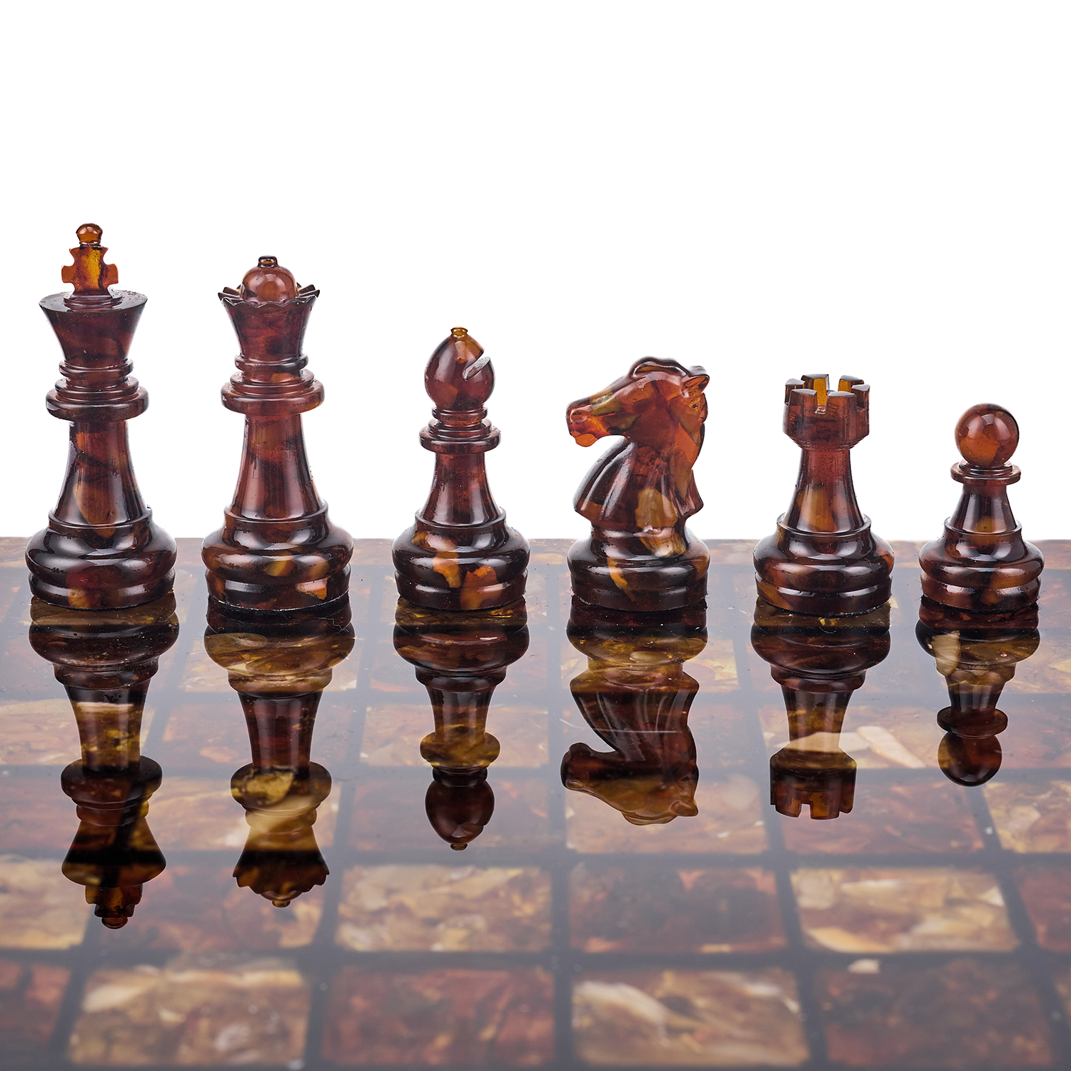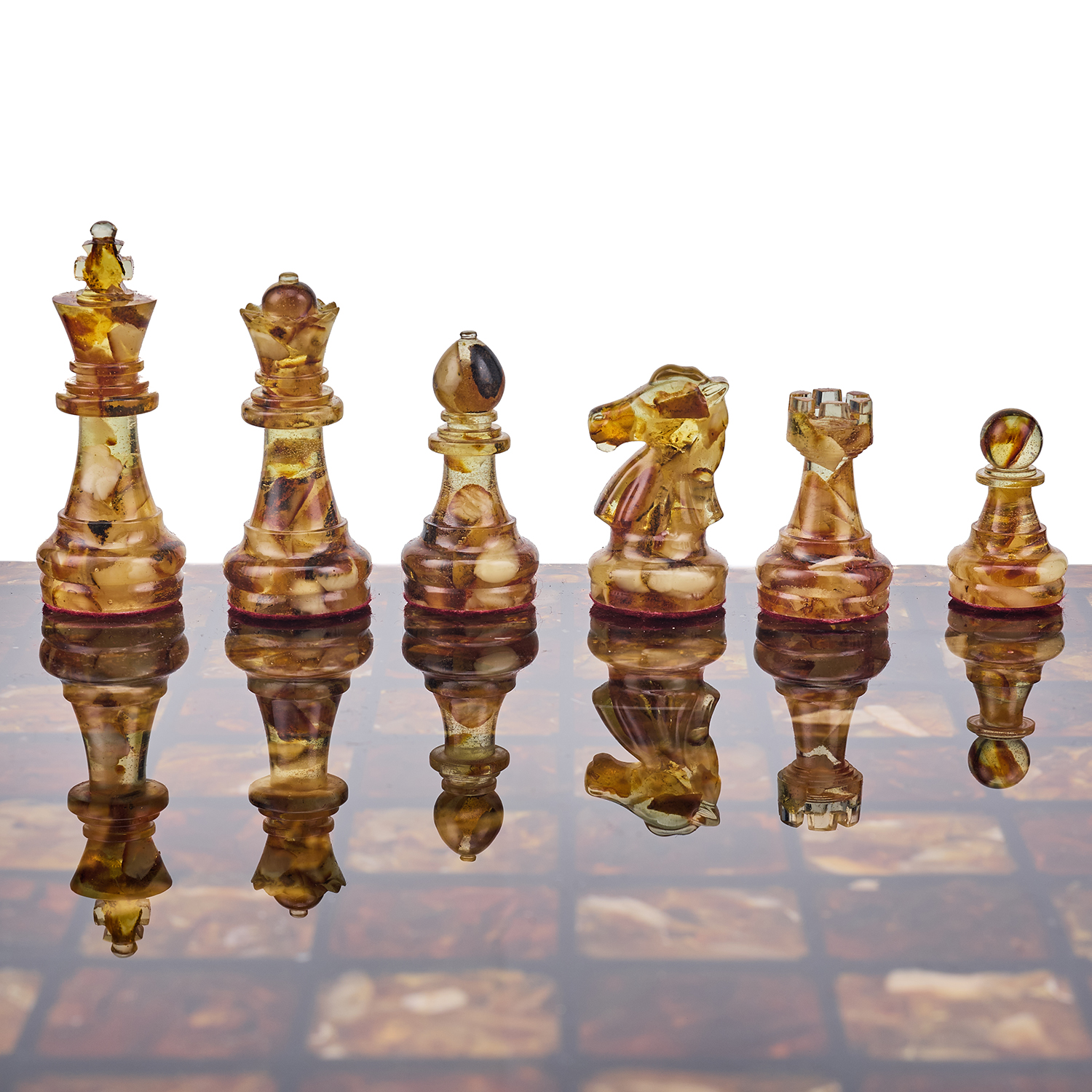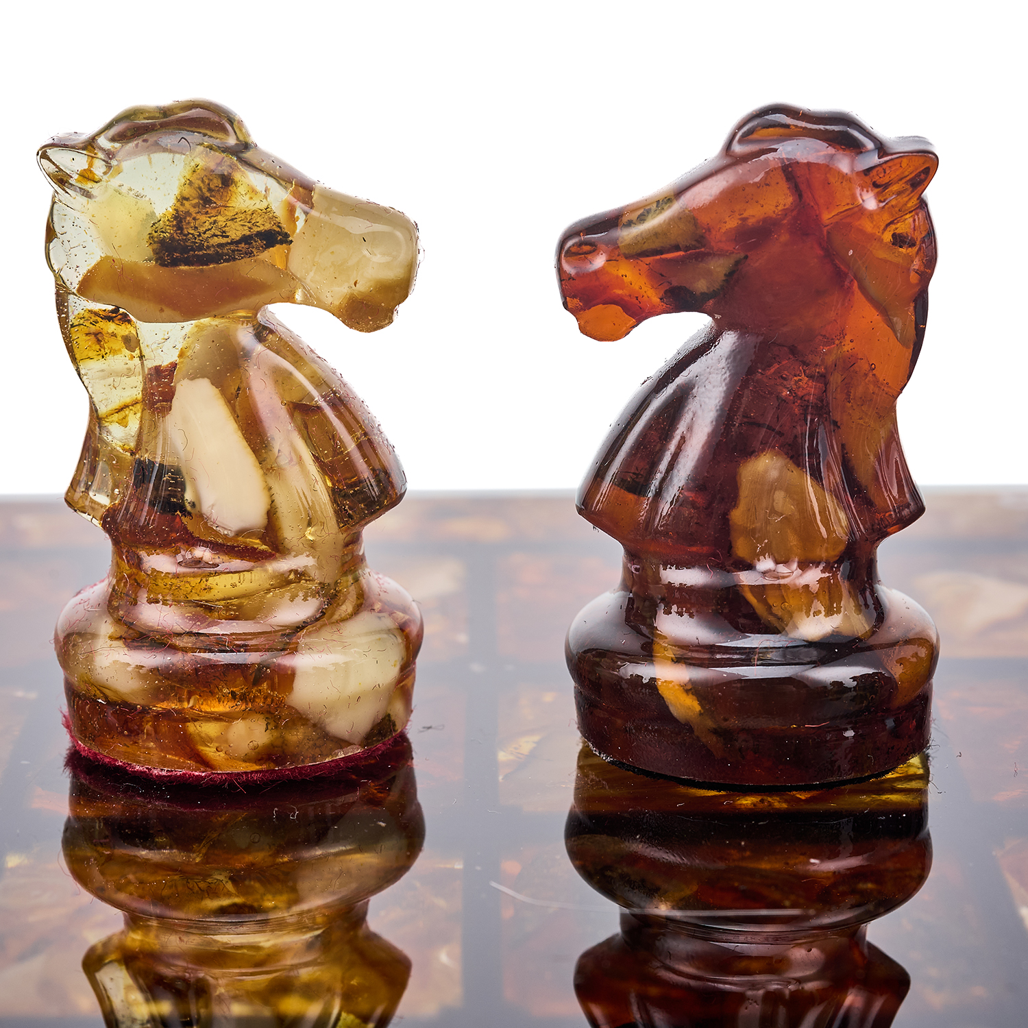 Шахматы с янтарными фигурами.Материалы: янтарь, полиэфирная смола.