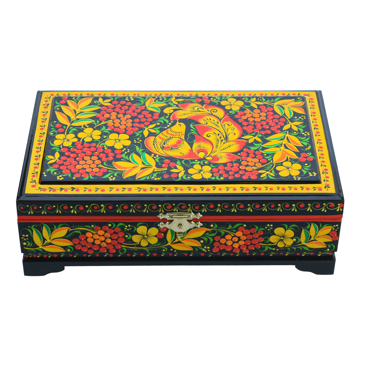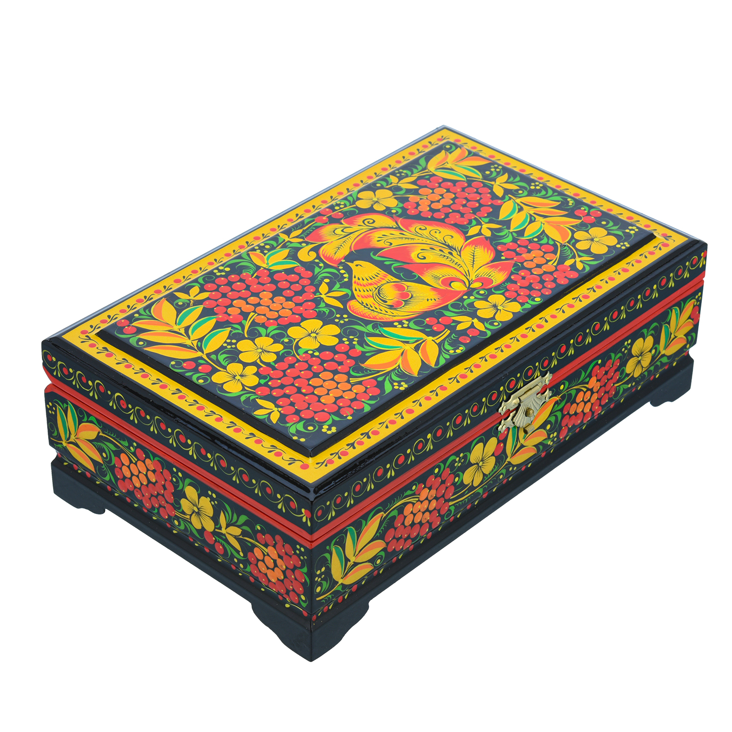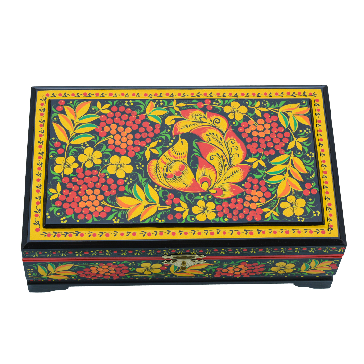 Шкатулка "Птица и рябина". Хохлома