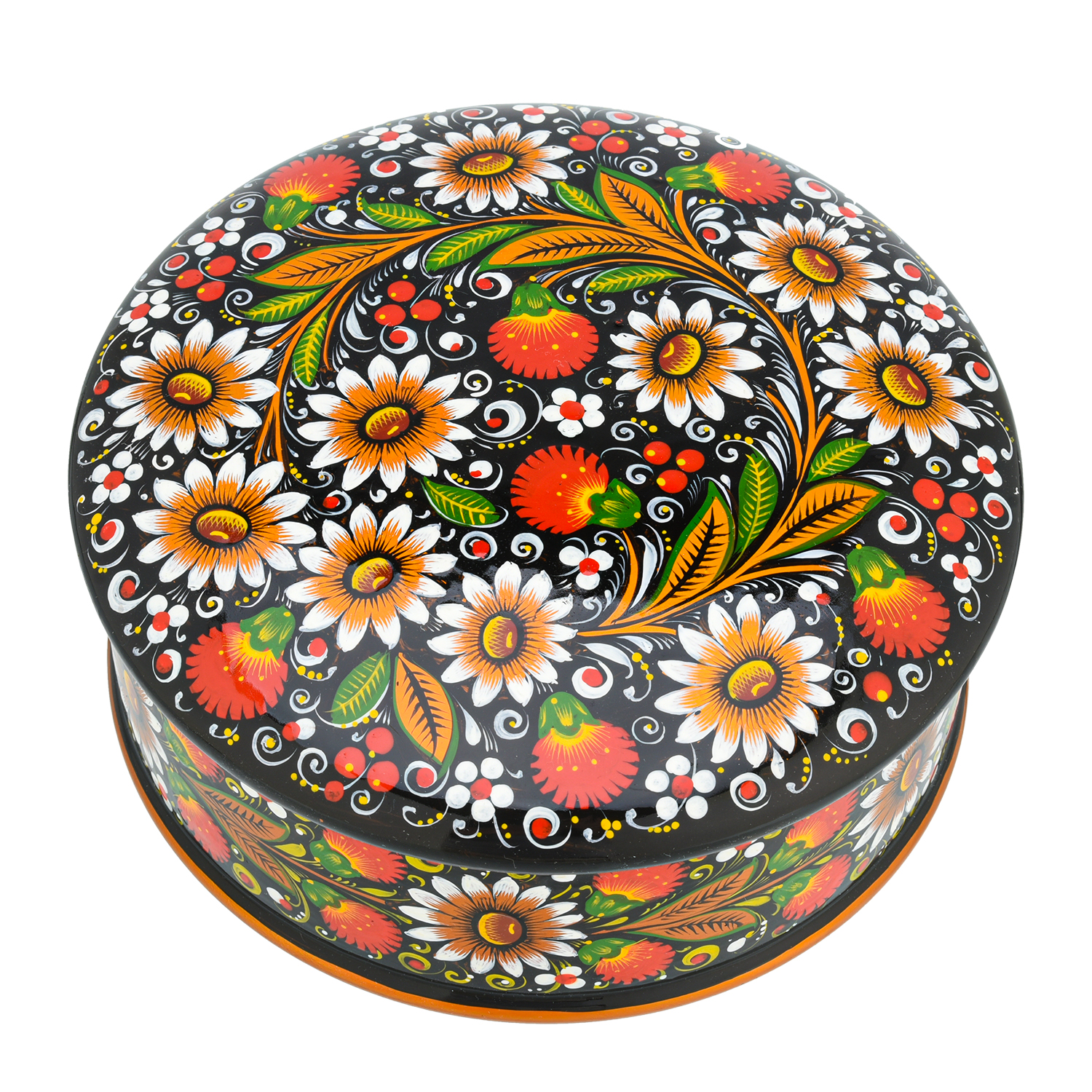204205 Хохлома Шкатулка (коробочка) РОМАШКИ, 15,5*9 см