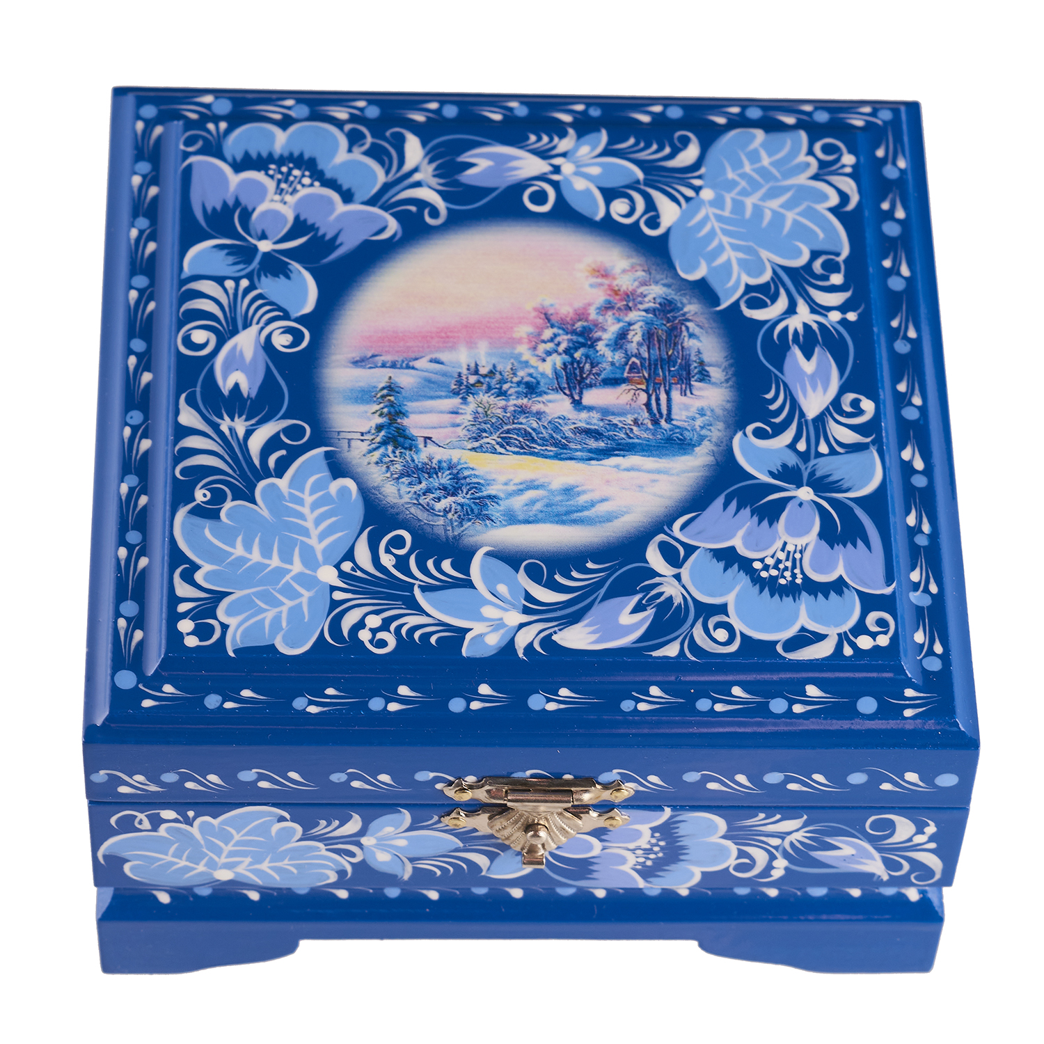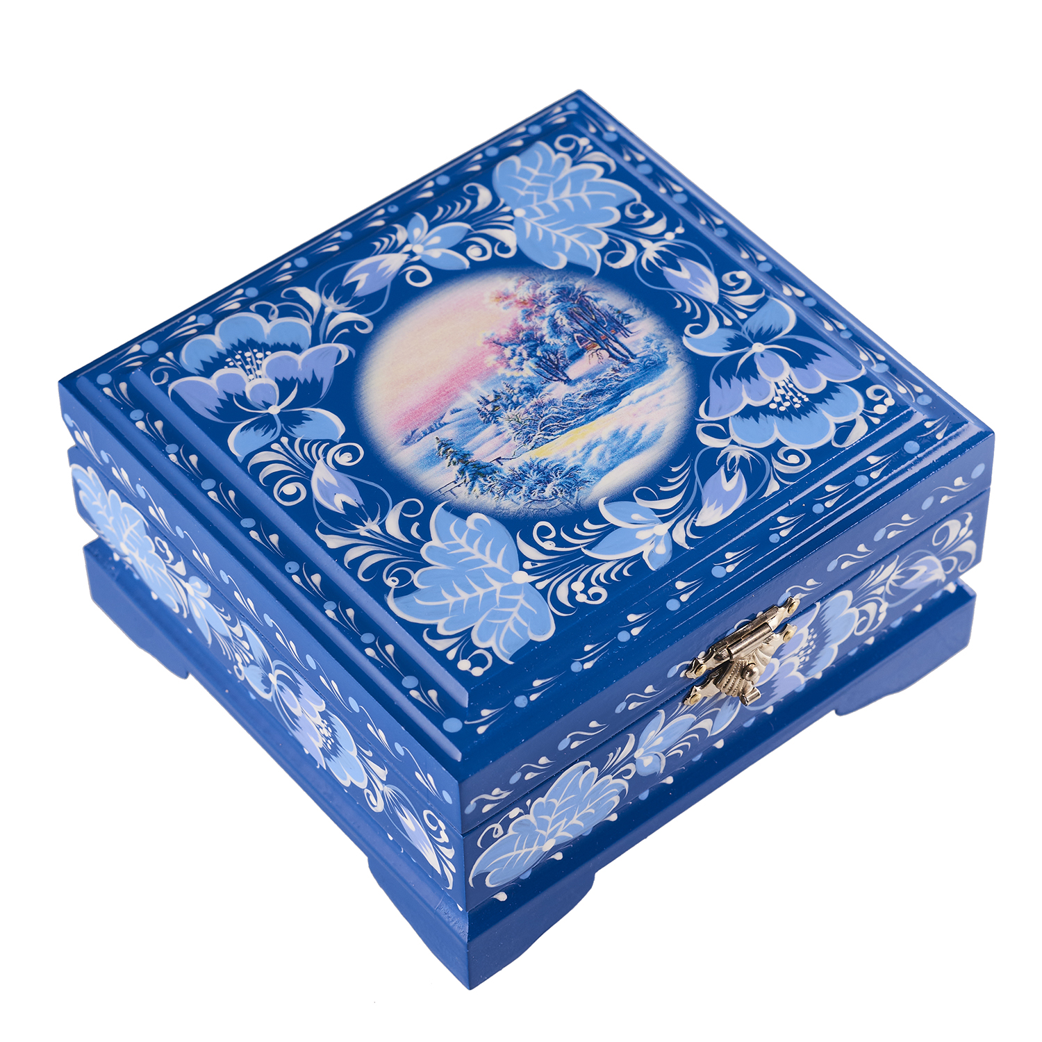 Шкатулка "Зима". Хохлома.Материалы: дерево, краски, лак.