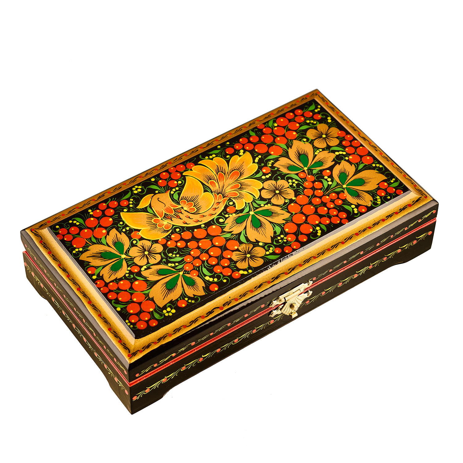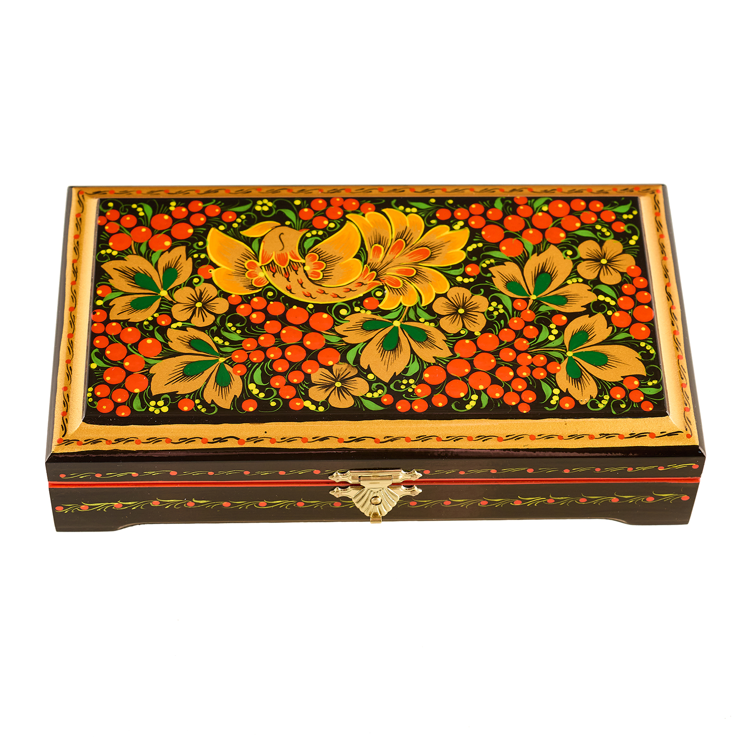 Шкатулка "Птица и рябина". Хохлома