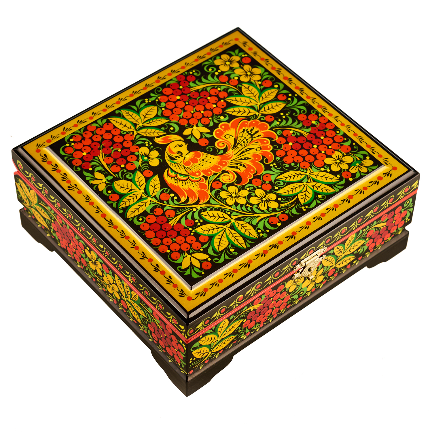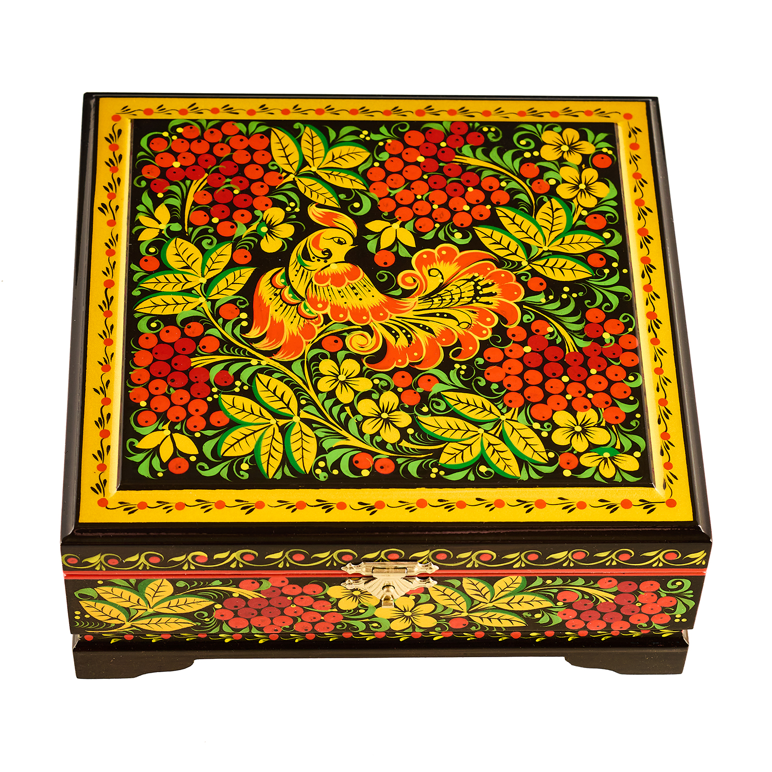 Шкатулка "Птица и рябина". Хохлома.Материалы: дерево, краски, лак.