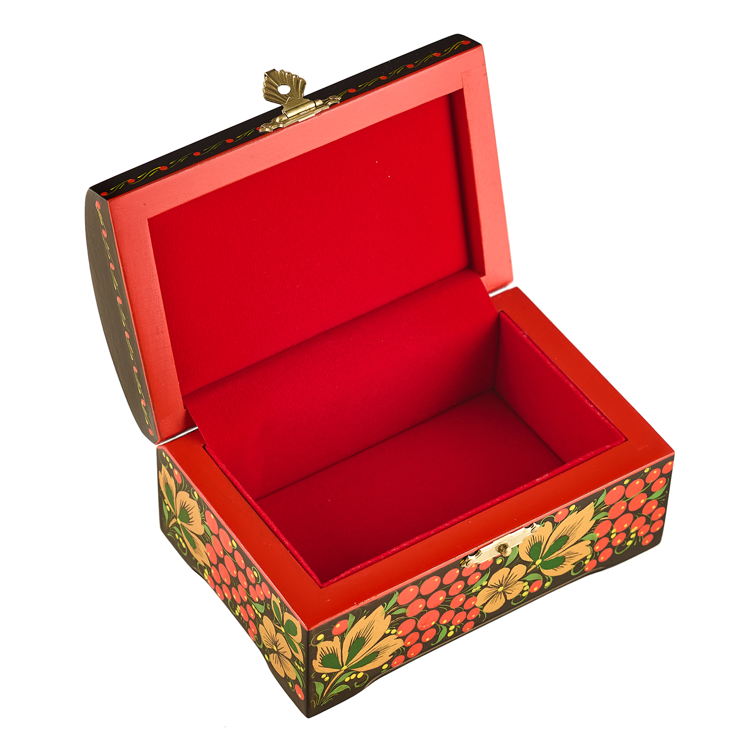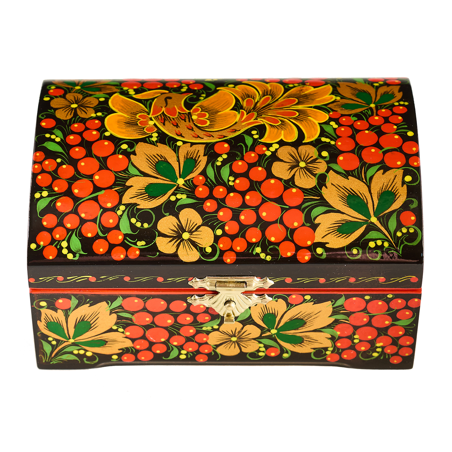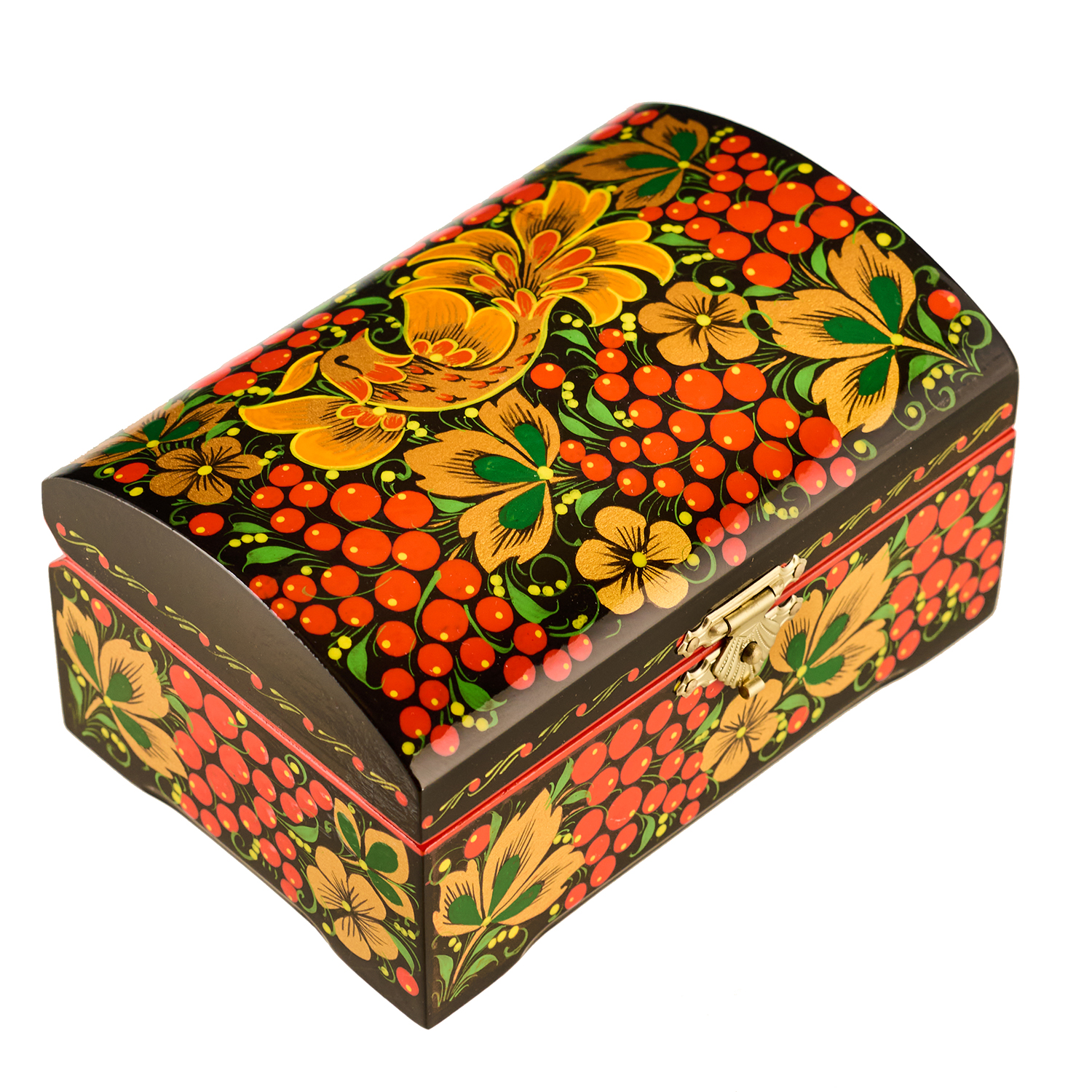 Русские подарки и сувениры → Хохлома → Шкатулки Хохлома → Шкатулка-сундучок "Птица и рябина". Хохлома