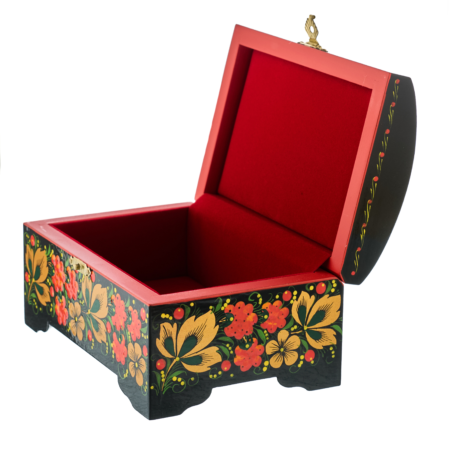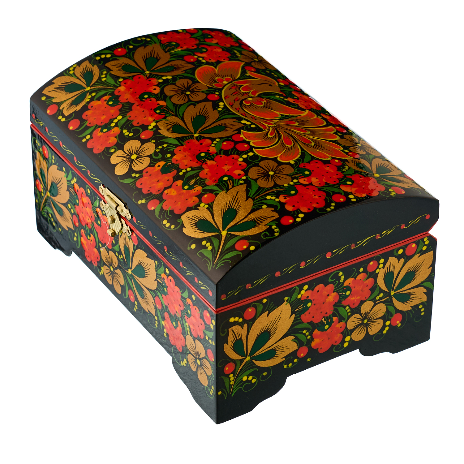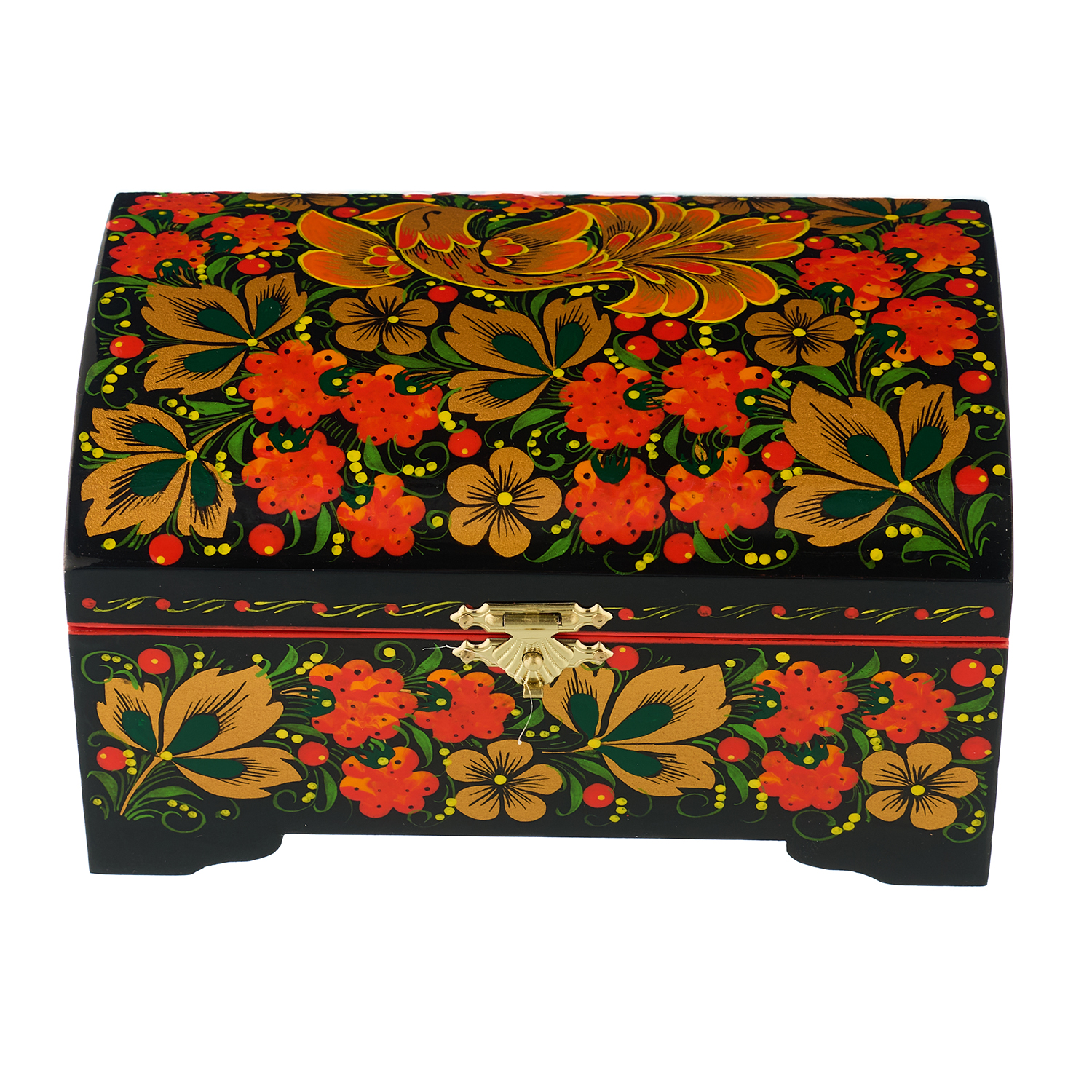Шкатулка-сундучок "Птица и малина". Хохлома