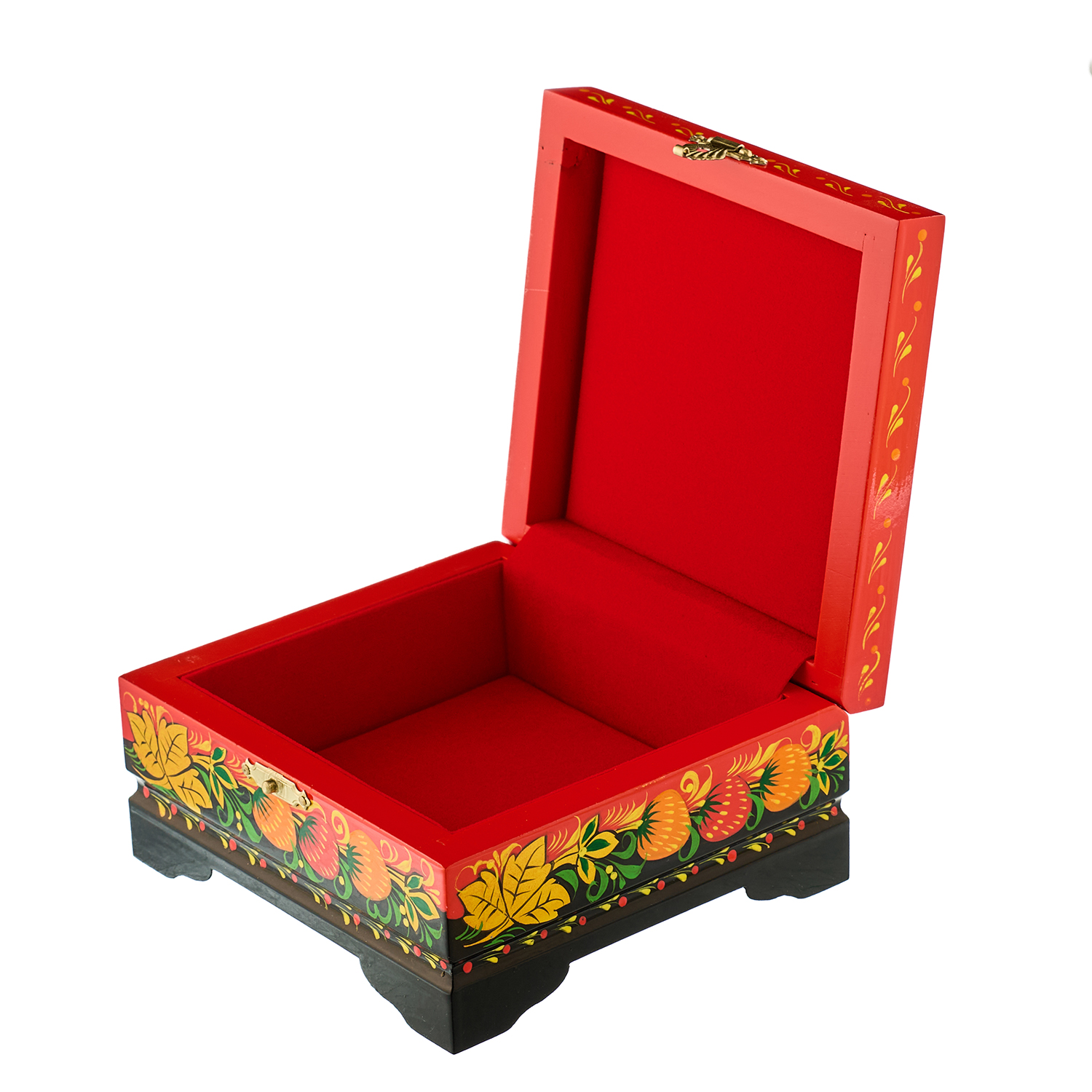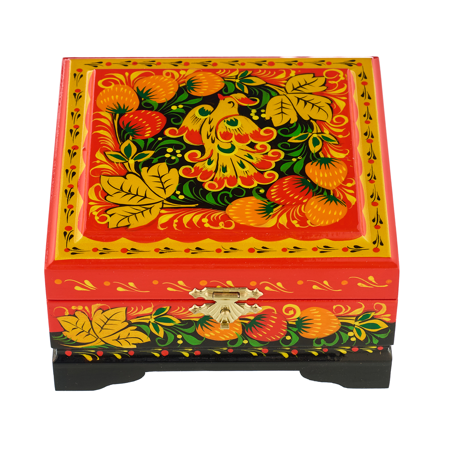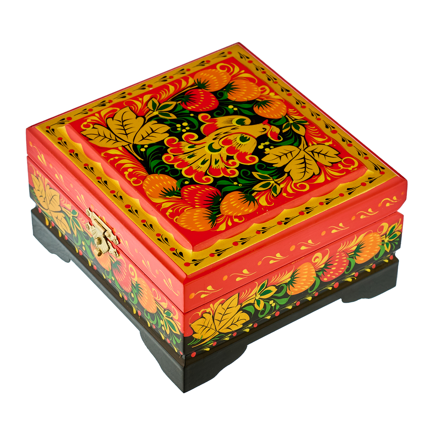 Шкатулка "Птица и клубника". Хохлома.Материалы: дерево, краски, лак.