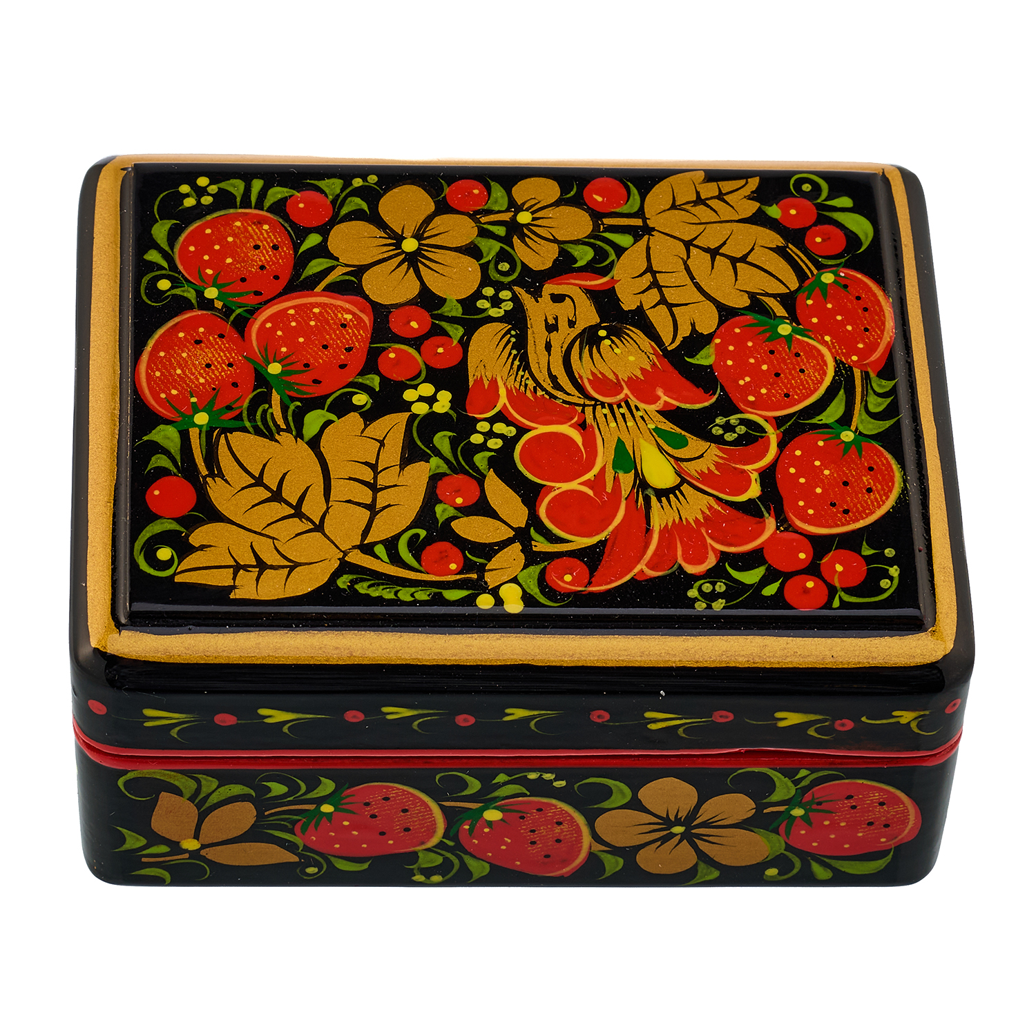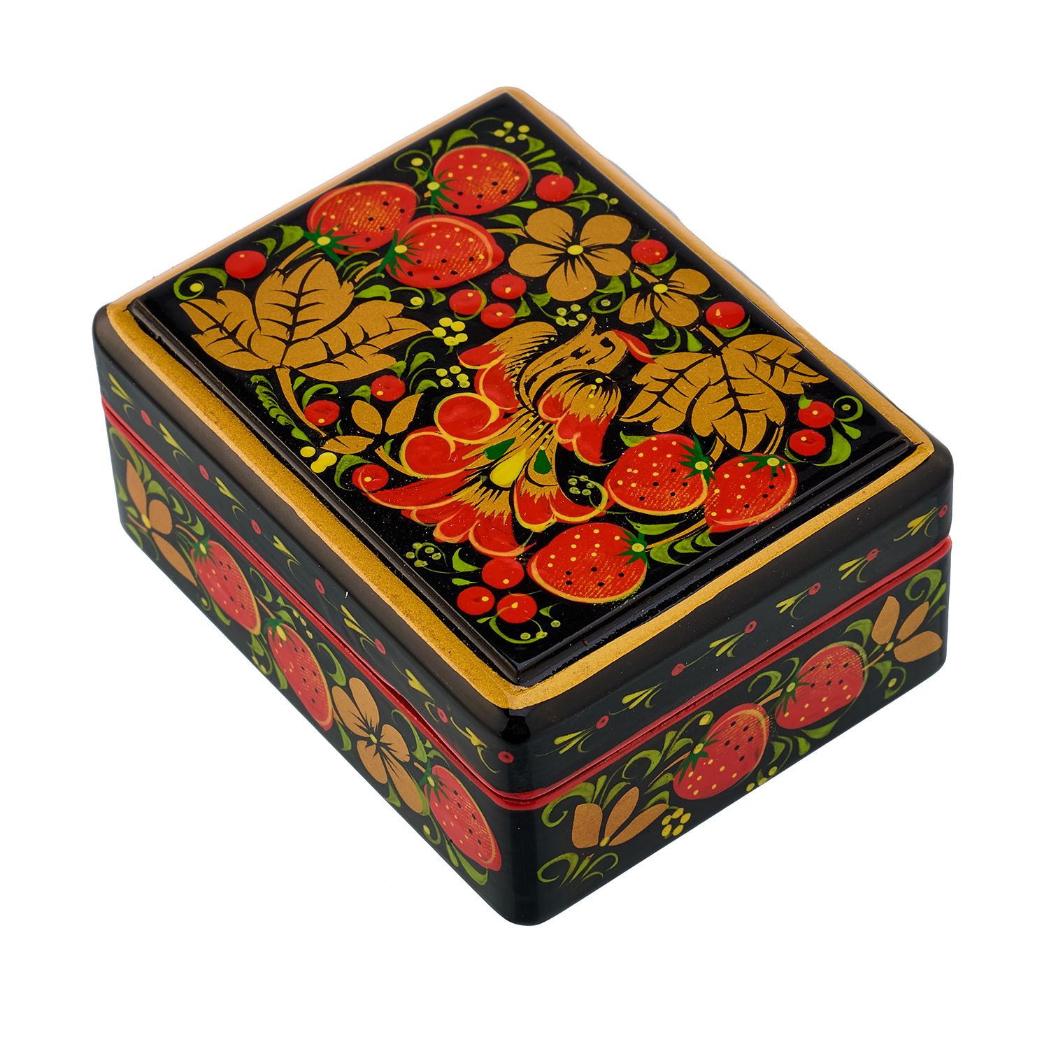 Шкатулка "Птица и клубника". Хохлома.Материалы: дерево, краски, лак.