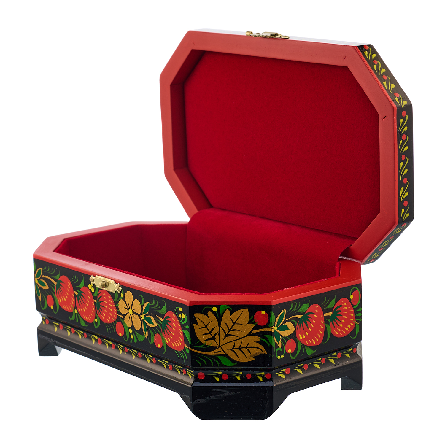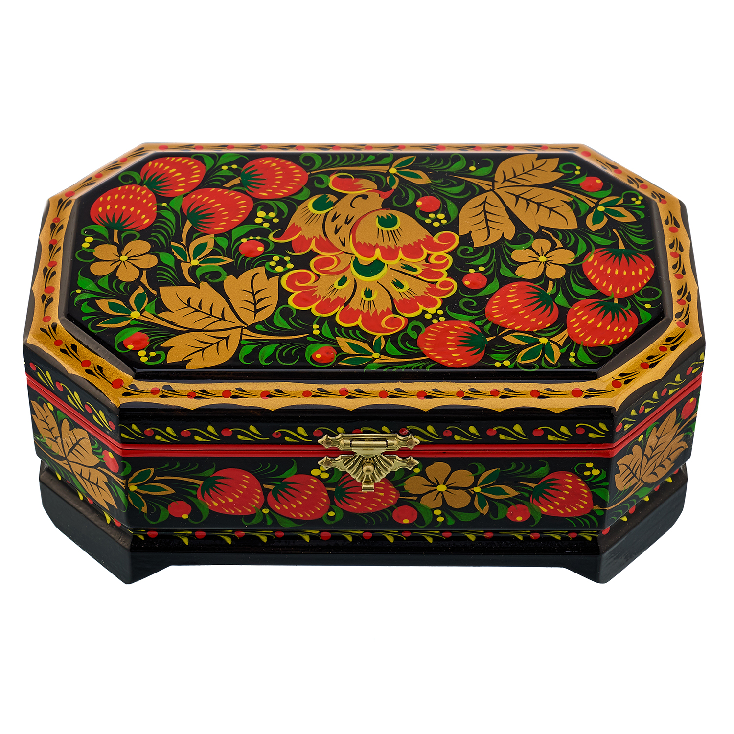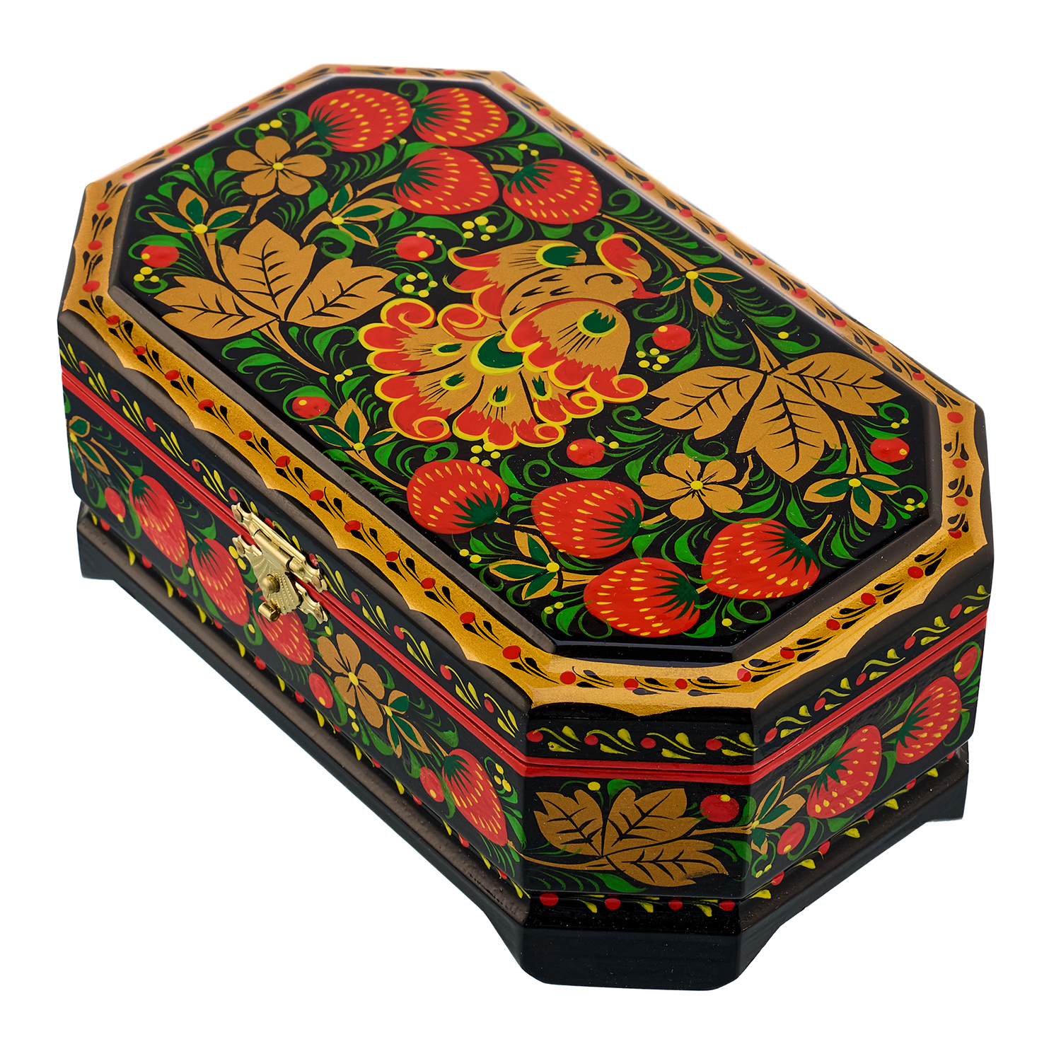 Шкатулка "Птица и клубника". Хохлома.Материалы: дерево, краски, лак.